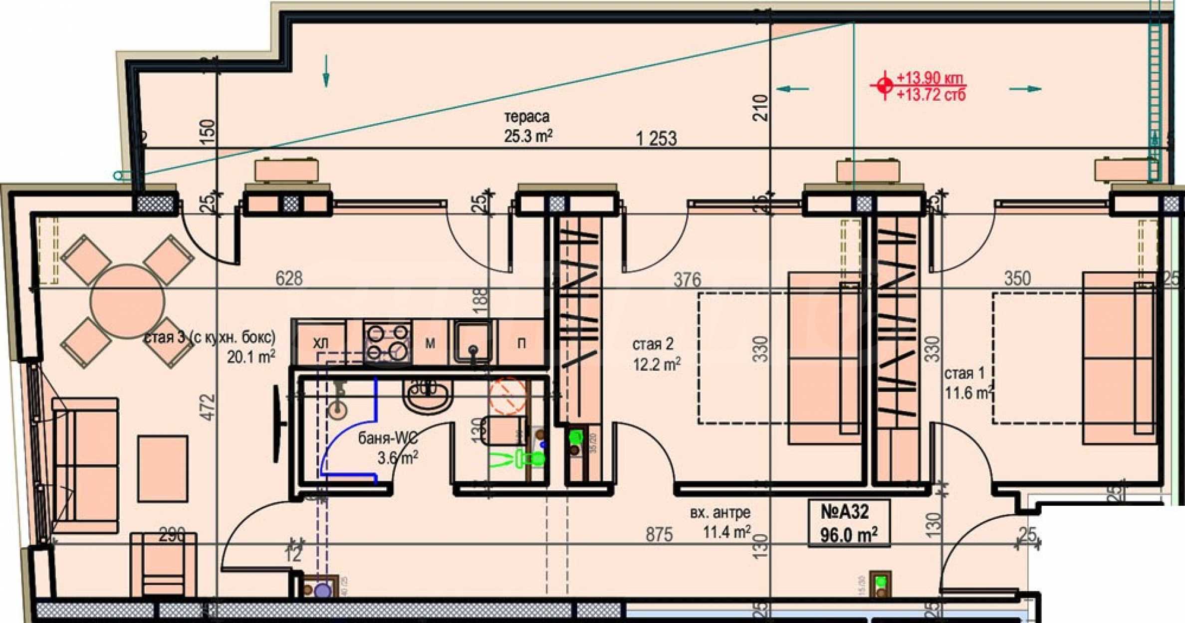 Oferujemy na sprzedaż mieszkanie trzypokojowe w nowym budynku mieszkalnym, 200 metrów od plaży w Pomorie.