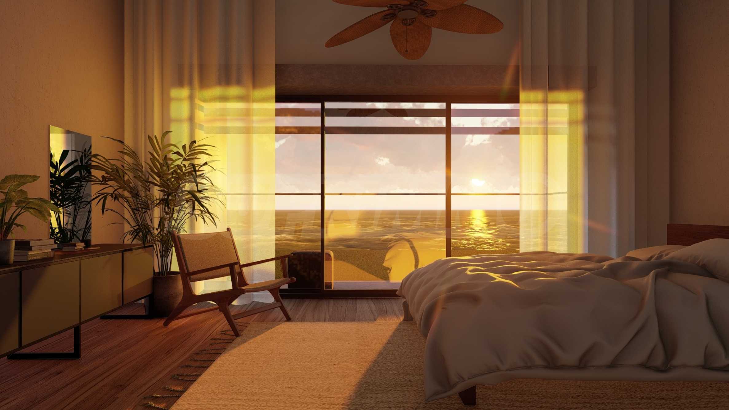 Na pierwszym poziomie znajduje się przestronny salon z kuchnią i jadalnią, prowadzący na słoneczną werandę - idealną na poranną kawę lub wieczorne chwile spokoju. Tutaj znajduje się również jedna z sypialni, a także łazienka. Na drugim i trzecim poziomie znajdziesz dodatkowe sypialnie, każda z własną łazienką i tarasem z panoramicznym widokiem na morze.