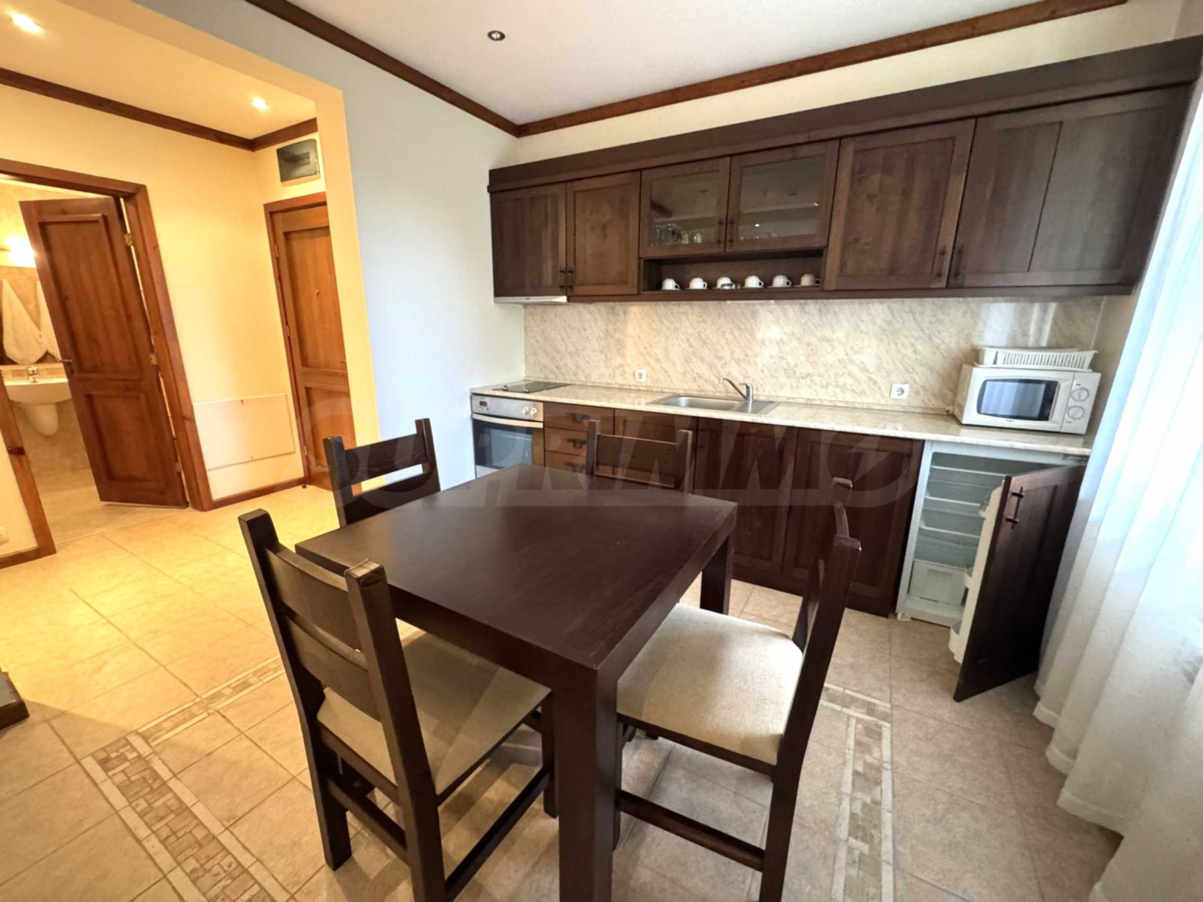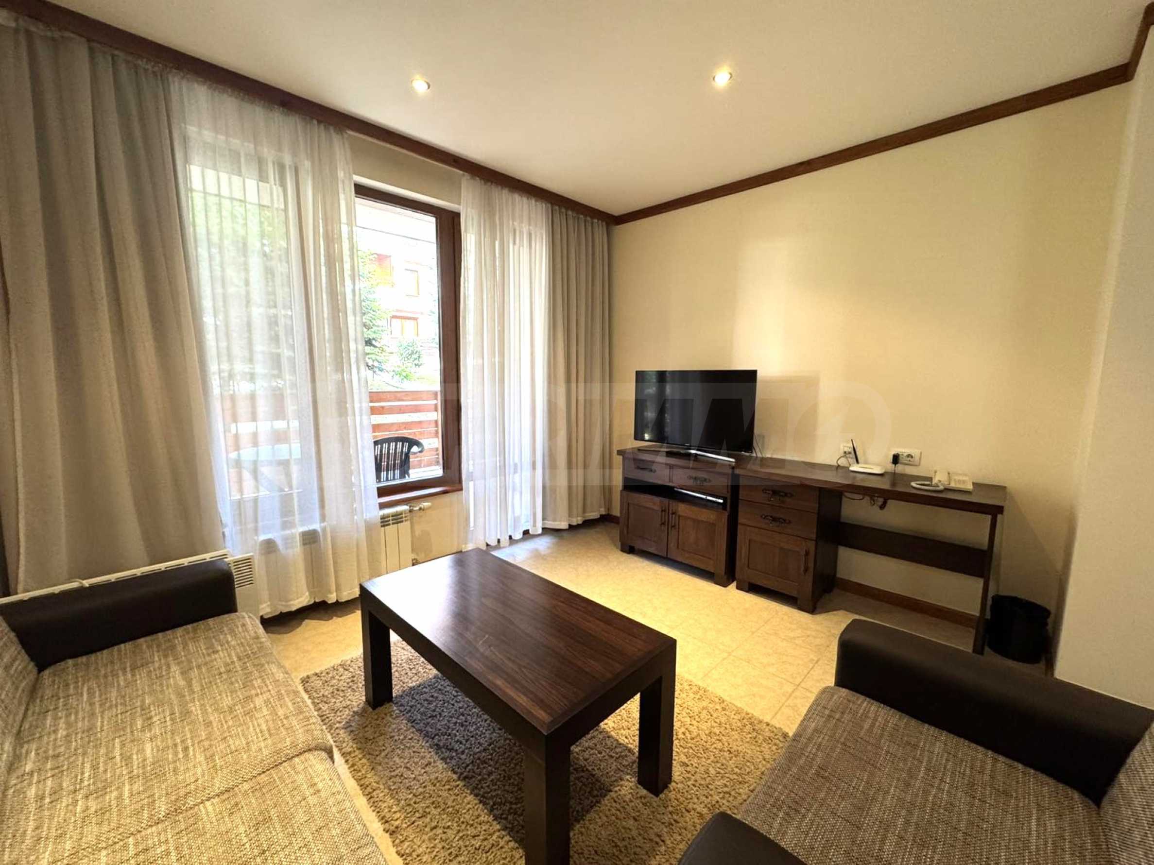 Oferujemy na sprzedaż umeblowane mieszkanie z jedną sypialnią w kompleksie SPA „St. Ivan Rilski”, oferującym jedne z najlepszych udogodnień w ośrodku narciarskim Bansko.