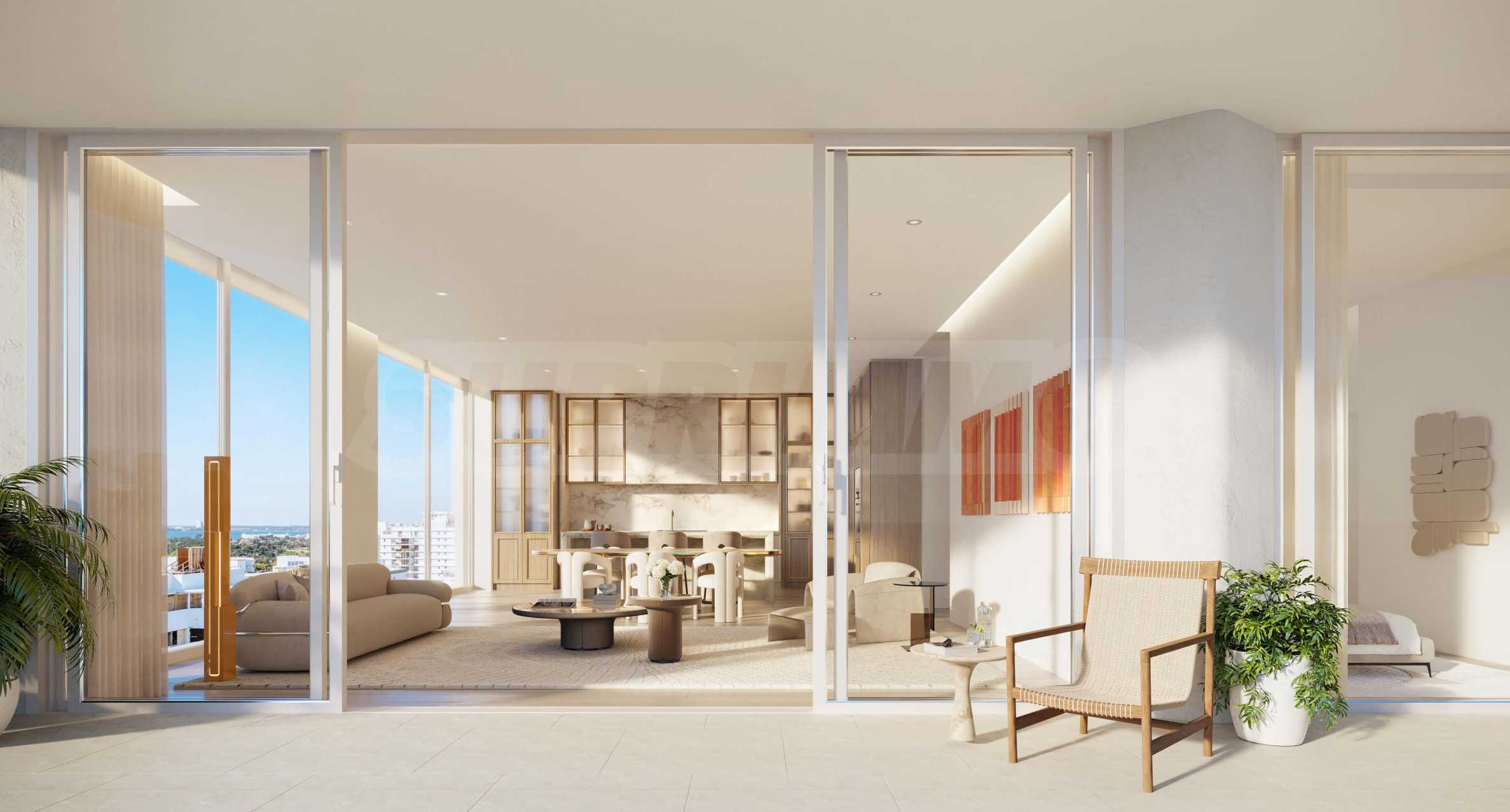 Przedstawiamy Państwu niezwykle stylowy i jasny apartament z trzema sypialniami, który zachwyca przestronnością i elegancją. Panoramiczne okna od podłogi do sufitu wypełniają wnętrze naturalnym światłem i odsłaniają oszałamiający widok na ocean - prawdziwy obraz, który zmienia się z każdą godziną dnia. Dzięki mechanizmom przesuwnym granica między przestrzenią wewnętrzną i zewnętrzną jest rozmyta, tworząc płynne przejście na przestronny taras.