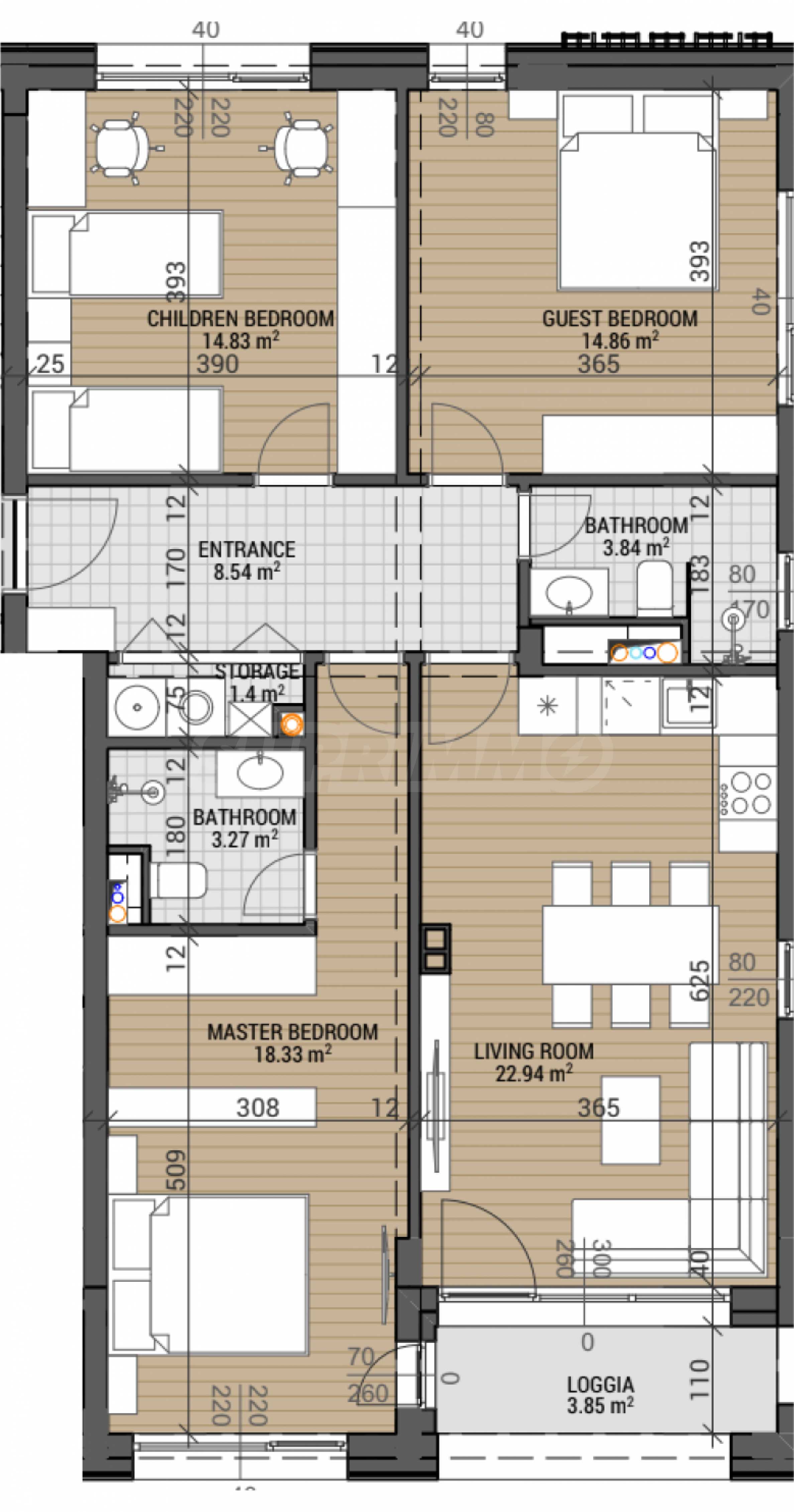 • 3 sypialnie;