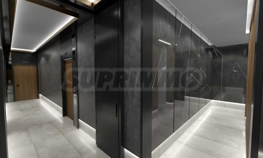 Drzwi wejściowe to pancerne SOLID Smart Doors, produkowane w Bułgarii, z dwoma niezależnymi systemami zamykania, automatycznym zamykaniem, odblokowywaniem odciskiem palca, a nawet możliwością sterowania za pomocą telefonu komórkowego, w tym wbudowanym systemem alarmowym. Dla jeszcze większego komfortu drzwi wejściowe budynku są wyposażone w automatykę GEZE, gwarantującą płynne i ciche otwieranie i zamykanie.