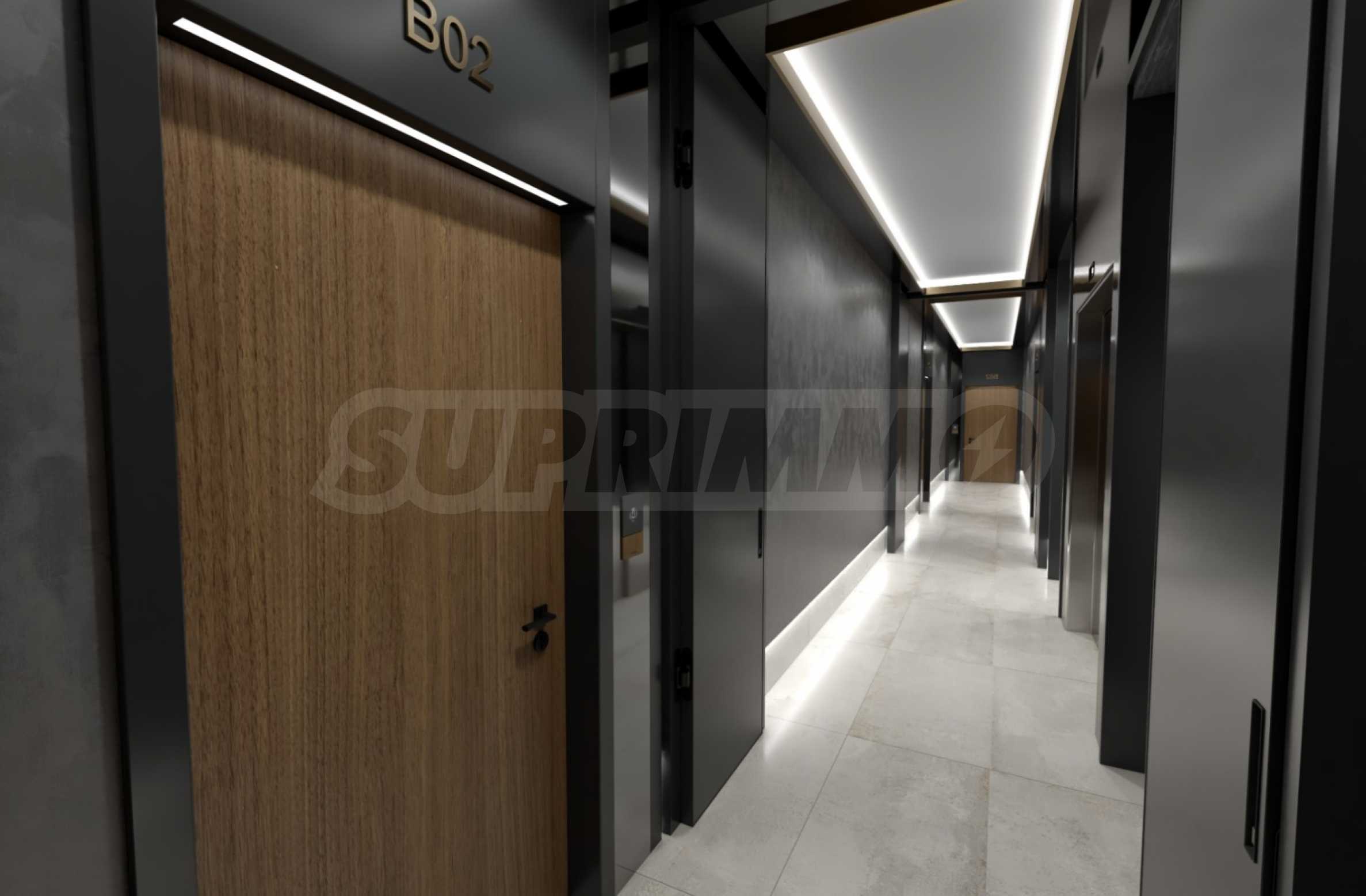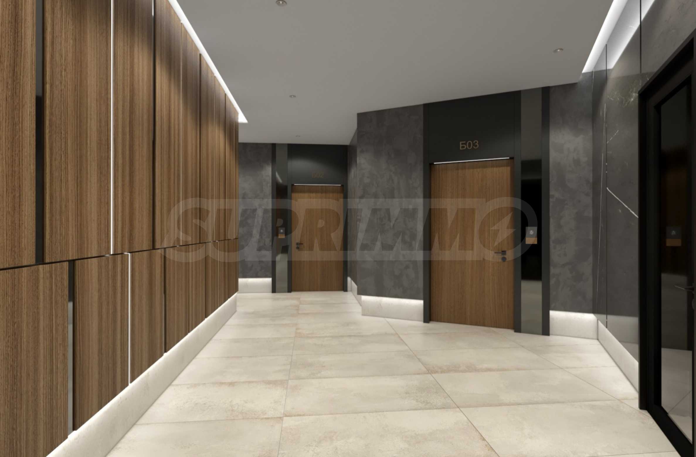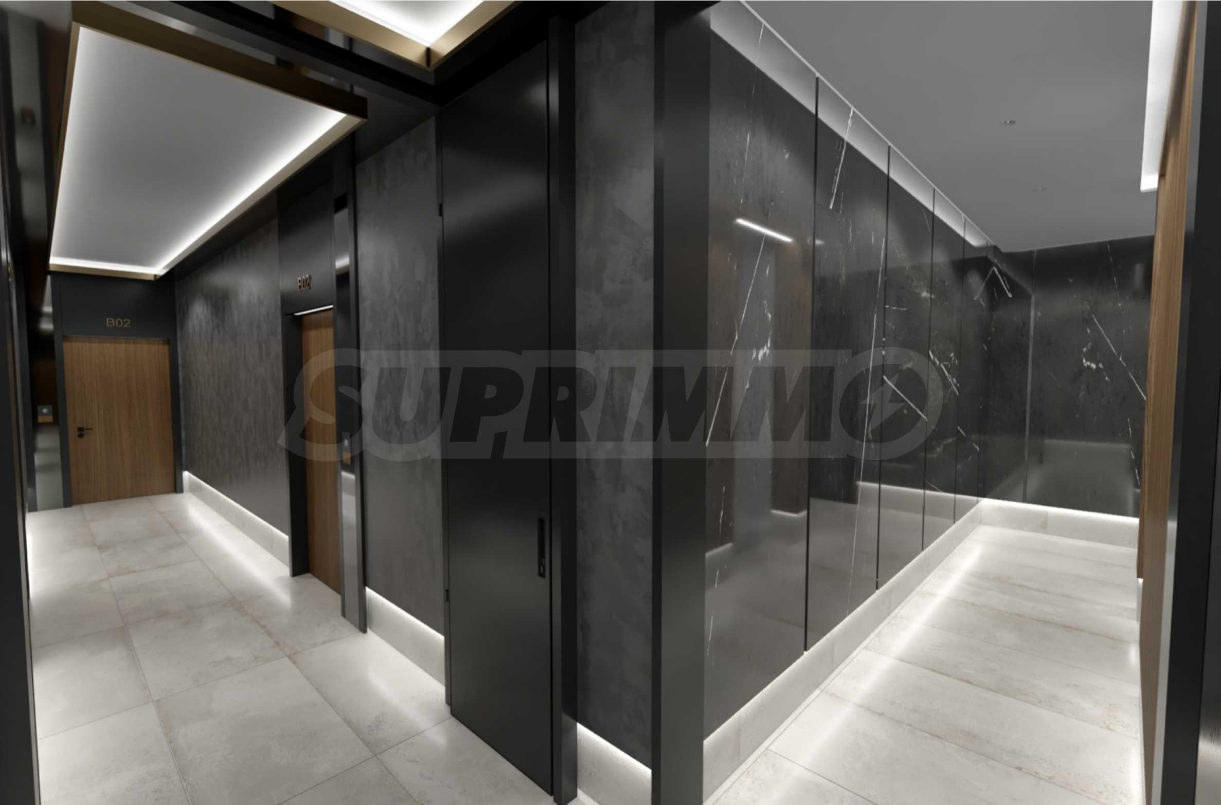 Drzwi wejściowe to pancerne SOLID Smart Doors, produkowane w Bułgarii, z dwoma niezależnymi systemami zamykania, automatycznym zamykaniem, odblokowywaniem odciskiem palca, a nawet możliwością sterowania za pomocą telefonu komórkowego, w tym wbudowanym systemem alarmowym. Dla jeszcze większego komfortu drzwi wejściowe budynku są wyposażone w automatykę GEZE, gwarantującą płynne i ciche otwieranie i zamykanie.