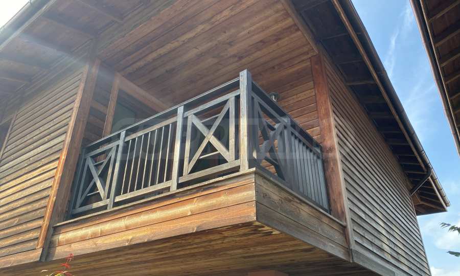 • okładzina zewnętrzna – drewno modrzewiowe i kamień Vratsa;