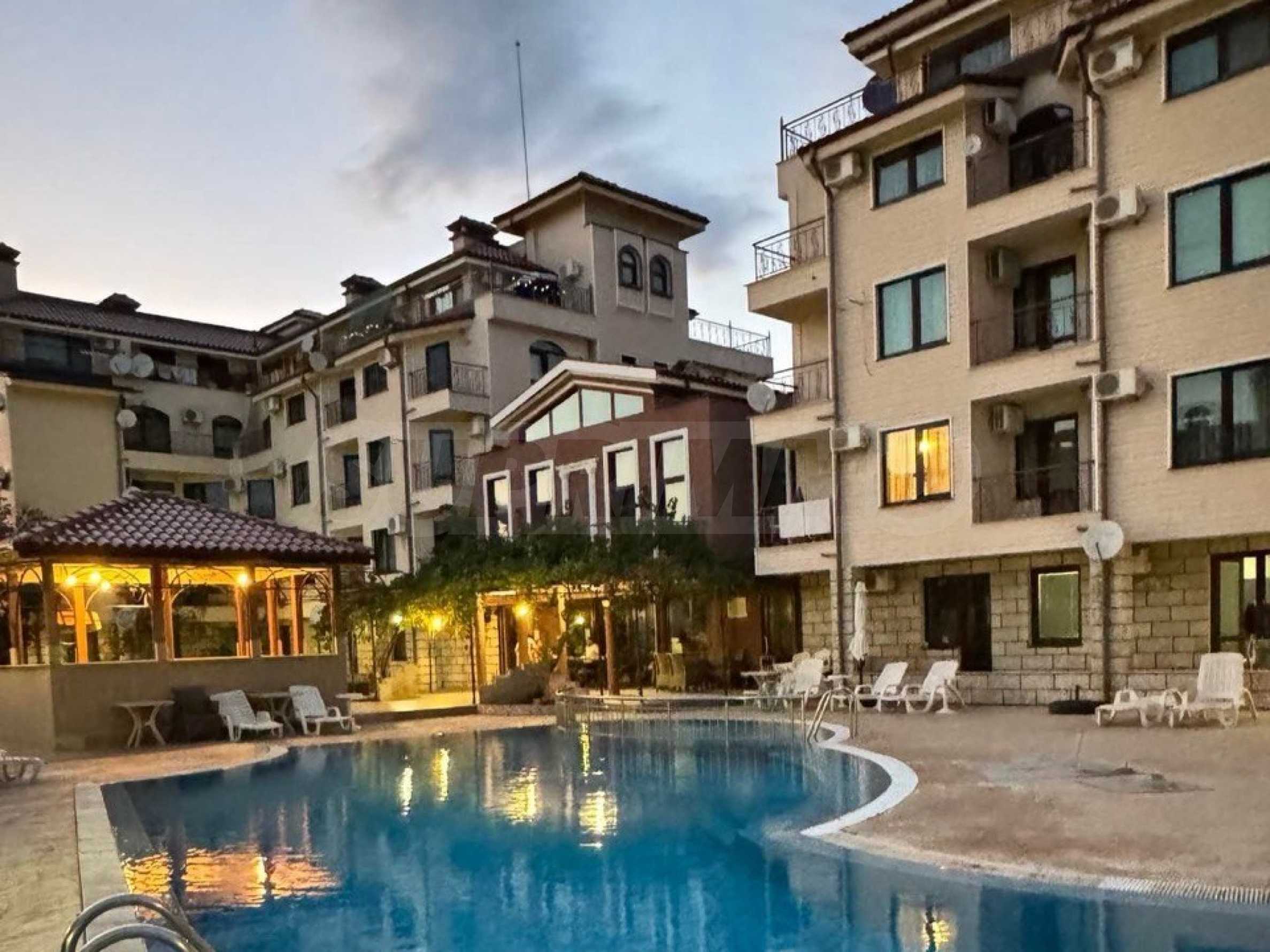 Prezentujemy przestronny apartament z dwiema sypialniami w luksusowym kompleksie, w dzielnicy willowej Koszarycy i 2 km od plaż wybrzeża Morza Czarnego w Słonecznym Brzegu. Tutaj komfort gór i magia morza łączą się, tworząc idealną atmosferę do relaksu i zabawy. Obszar jest ekologicznie czysty z uzdrawiającym powietrzem.