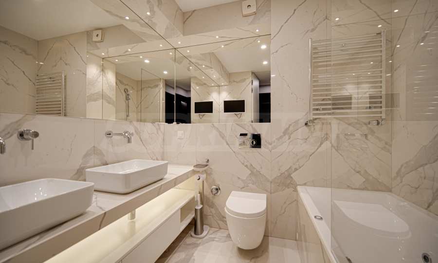 Apartament jest przestronny, jasny i z wysokimi sufitami, znajduje się na 5. piętrze w sumie 12, o powierzchni 165 m2. Wykończony według projektu projektanta, ten obiekt oferuje eleganckie wnętrze z dbałością o najmniejszy szczegół, meble i sprzęty najwyższej klasy.