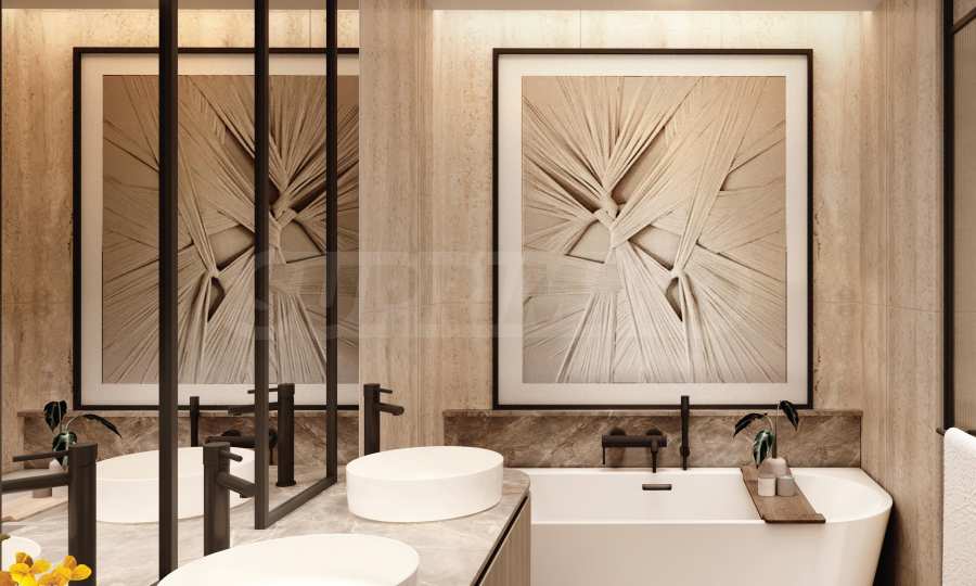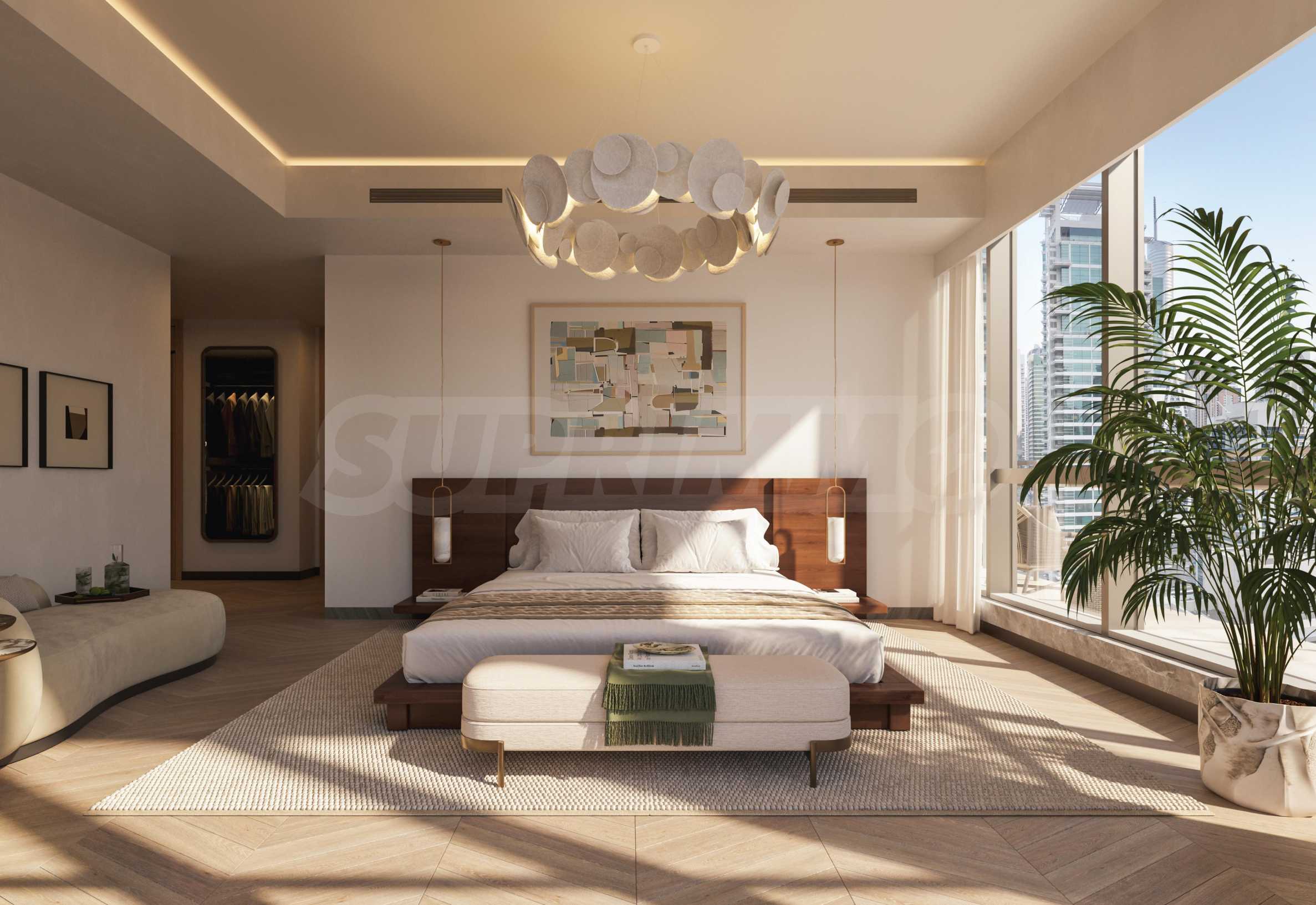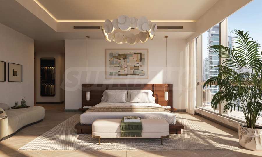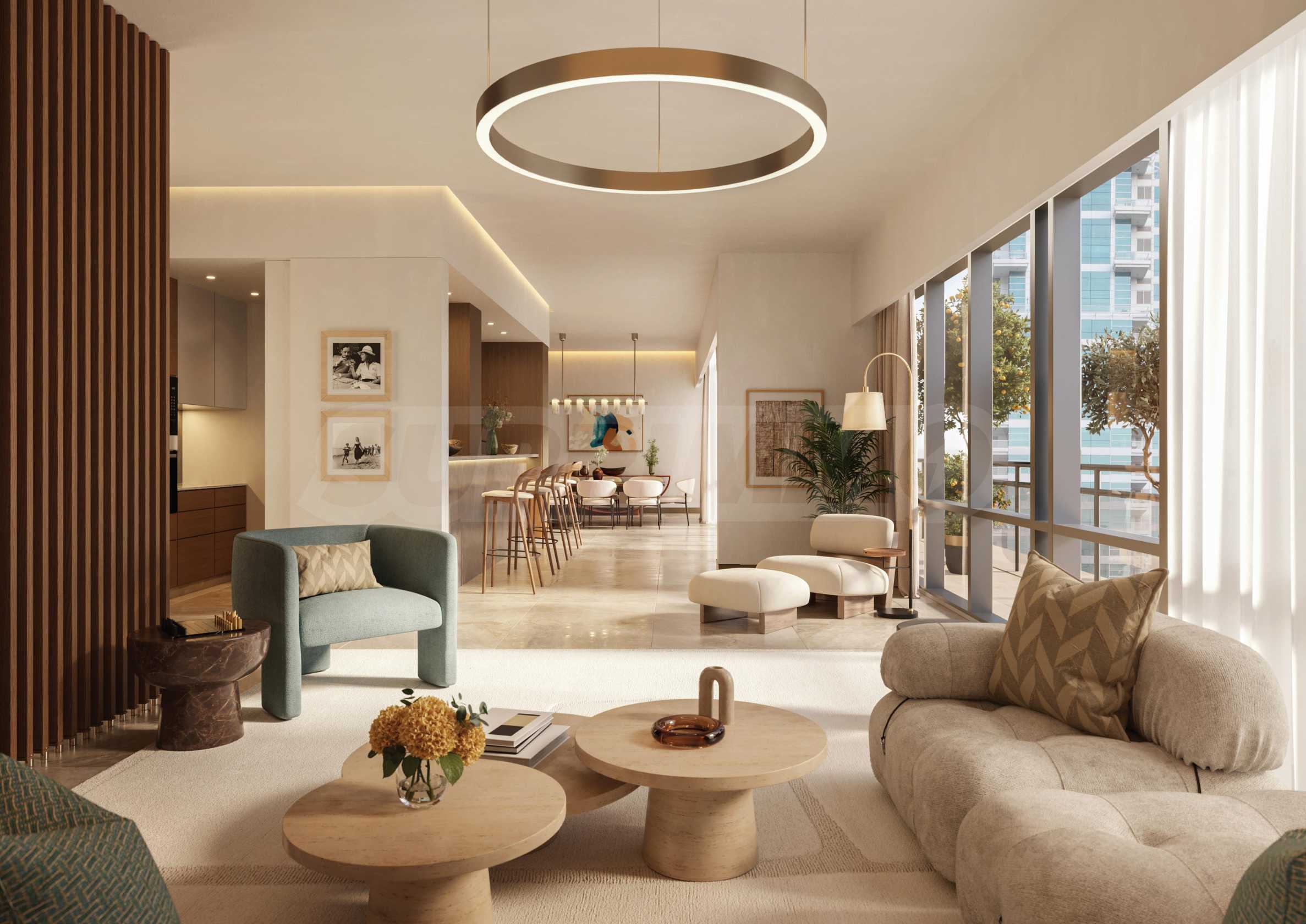 Drewniane podłogi w jodełkę, wykończenia na zamówienie i wykwintne kamienne prace odzwierciedlają wdzięk klasycznego designu jachtów, a jednocześnie płynnie wtapiają się w kosmopolityczny rytm Dubaju. Kuchnie są wyposażone w wysokiej klasy urządzenia Smeg, a łazienki łączą armaturę Gessi. Płynne przejście między przestrzenią mieszkalną wewnątrz i na zewnątrz tworzy otwartą i przestronną atmosferę, idealną do nowoczesnego stylu życia.