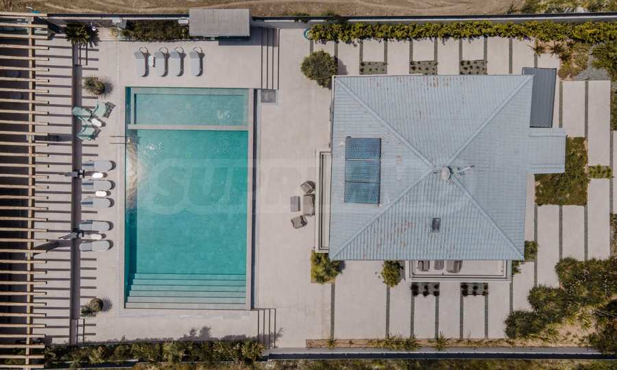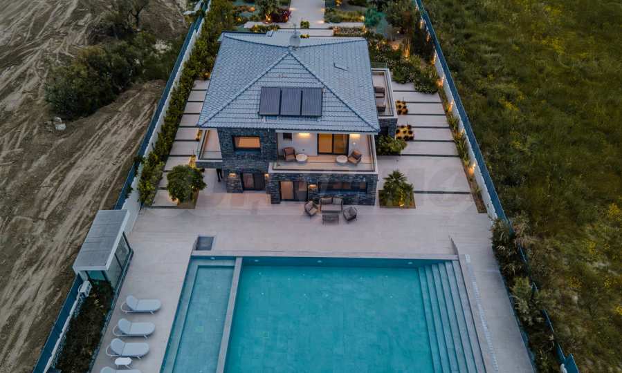 Zbudowana w 2023 roku willa ma klasę energetyczną „D” i urzekający otwarty widok na bezkresny horyzont. Stylowe aluminiowe okna i wysokiej jakości fajansowe podłogi nadają jej współczesny wygląd, a pancerne drzwi wejściowe i system alarmowy gwarantują spokój ducha i bezpieczeństwo.