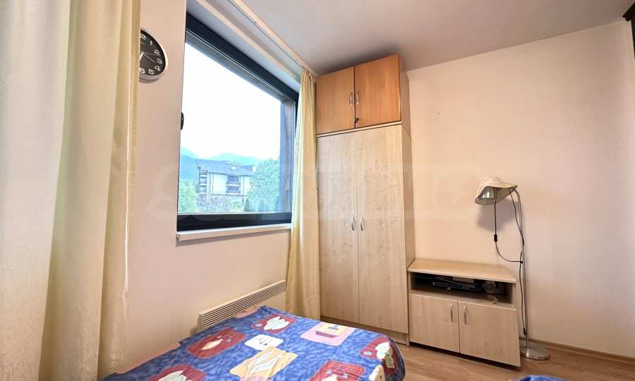 Oferujemy na sprzedaż w pełni umeblowane mieszkanie z jedną sypialnią w zamkniętym kompleksie Aspen Heights, położonym u podnóża gór Pirin, w pobliżu pola golfowego Pirin Golf & Country Club i zaledwie 10 minut jazdy od ośrodka narciarskiego Bansko.