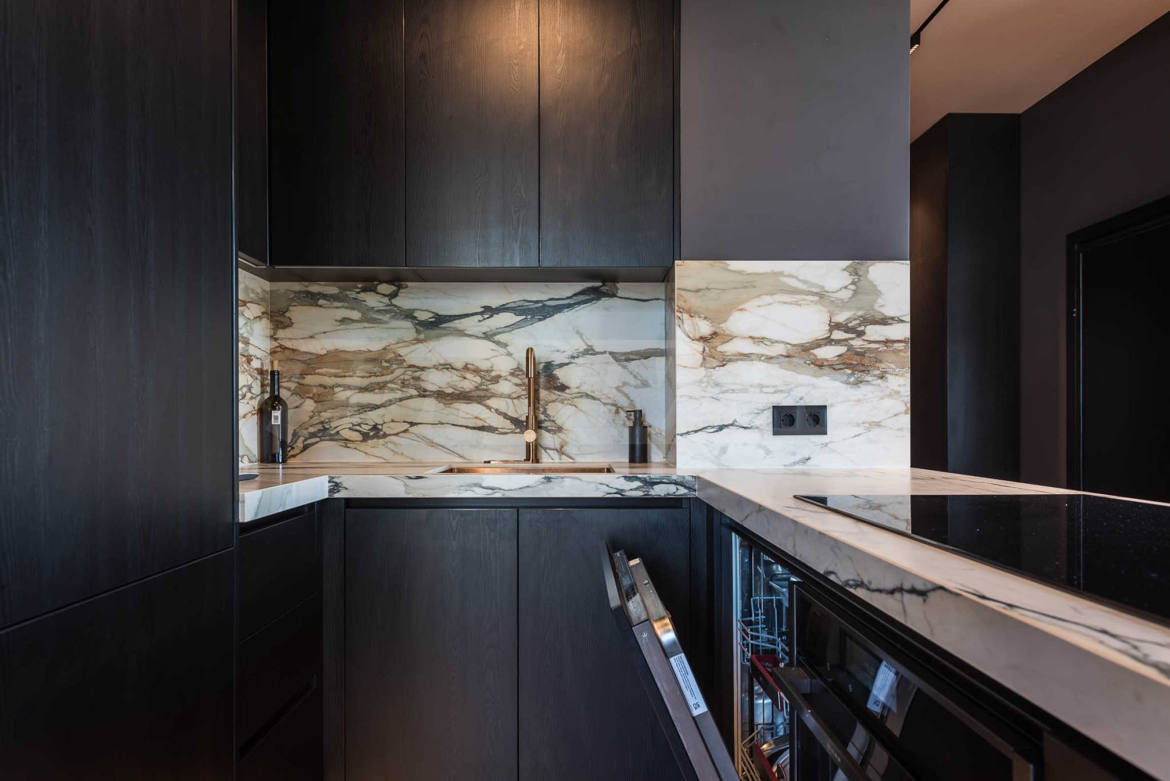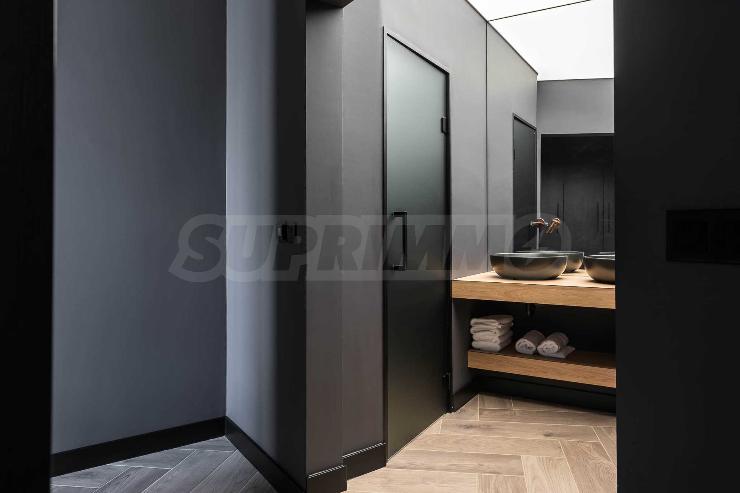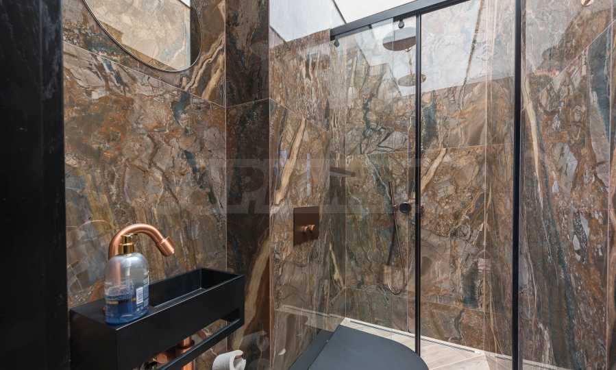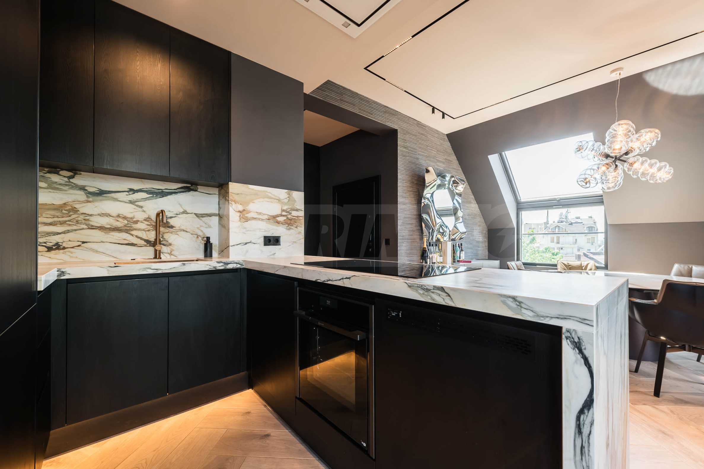 Każdy szczegół jest starannie dobrany, wykonany z wysokiej klasy materiałów i wykonany z dbałością o poczucie domu. Nieruchomość zachwyca wyrafinowaną atmosferą, uzyskaną dzięki palecie ciemnych, głębokich tonów, które tworzą poczucie luksusu, intymności i idealnej równowagi między komfortem a stylem. Tutaj luksus nie jest ostentacyjny, ale starannie dobranym uczuciem - wysokiej jakości materiały, designerskie meble i stylowa ciemna wizja, która przynosi przytulność i charakter. Każda przestrzeń w penthousie emanuje klasą i indywidualnością - koncepcja kolorystyczna w ciemnych tonach, połączona z precyzyjnie dobranymi fakturami i bezkompromisową jakością wykonania.