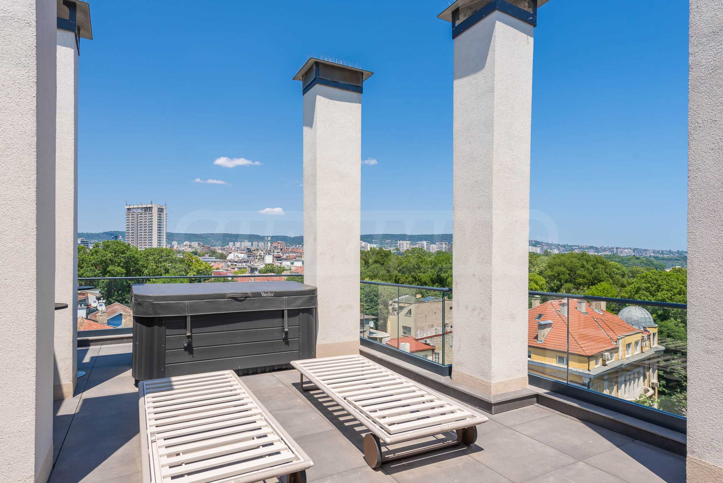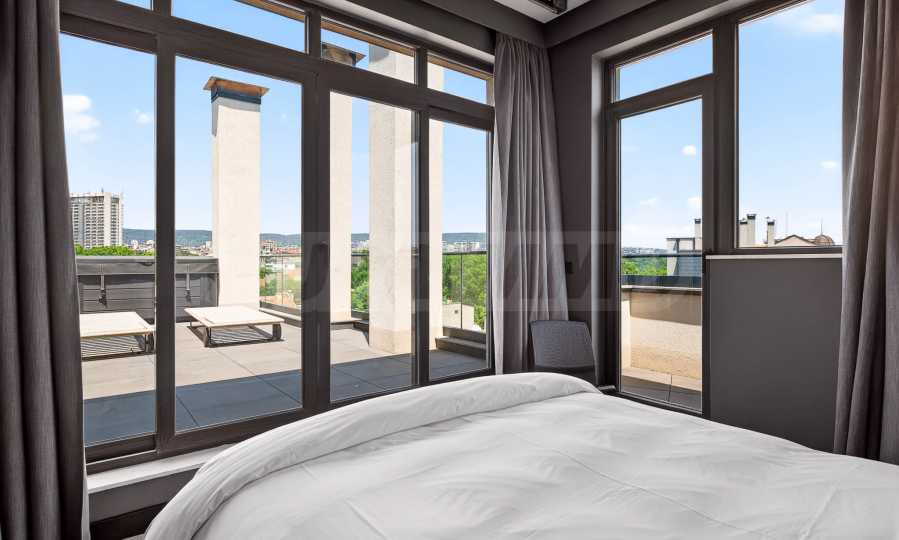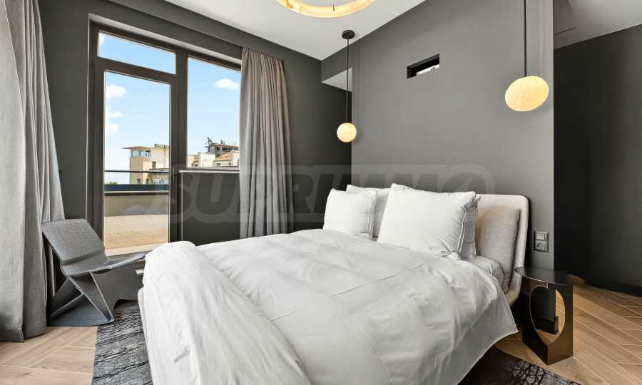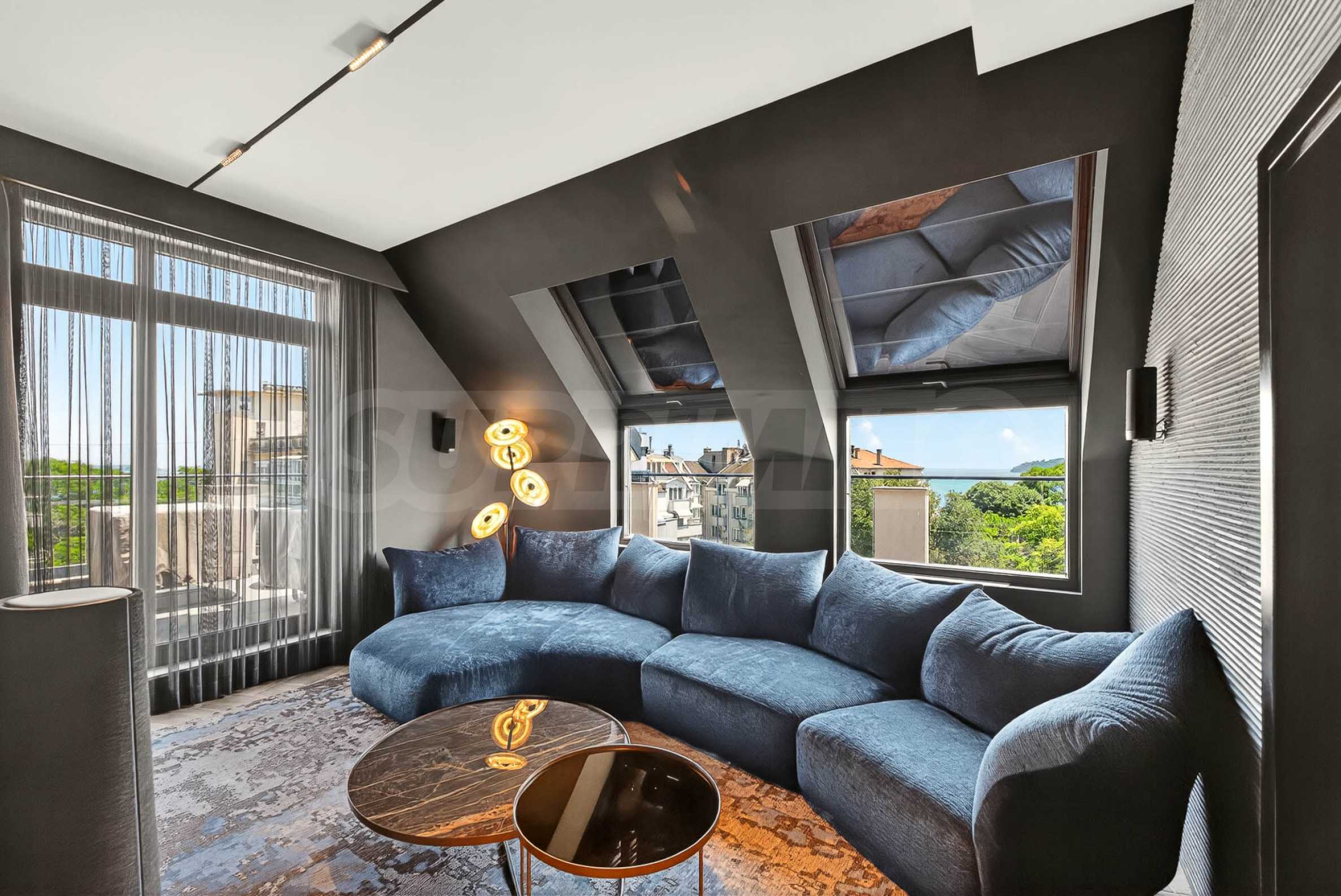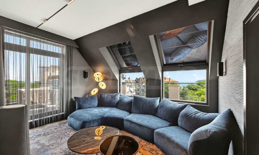 Panoramiczny designerski penthouse z 360° widokiem na morze i miasto w sercu Warny! Ekskluzywne meble, luksusowy parkiet, dźwiękochłonna izolacja – komfort i cisza w centrum miasta.