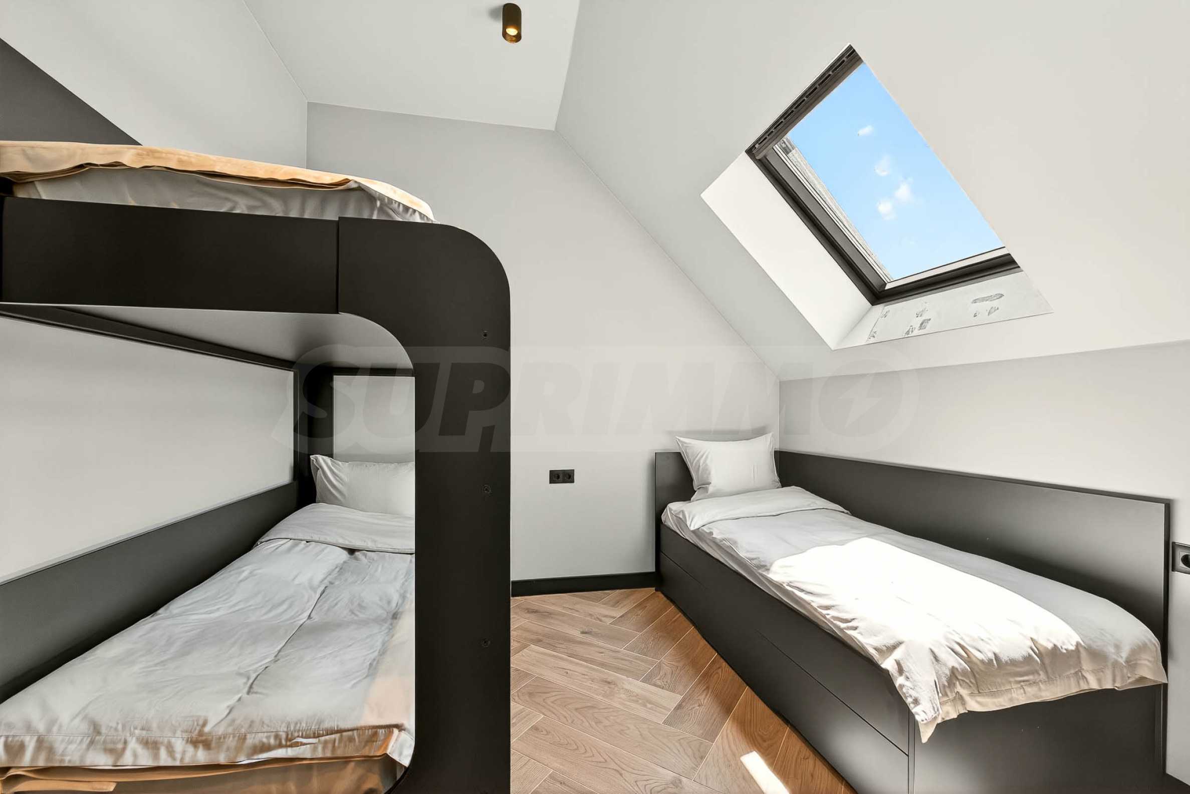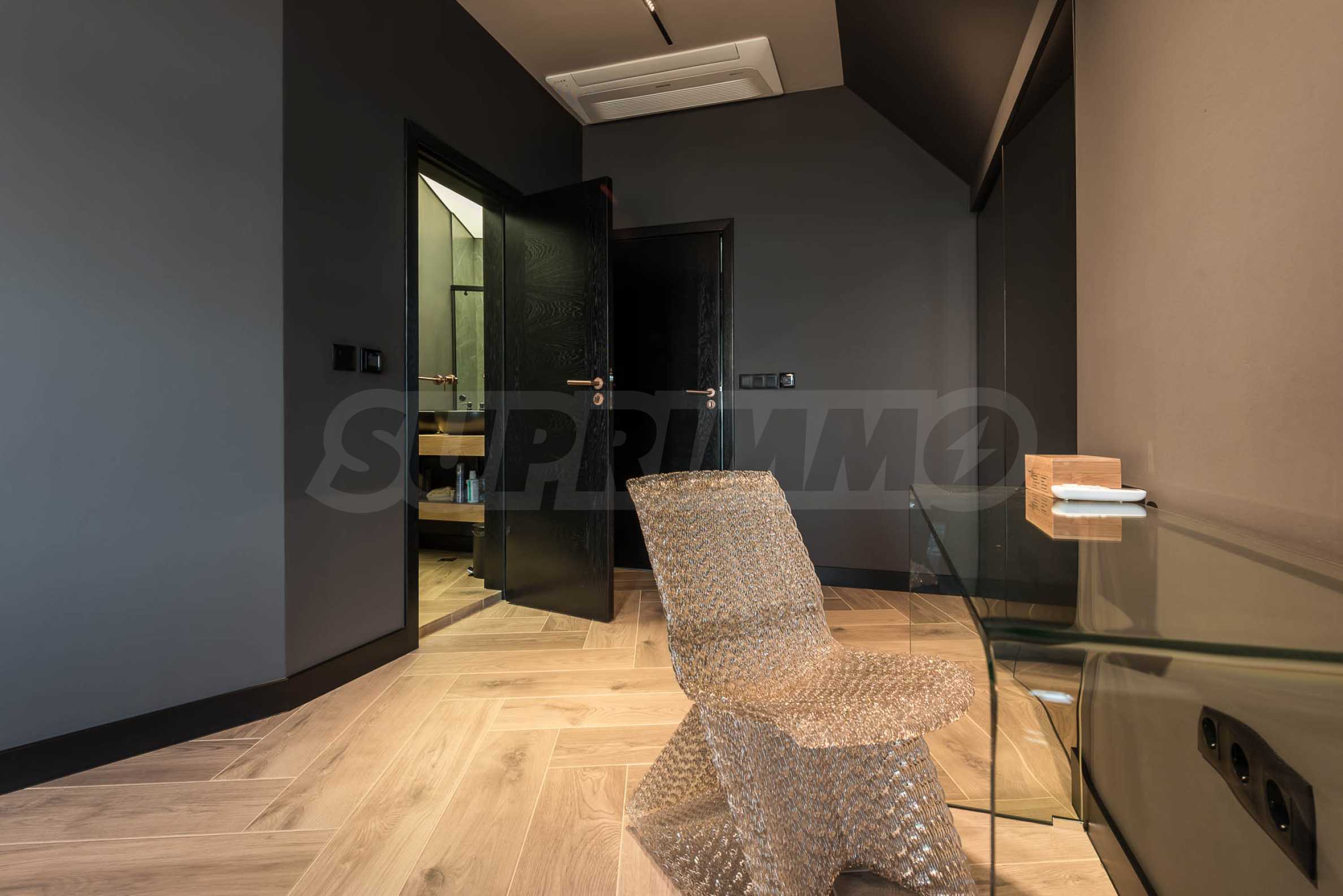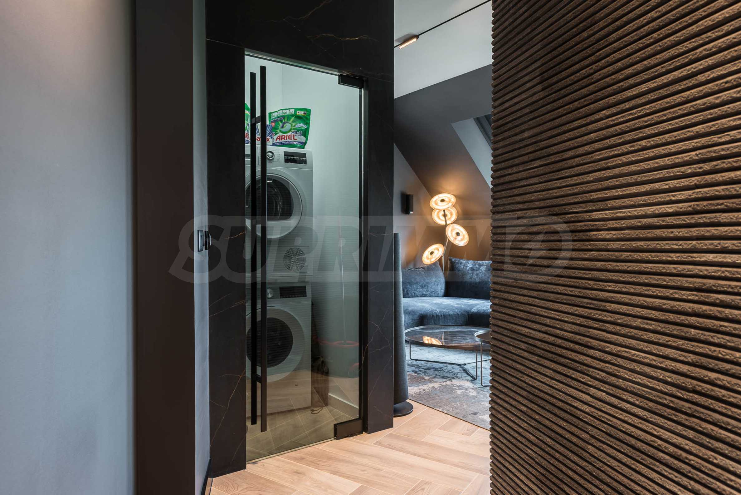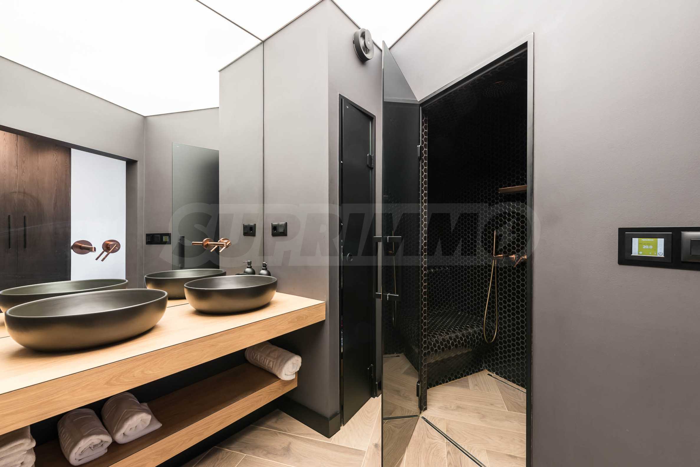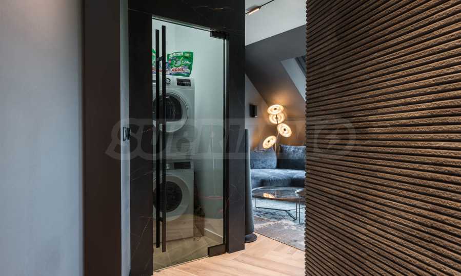 Wyposażenie klasy premium - wanna z hydromasażem, ekspres do kawy kapsułkowy, zmywarka, kuchenka mikrofalowa, dwie lodówki (w tym na wino), sejf, pralka, suszarka, telewizor smart TV z platformami streamingowymi, system nagłośnienia Harman Kardon, ogrzewanie i chłodzenie podłogowe w całym apartamencie, klimatyzacja Samsung, panele słoneczne z akumulatorem na dachu i wiele więcej.