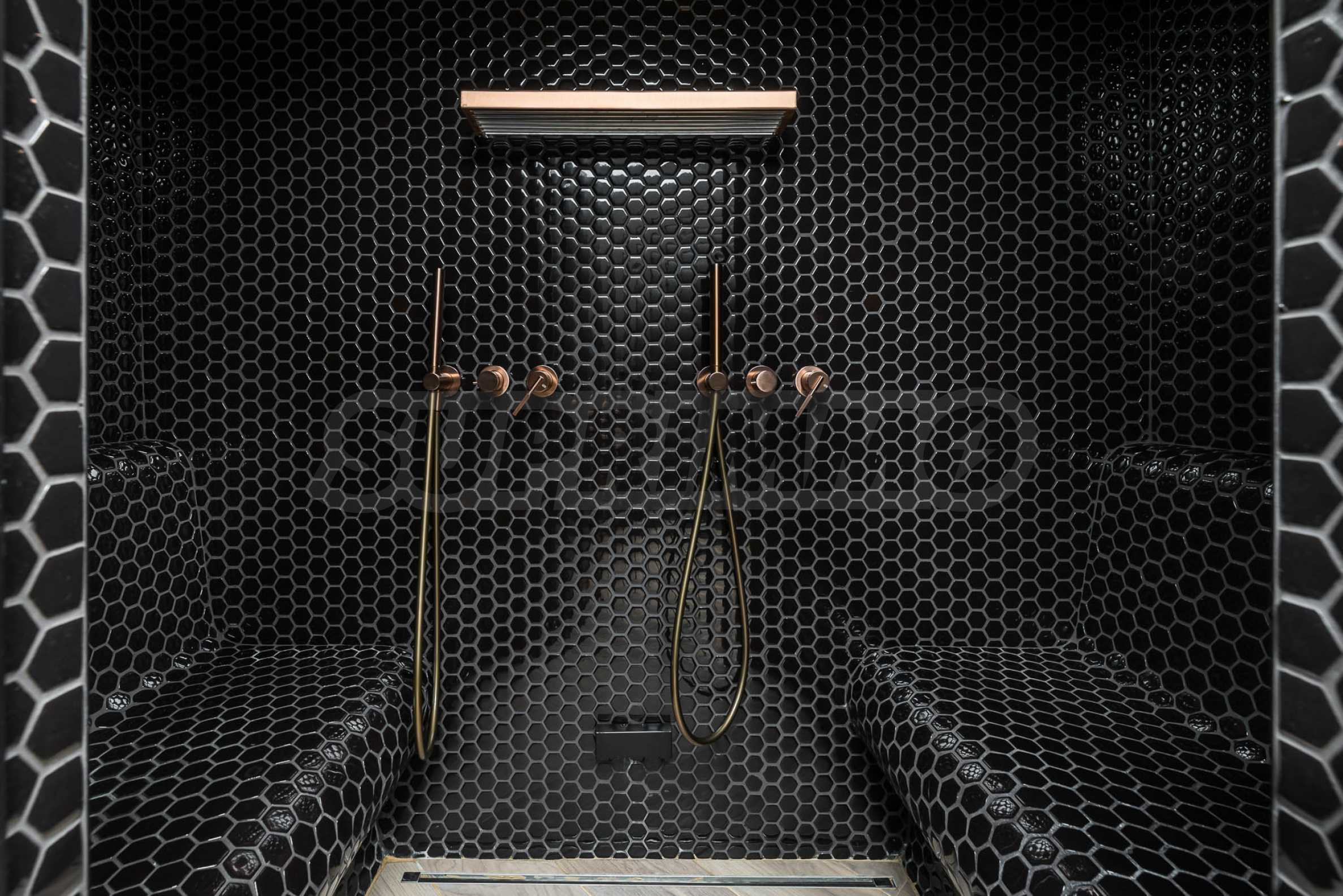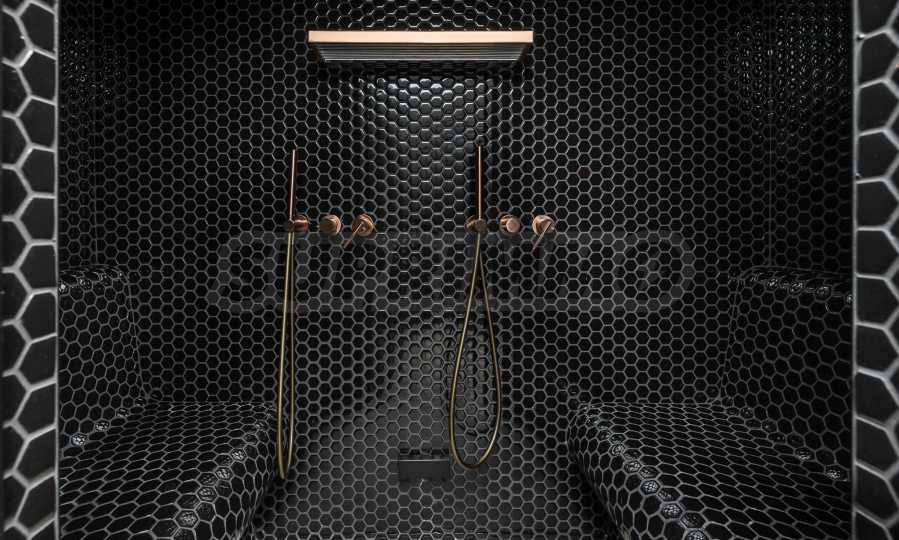 • Trzy stylowe łazienki, jedna z osobną łazienką przy sypialni głównej, druga z sauną i łaźnią parową;