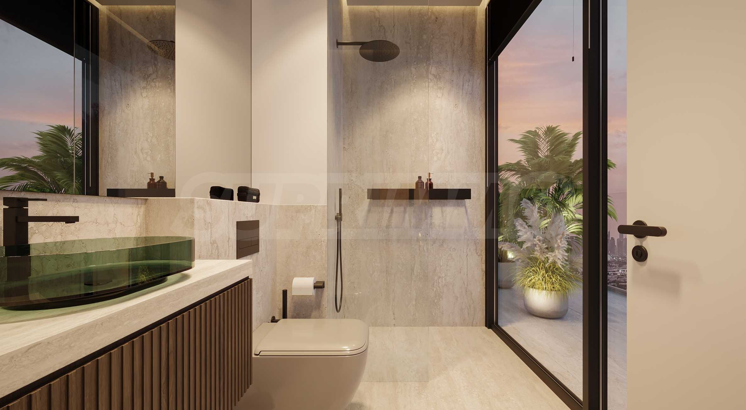Apartament znajduje się na 13. piętrze i ma powierzchnię całkowitą 90,14 m², w tym 19-metrowy słoneczny taras – idealny na poranną kawę lub wieczorny relaks. Układ wnętrza obejmuje jasny salon z wydzieloną częścią kuchenną i bezpośrednim wyjściem na przestronny taras, dwie wygodne sypialnie – każda z prywatną łazienką, a także osobną toaletę dla gości. Apartament wyposażony jest w nowoczesną kuchnię i wykończoną łazienkę, a koncepcja wnętrza opiera się na neutralnej palecie barw i czystych liniach, tworząc podstawę indywidualnego stylu i komfortu.