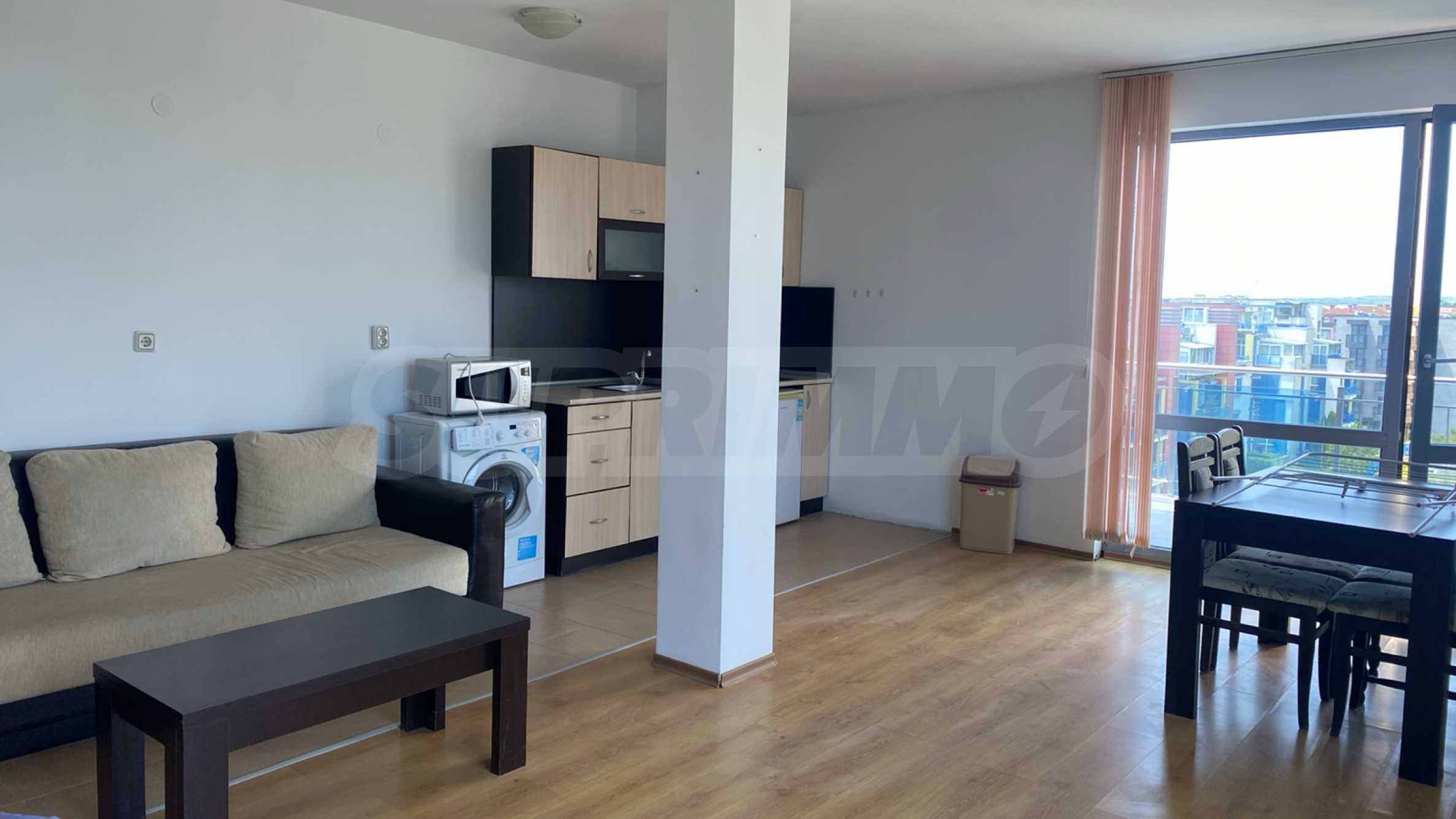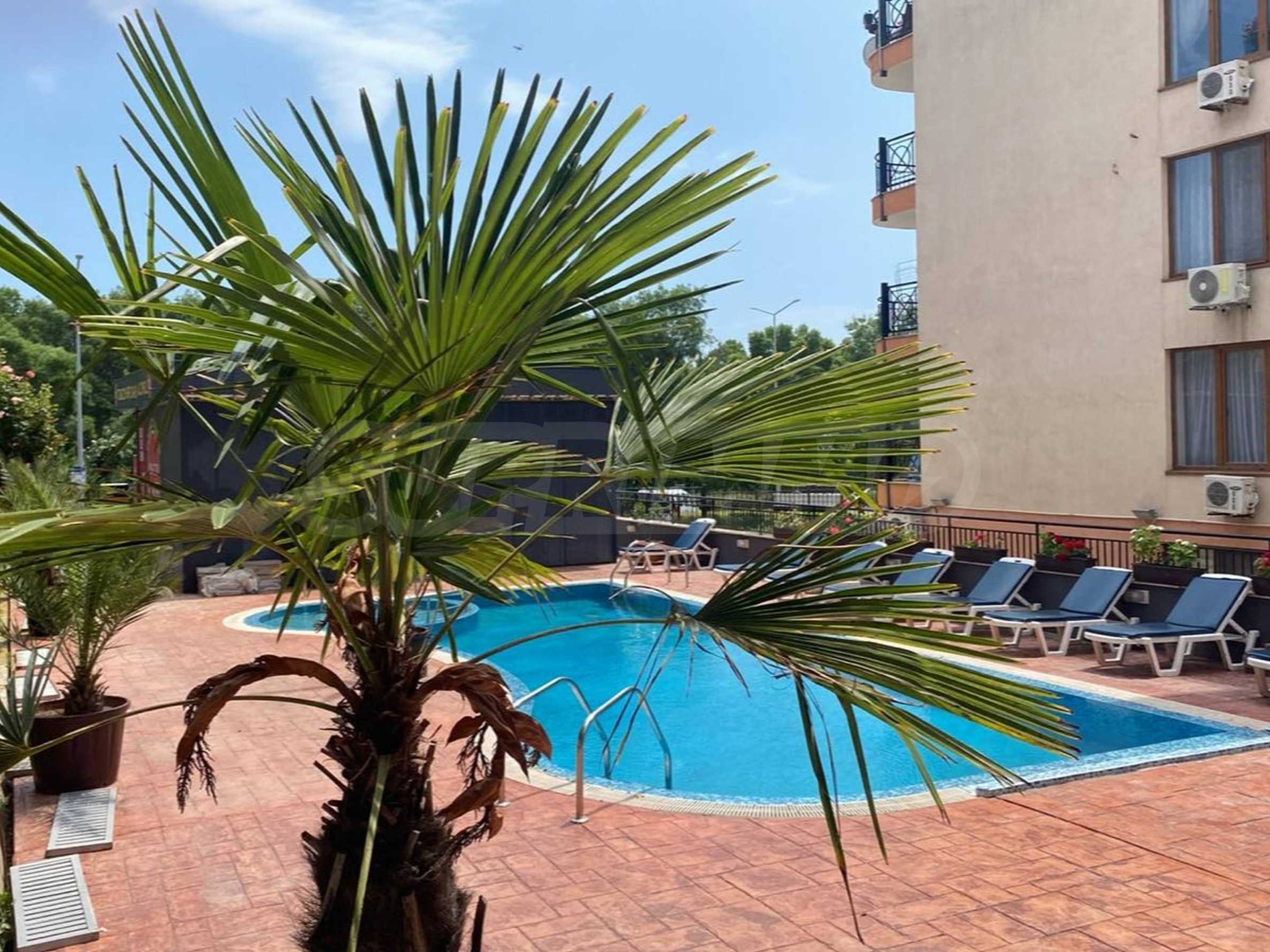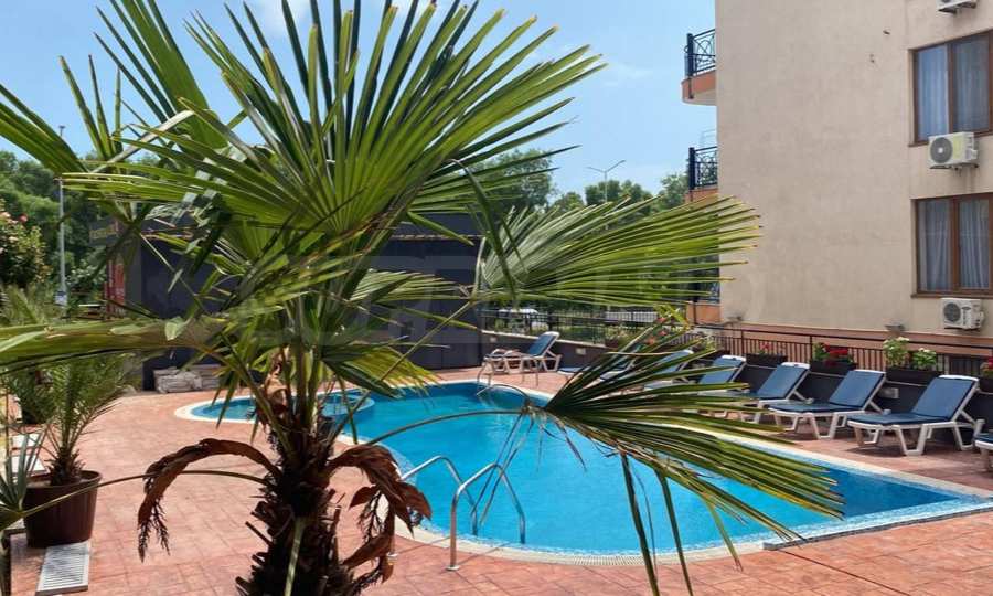 Oferujemy na sprzedaż mieszkanie z jedną sypialnią w strzeżonym kompleksie położonym 200 metrów od plaży Cacao Beach i budynku Rady Ministrów w Słonecznym Brzegu.