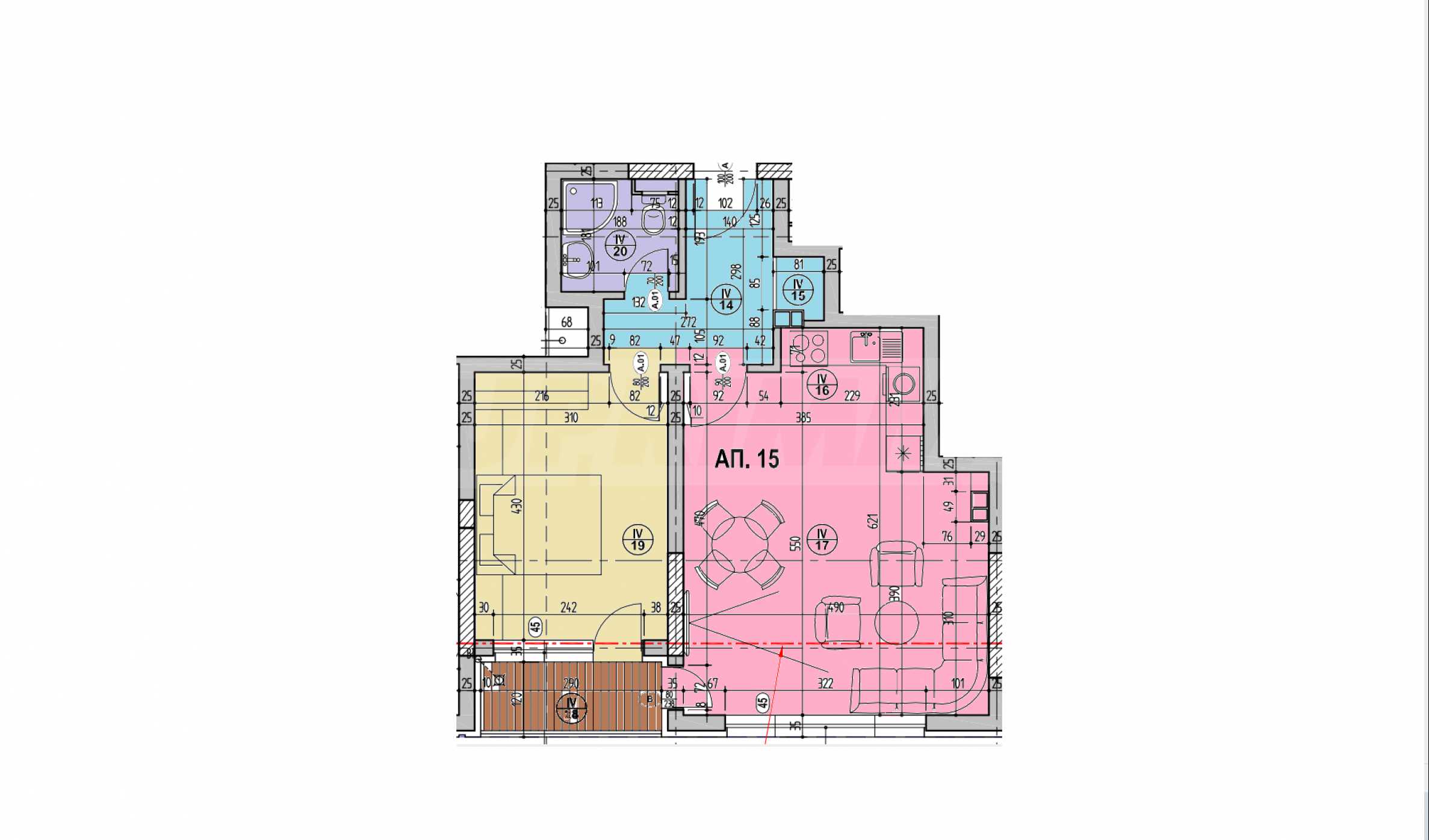• salon z aneksem kuchennym;