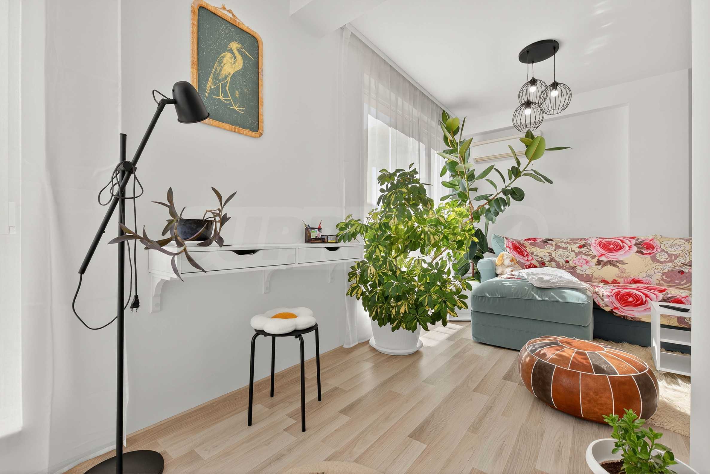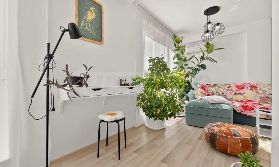 • przestronny i jasny salon z aneksem kuchennym, stylowo umeblowany i wyposażony we wszystko, czego potrzebujesz;