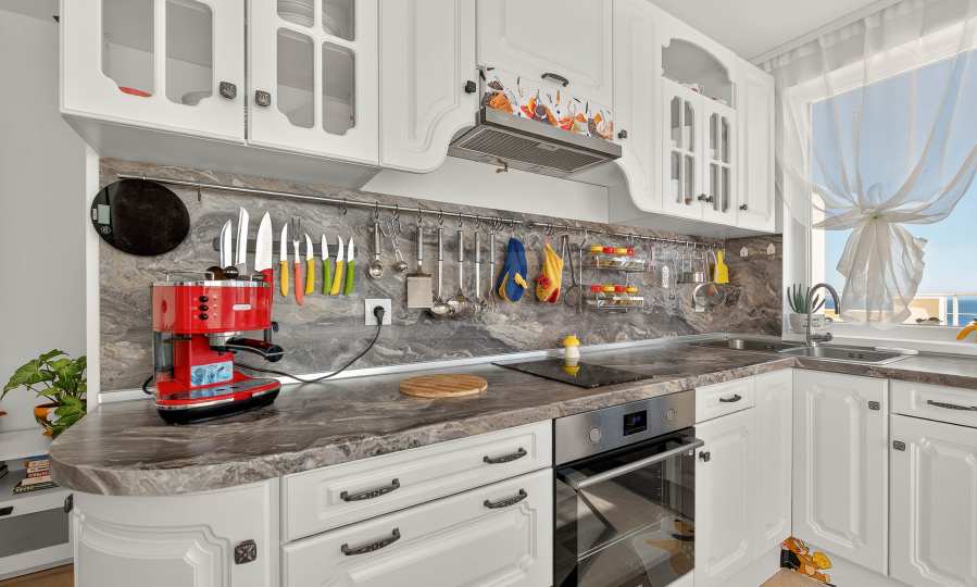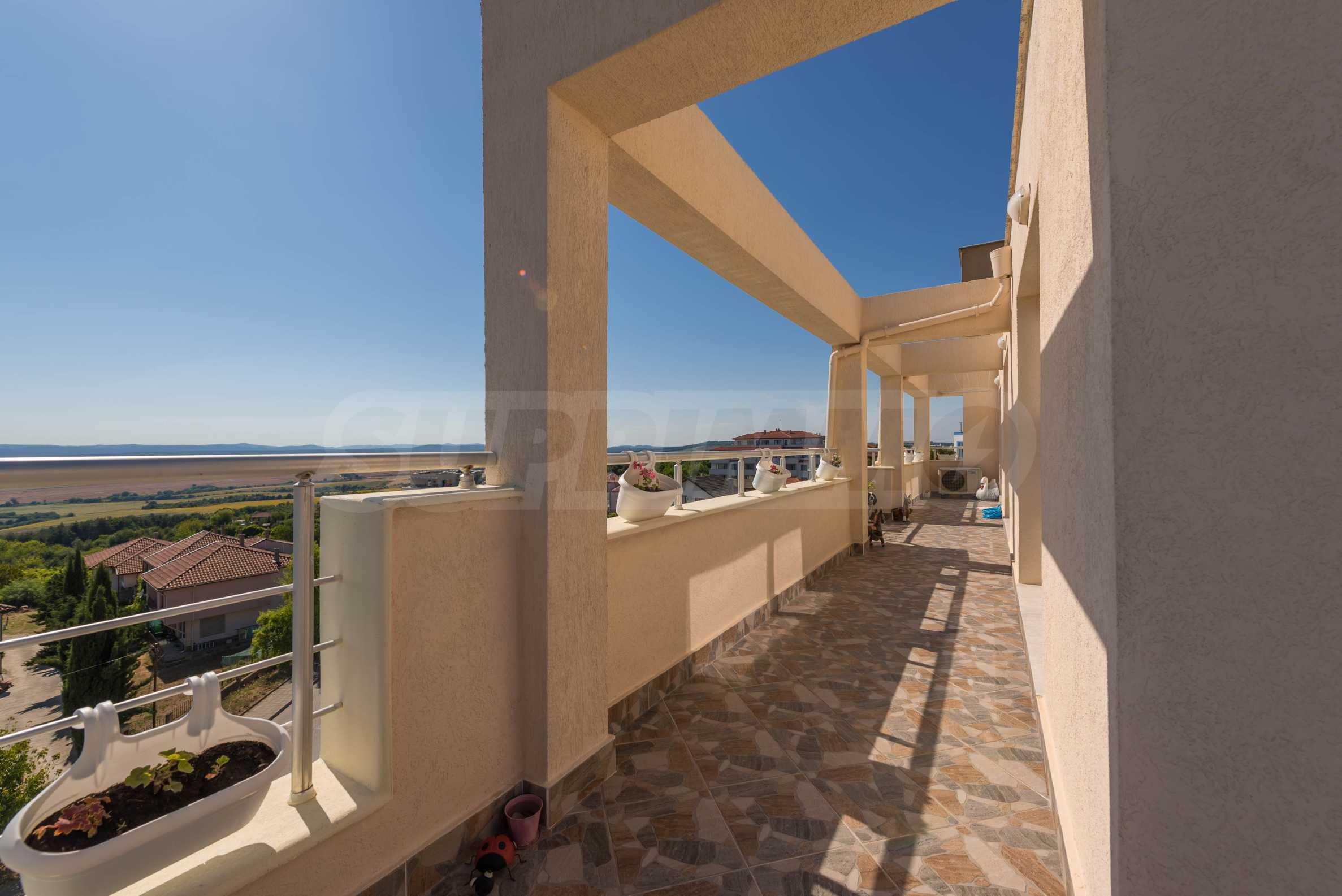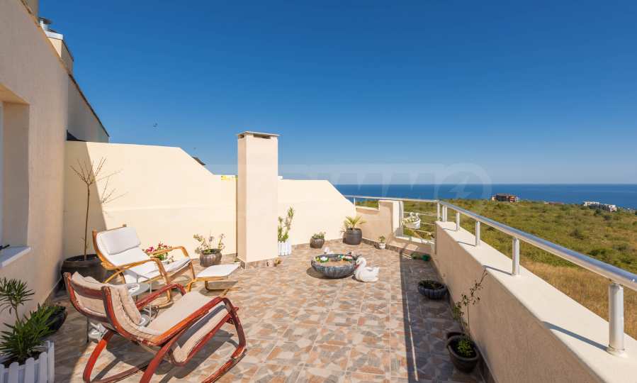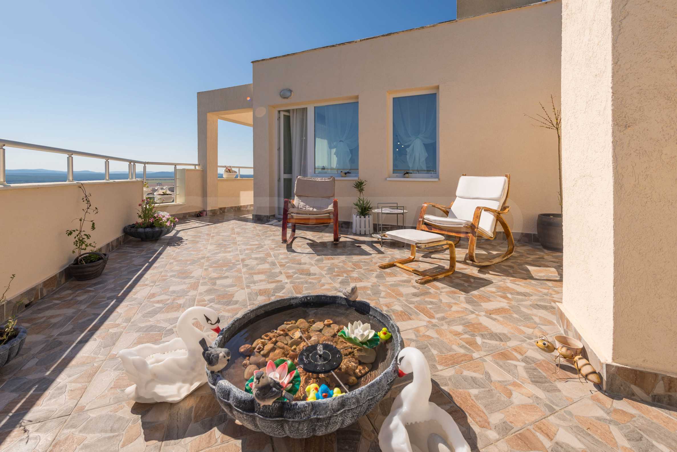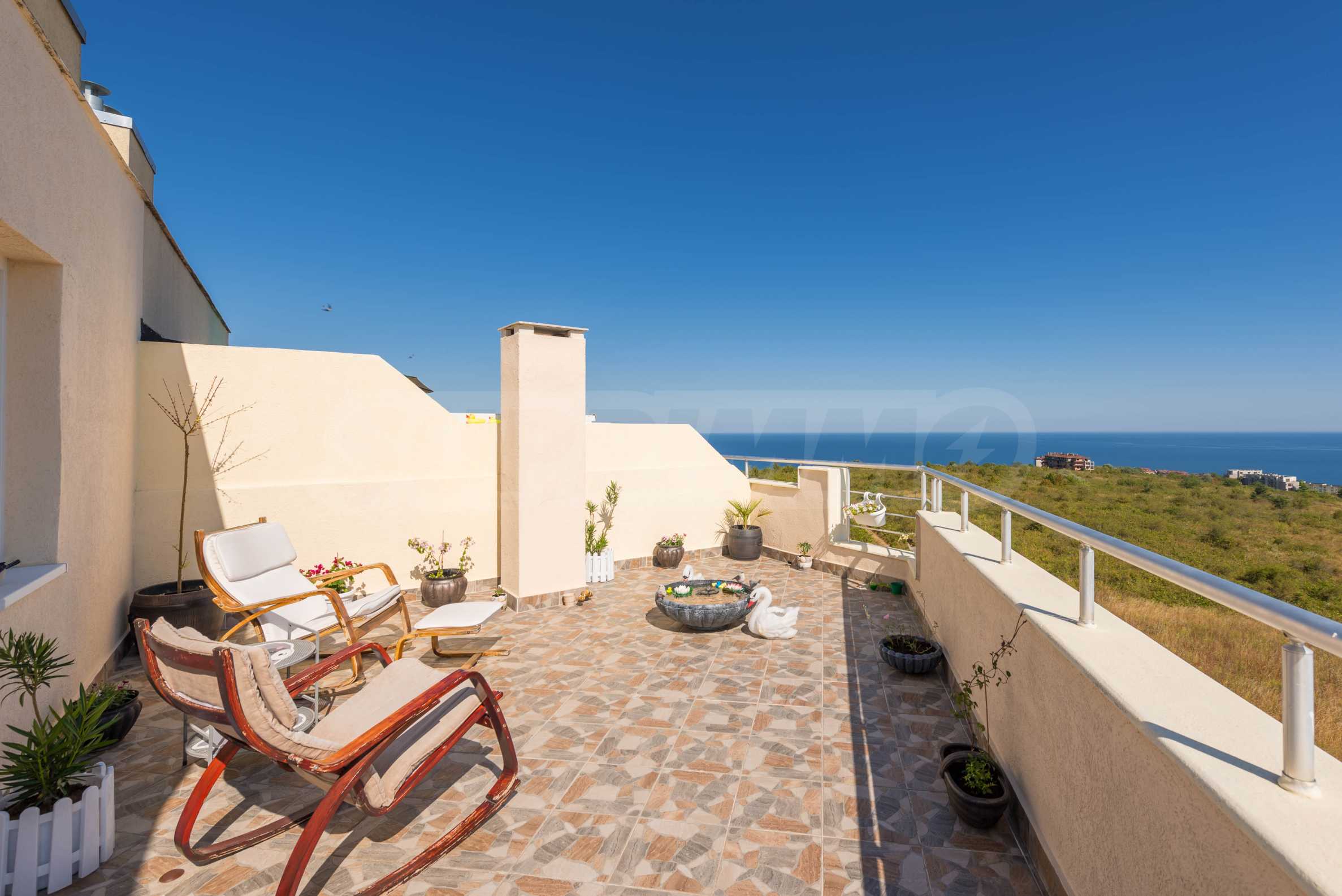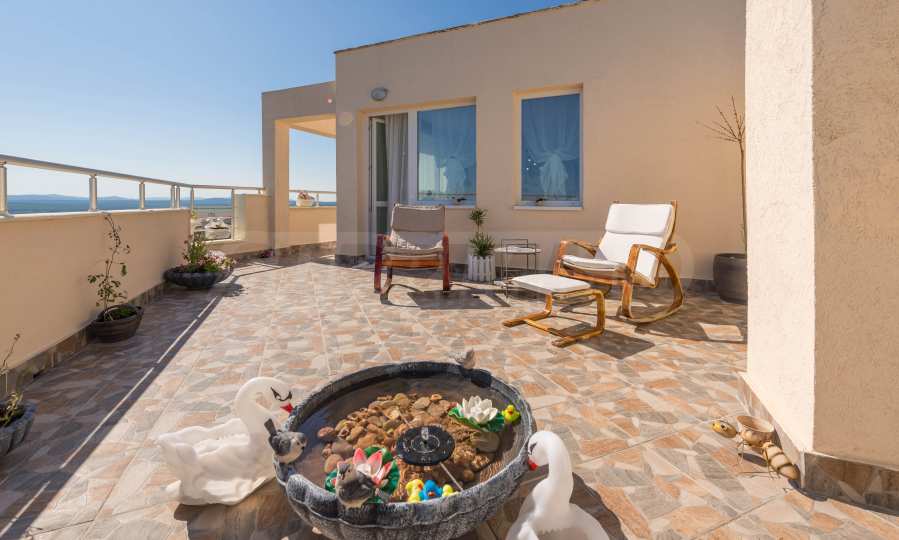 • ogromny taras, rozpościerający się z kilku stron na cały apartament, z niesamowitym widokiem panoramicznym na morze i okoliczne wzgórza.