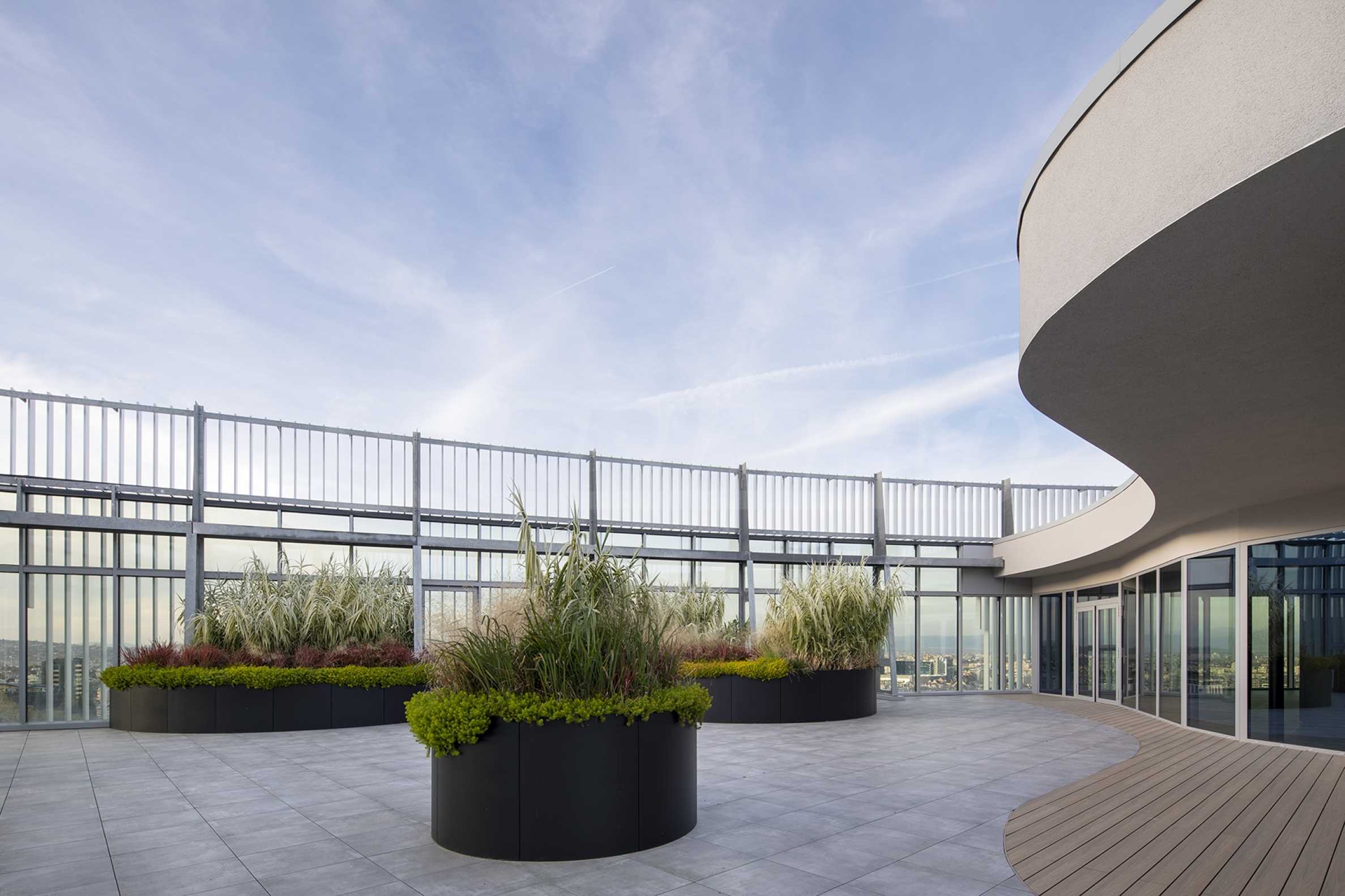 Budynek składa się z 11 kondygnacji nadziemnych, podzielonych pionowo na 3 części: poziom główny z wejściem, recepcją, reprezentacyjnym lobby i sklepem, piętro z showroomem, 7 kondygnacji z przestronnymi i jasnymi biurami oraz 2 kondygnacje z powierzchniami wielofunkcyjnymi – salą eventową i ogrodem na dachu, skąd roztaczają się imponujące widoki na miasto i góry. Budynek posiada dwie kondygnacje podziemne przeznaczone na parking i lokale usługowe. Parking dla gości i pracowników w budynku ma kontrolowany dostęp i jest objęty całodobową ochroną.