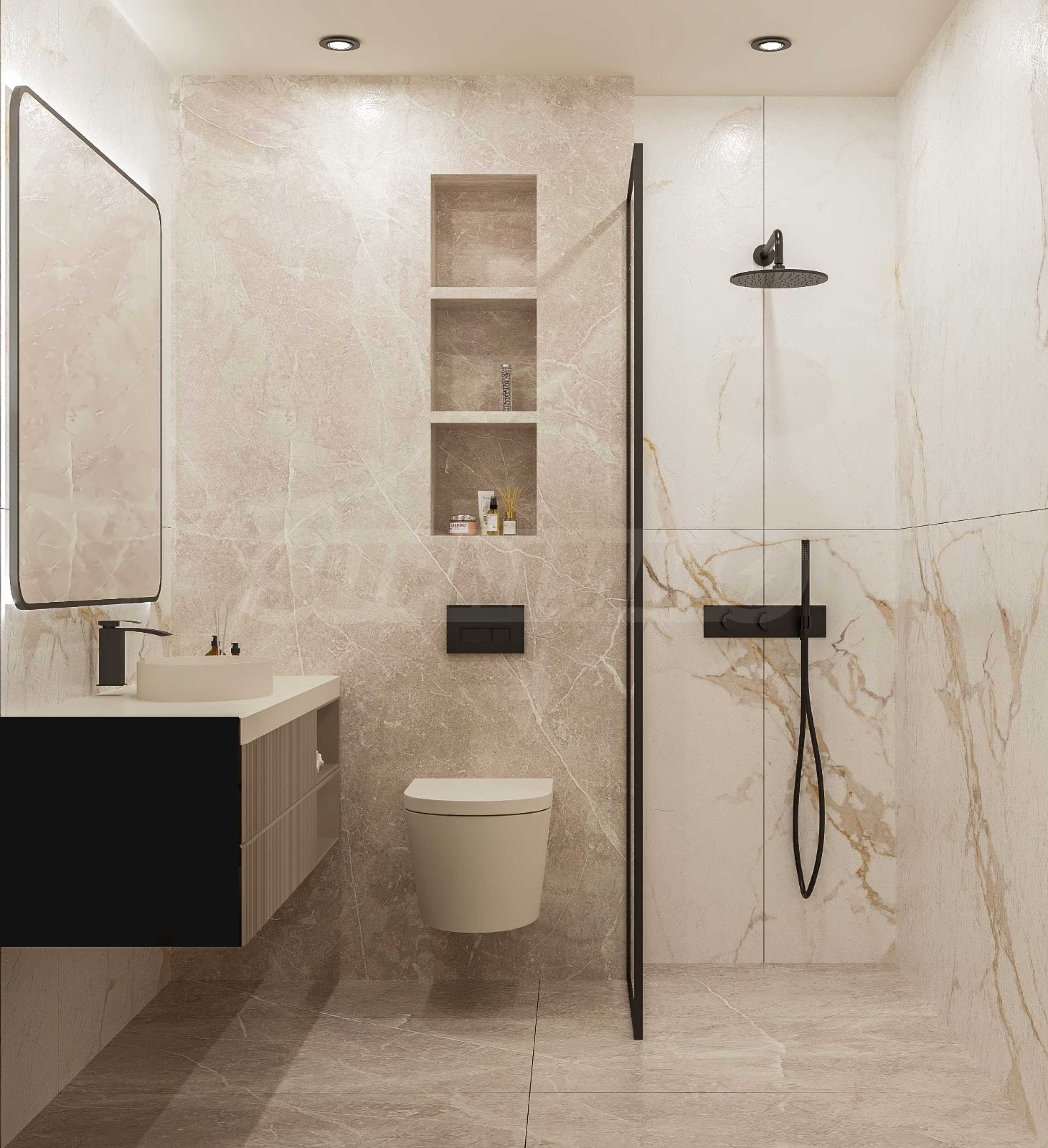 • W małej łazience zastosowano włoski mikrocement Ecobeton Microbond – jednoskładnikowy, mineralny, ekologiczny i wodoodporny o końcowej grubości 2–3 mm;