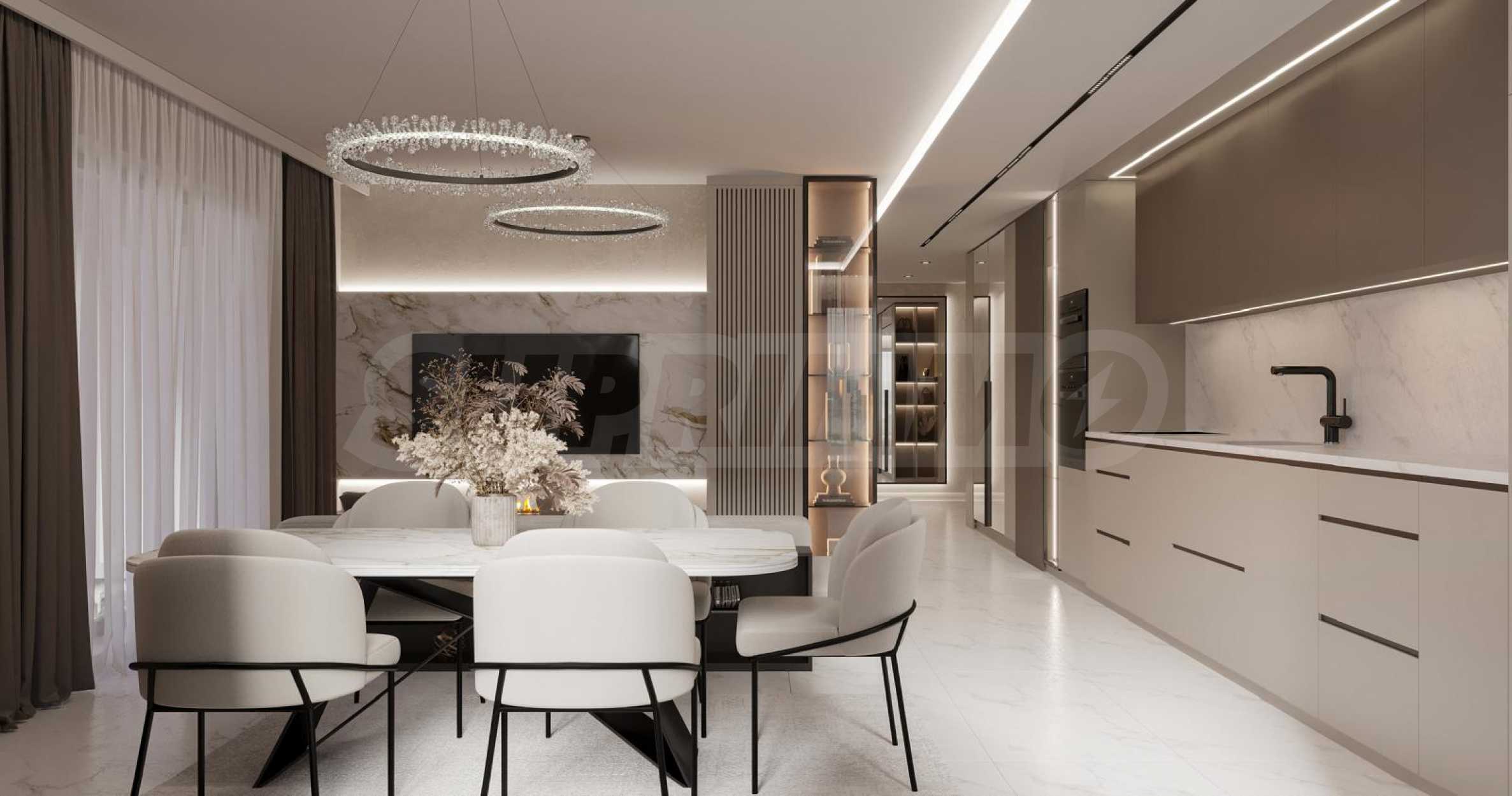• W całym mieszkaniu zintegrowano 42 m wysoce wydajnej taśmy LED 24 V o współczynniku oddawania barw CRI >90, 14,4 W/m, kącie 120° i stopniu ochrony IP65, z żywotnością 50 000 h;