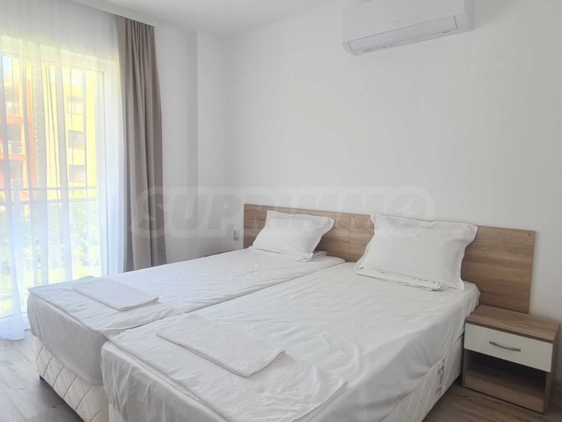 Oferujemy ekskluzywną ofertę wynajmu mieszkania z jedną sypialnią w kompleksie o doskonałej lokalizacji, w pierwszej linii od plaży, w bliskim sąsiedztwie wszystkich udogodnień w mieście Sozopol.