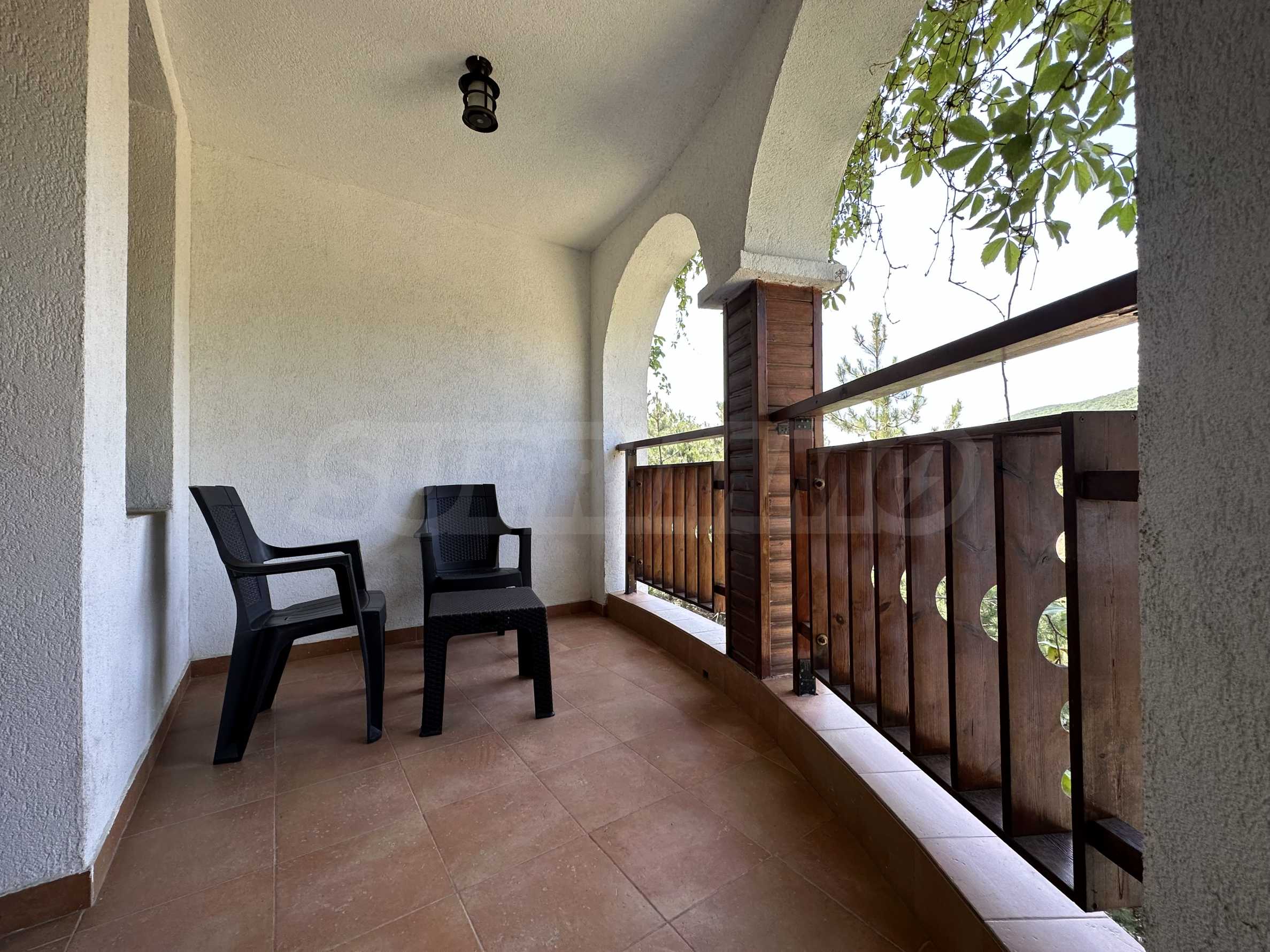 • Dwa tarasy o różnej ekspozycji, z których roztaczają się dwa zupełnie różne, ale równie wspaniałe widoki: jeden na spokojny zielony las Sveti Vlas, a drugi na błękit morza i basen kompleksu.