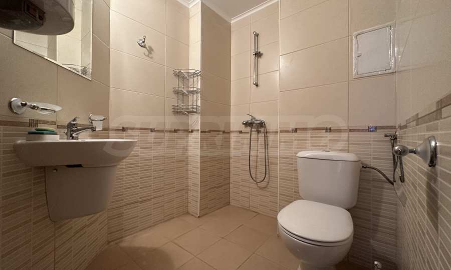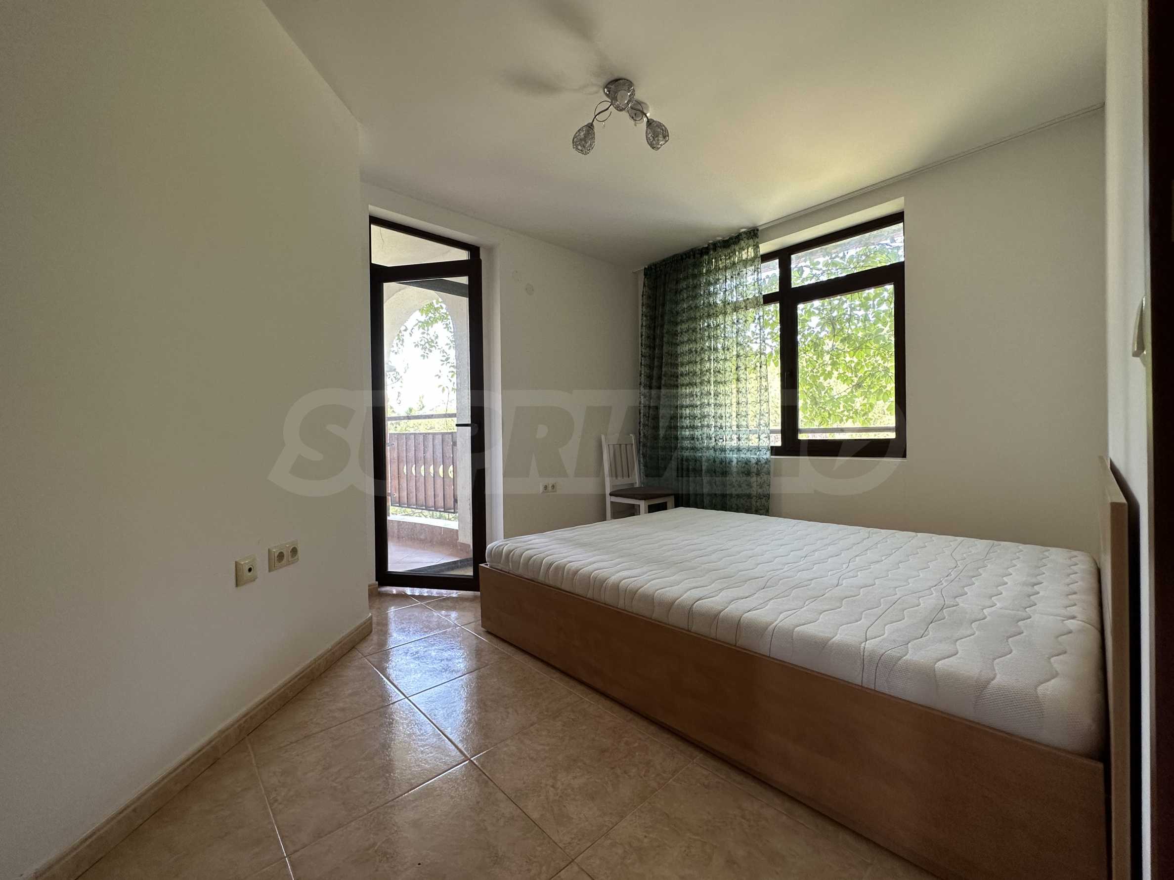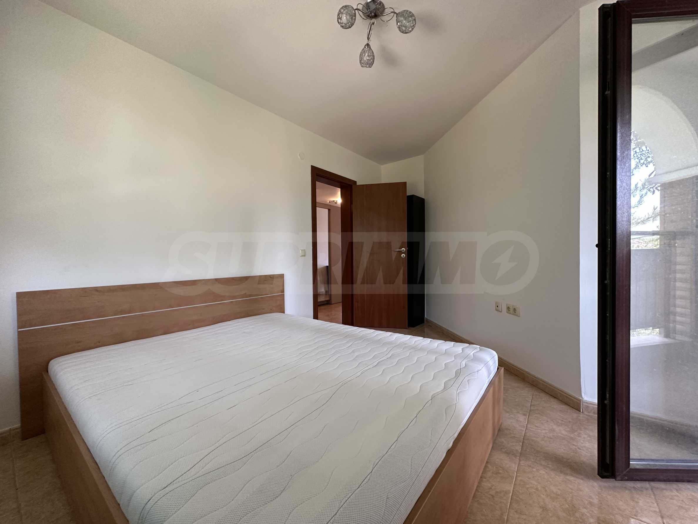 Prezentujemy komfortowo umeblowany apartament z dwiema sypialniami w popularnym nadmorskim kompleksie w zielonej i spokojnej części miasta Święty Włas, zaledwie 350 metrów od plaży. Nieruchomość nadaje się zarówno do użytku prywatnego, jak i jako dochodowa inwestycja – kompleks jest wybudowany w stylu turystycznym i posiada wszystkie niezbędne udogodnienia do zamieszkania sezonowego lub całorocznego. Budynek jest częścią prestiżowego kompleksu składającego się z 3 budynków, z pięknymi ogrodami, placem zabaw dla dzieci i basenami każdy.