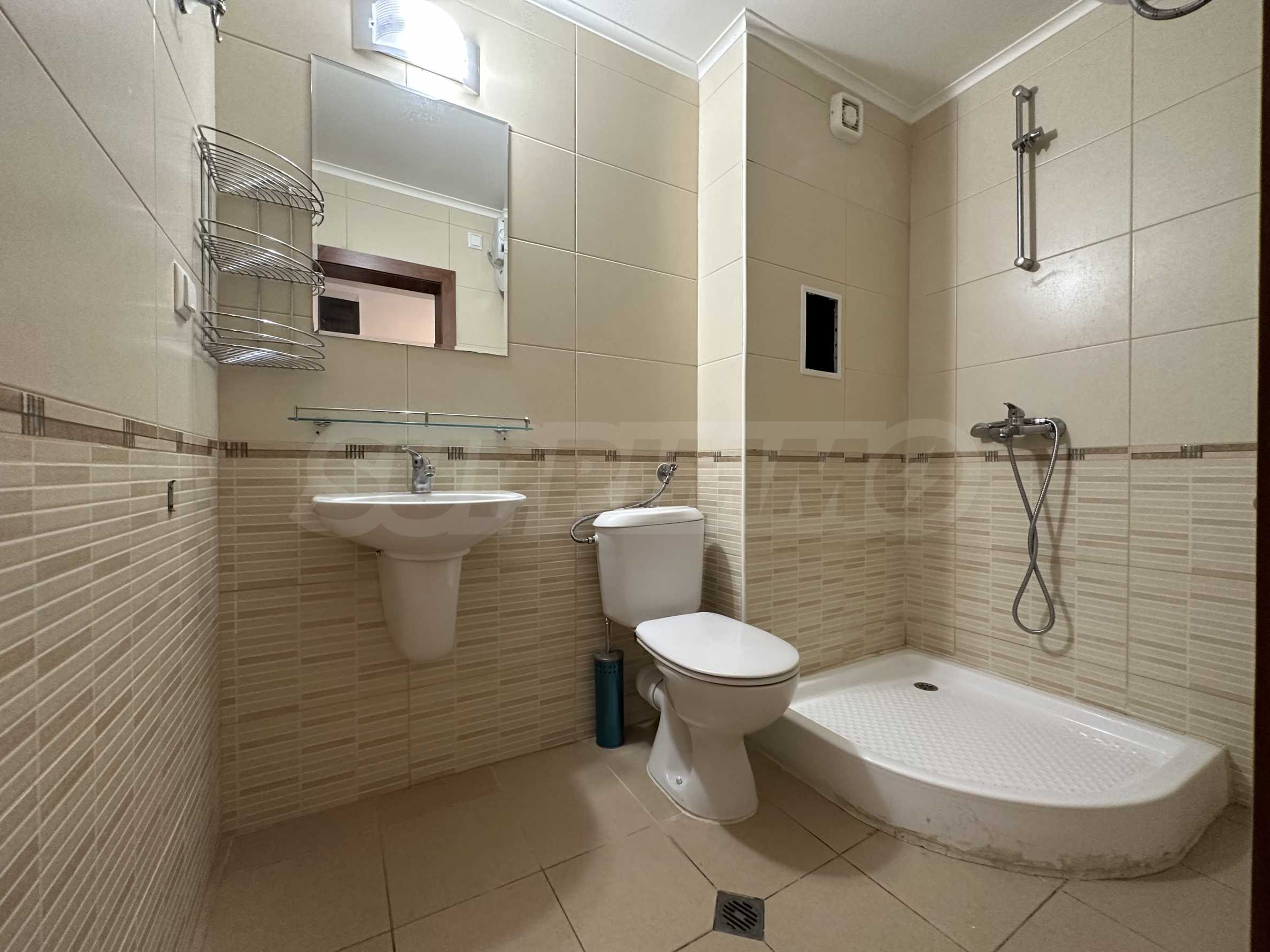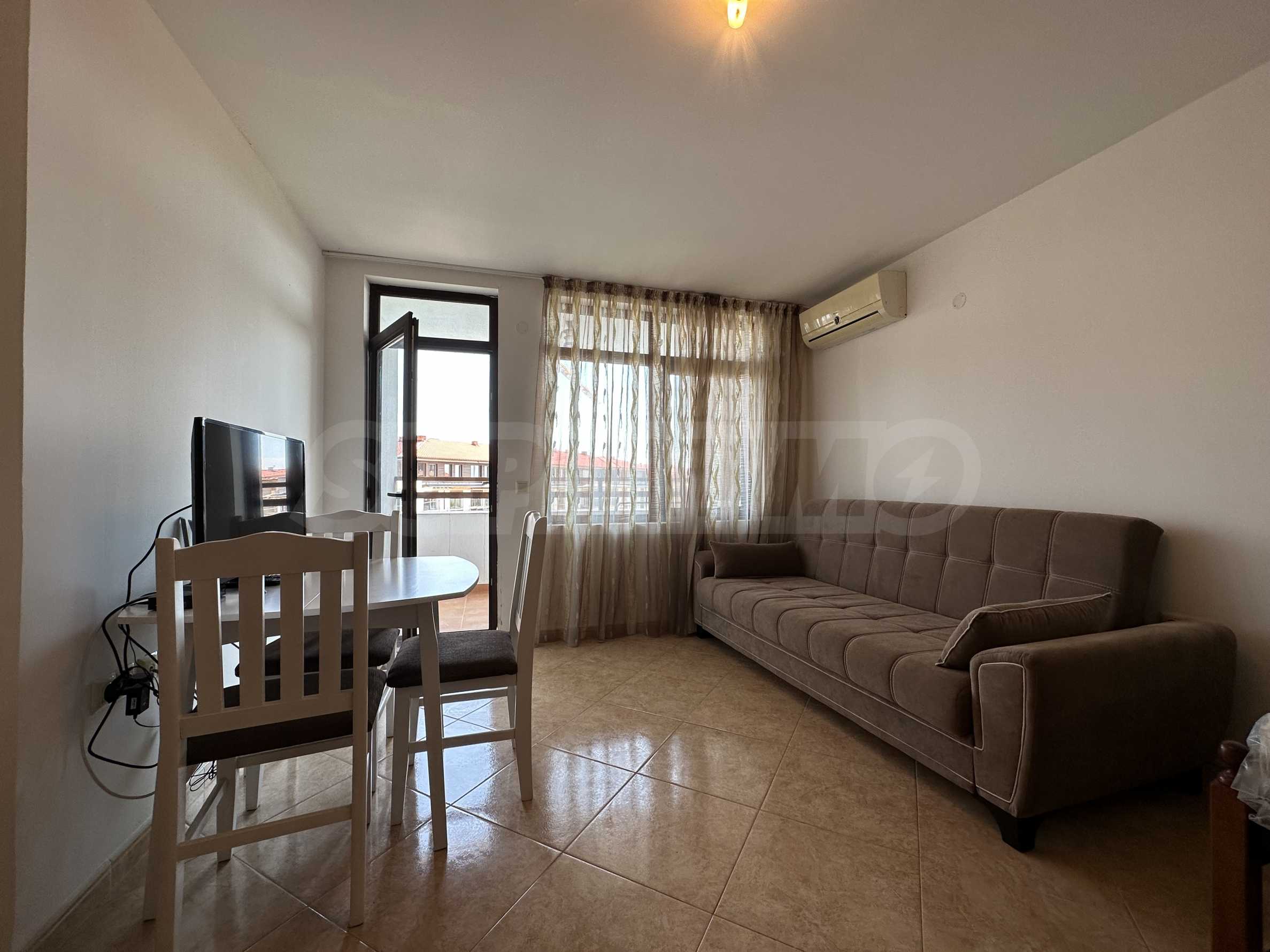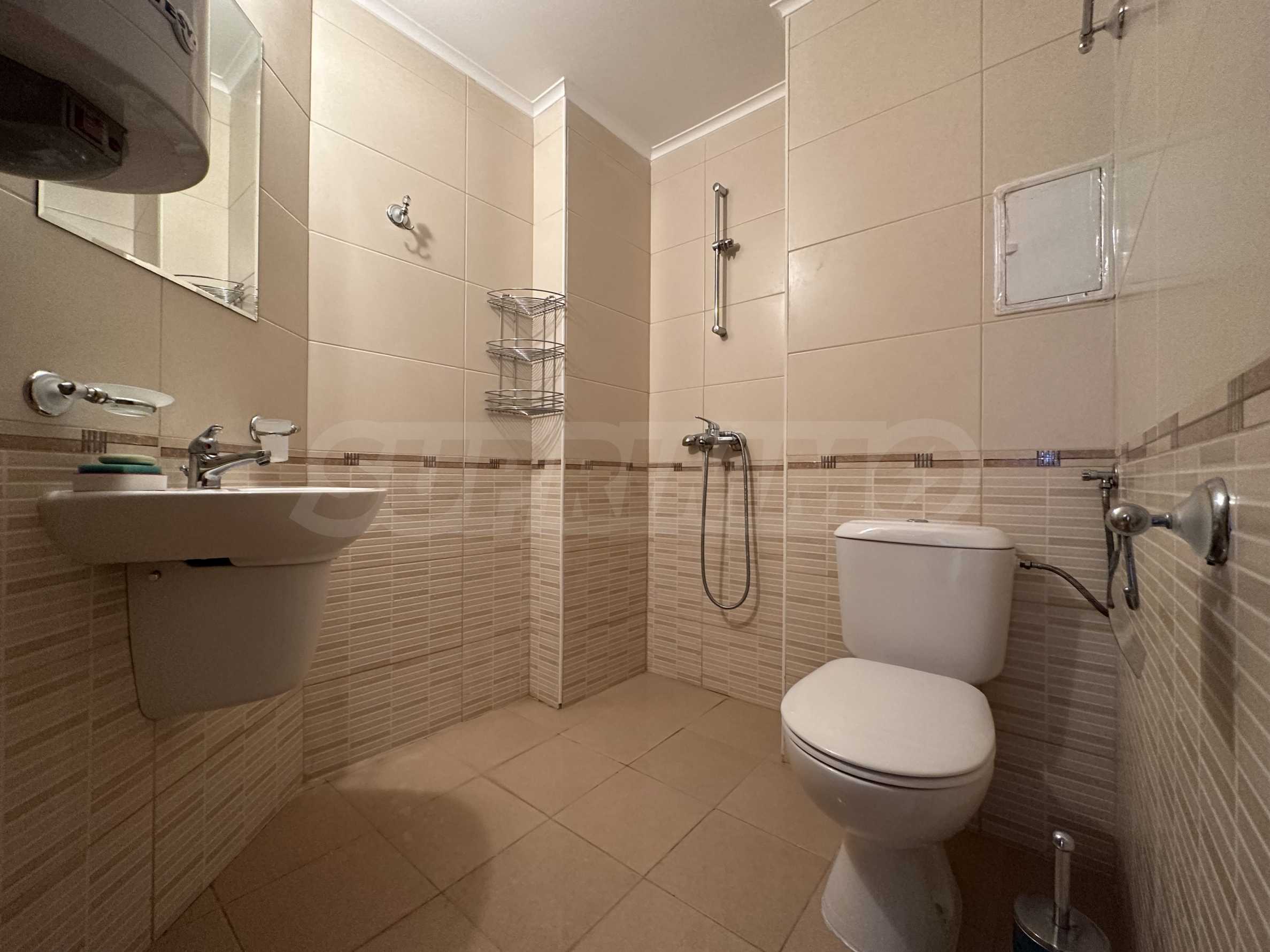 Prezentujemy komfortowo umeblowany apartament z dwiema sypialniami w popularnym nadmorskim kompleksie w zielonej i spokojnej części miasta Święty Włas, zaledwie 350 metrów od plaży. Nieruchomość nadaje się zarówno do użytku prywatnego, jak i jako dochodowa inwestycja – kompleks jest wybudowany w stylu turystycznym i posiada wszystkie niezbędne udogodnienia do zamieszkania sezonowego lub całorocznego. Budynek jest częścią prestiżowego kompleksu składającego się z 3 budynków, z pięknymi ogrodami, placem zabaw dla dzieci i basenami każdy.