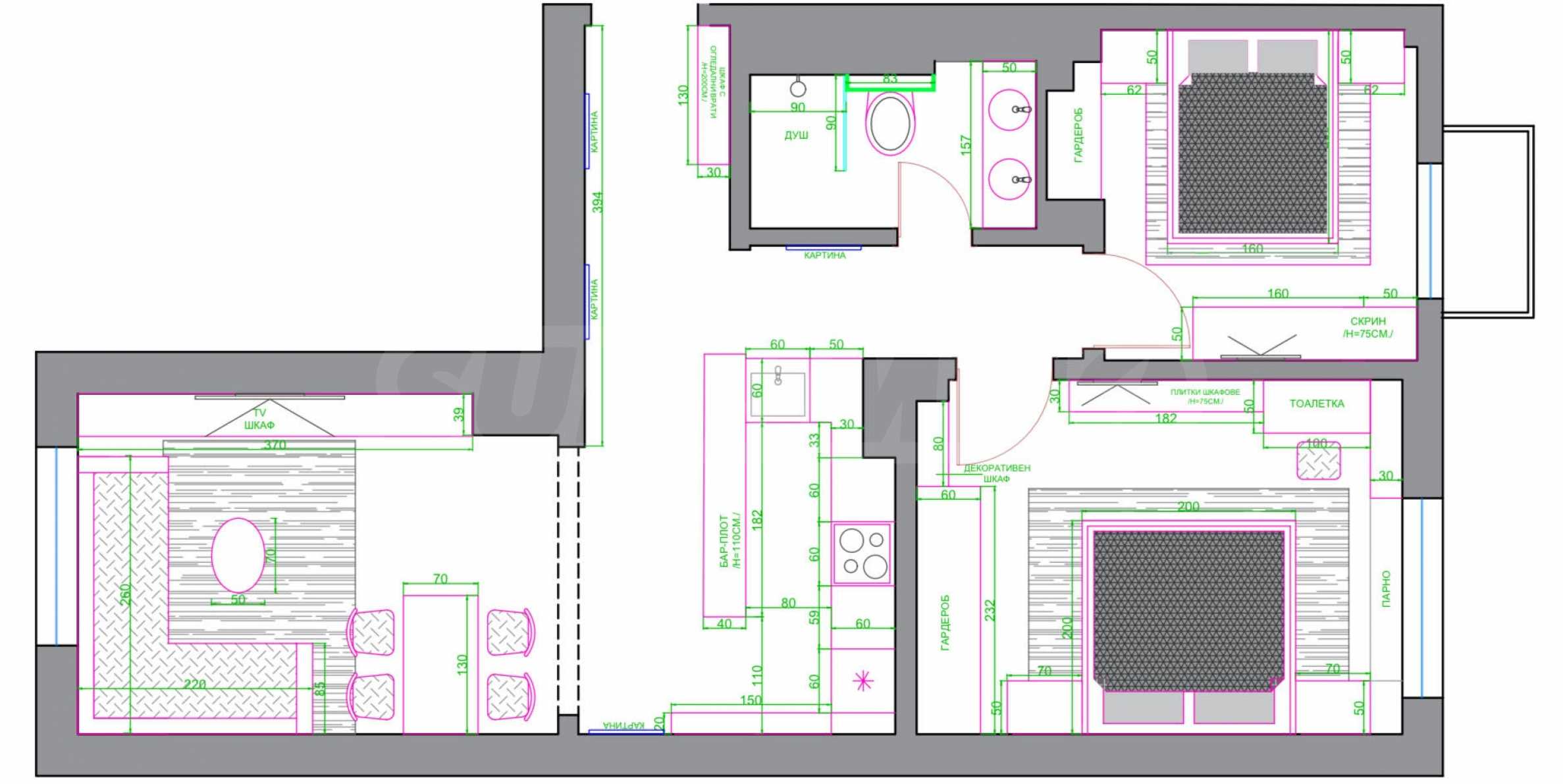 Prezentujemy Państwu funkcjonalne mieszkanie z jedną sypialnią, przekształcone w mieszkanie trzypokojowe, położone w bliskim sąsiedztwie stacji metra "Opalchenska" i centrum handlowego Mall Sofia.