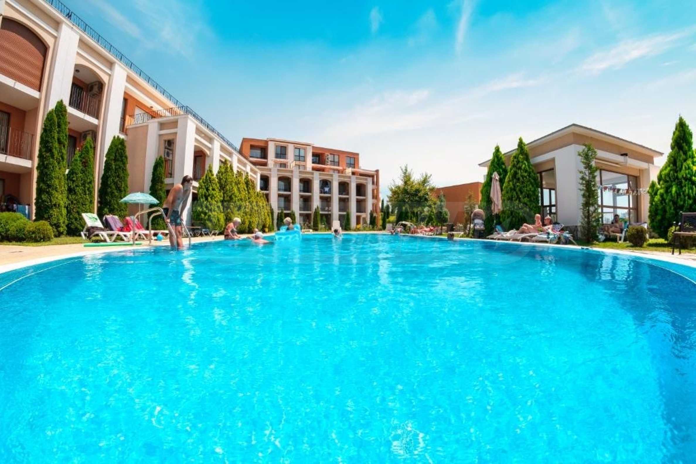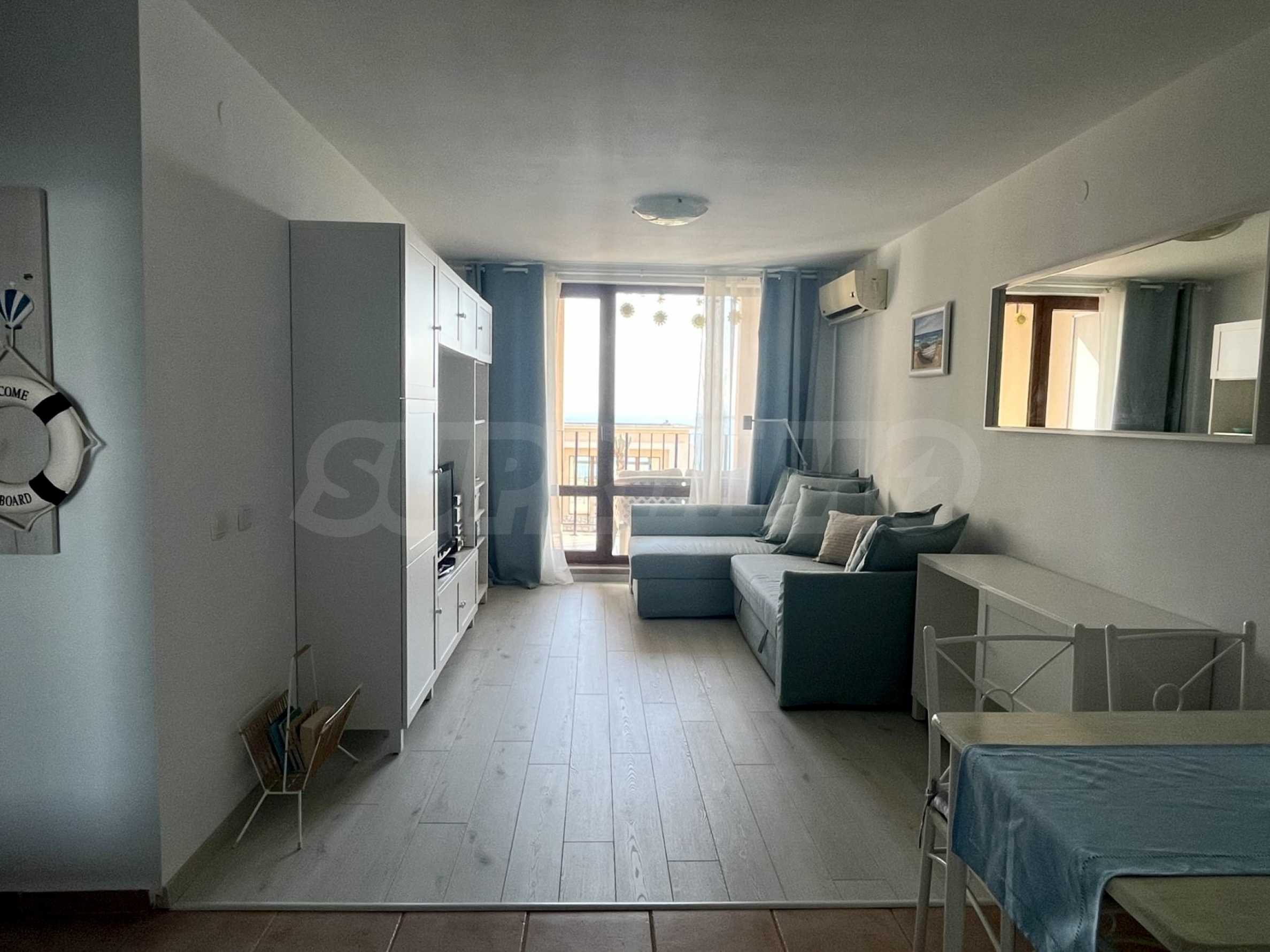 Oferujemy na sprzedaż umeblowane studio z widokiem na całą zatokę, w prestiżowym kompleksie pomiędzy Sveti Vlas i Elenite.