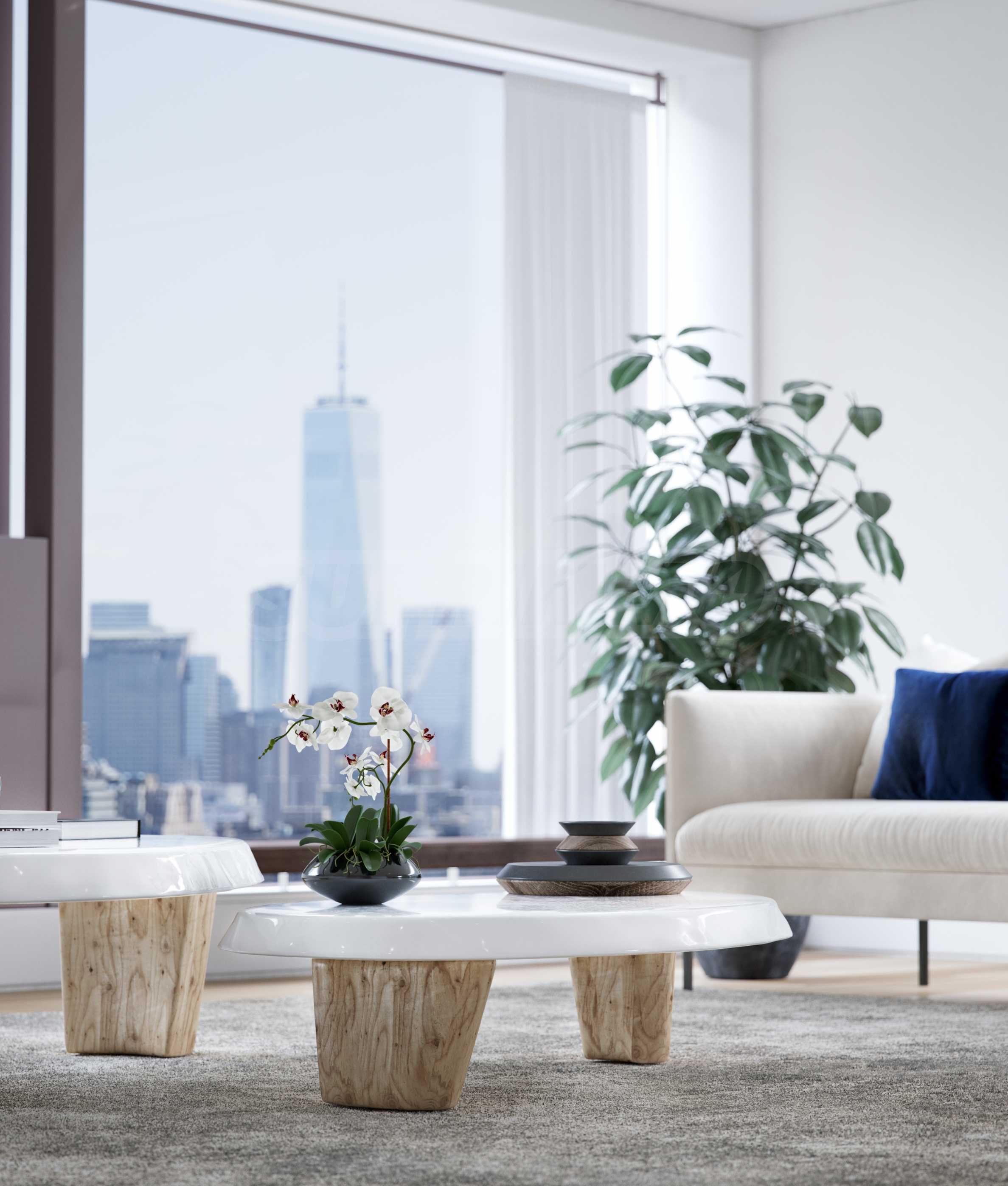 Okna nie tylko rozjaśniają pomieszczenia, ale także tworzą ramy dla widoków miasta niczym żywych obrazów, dzięki czemu panorama staje się częścią codziennego życia.