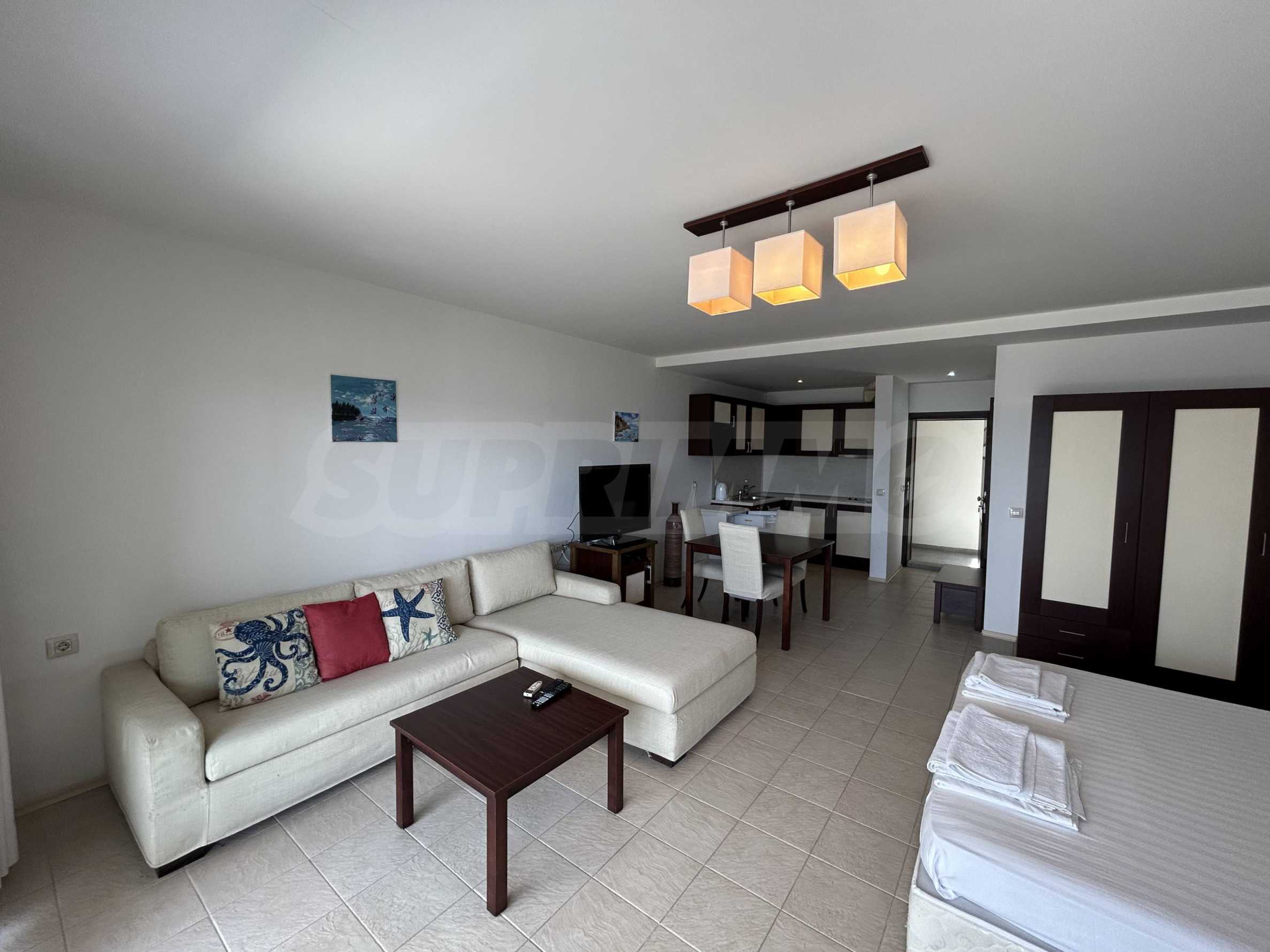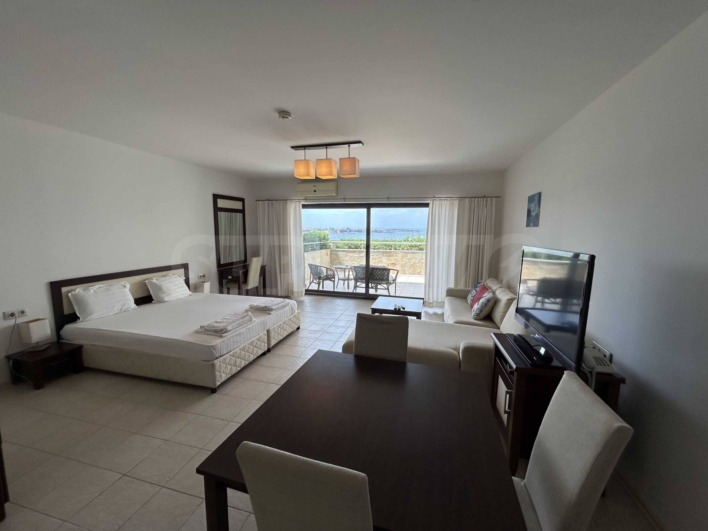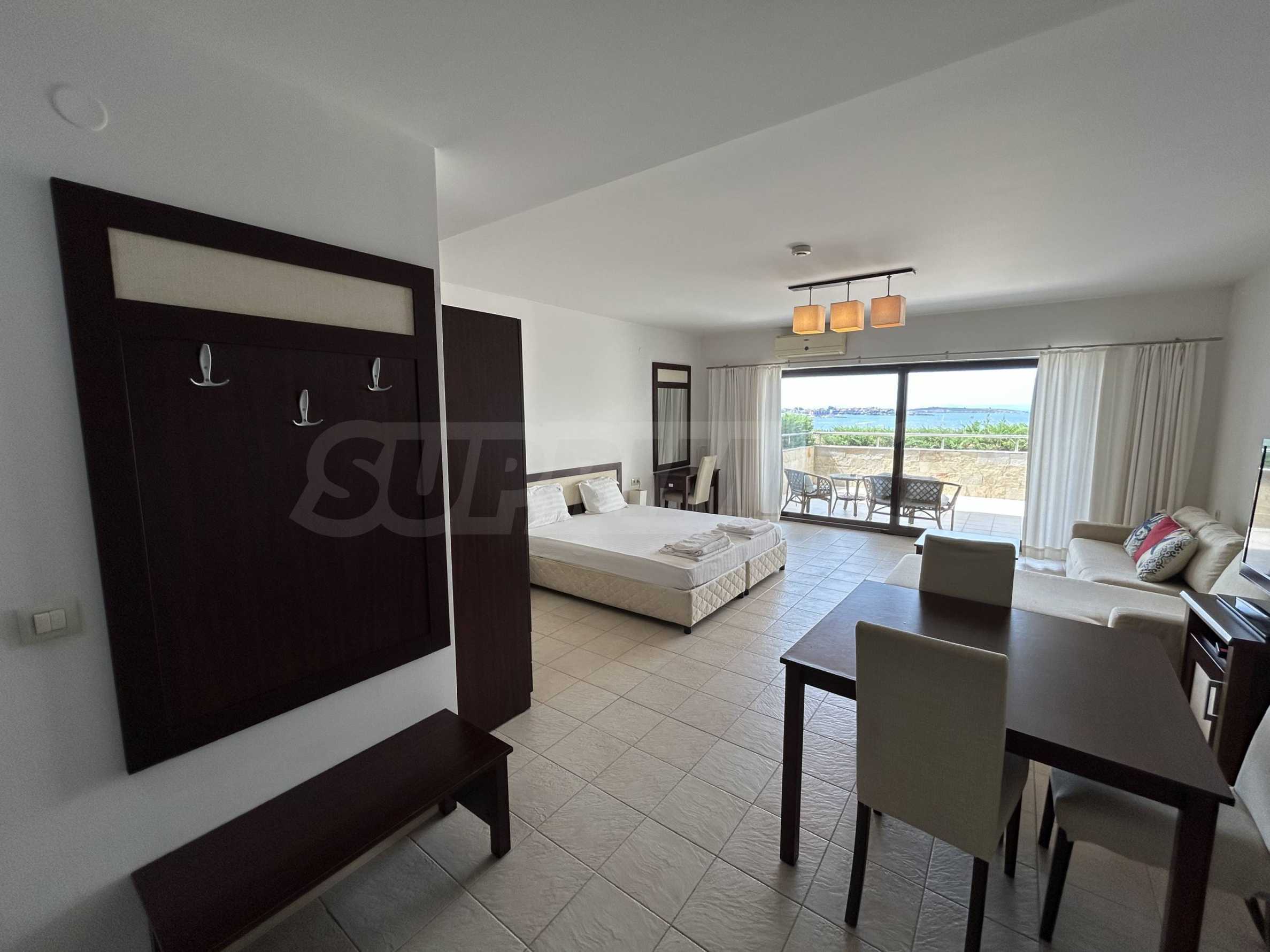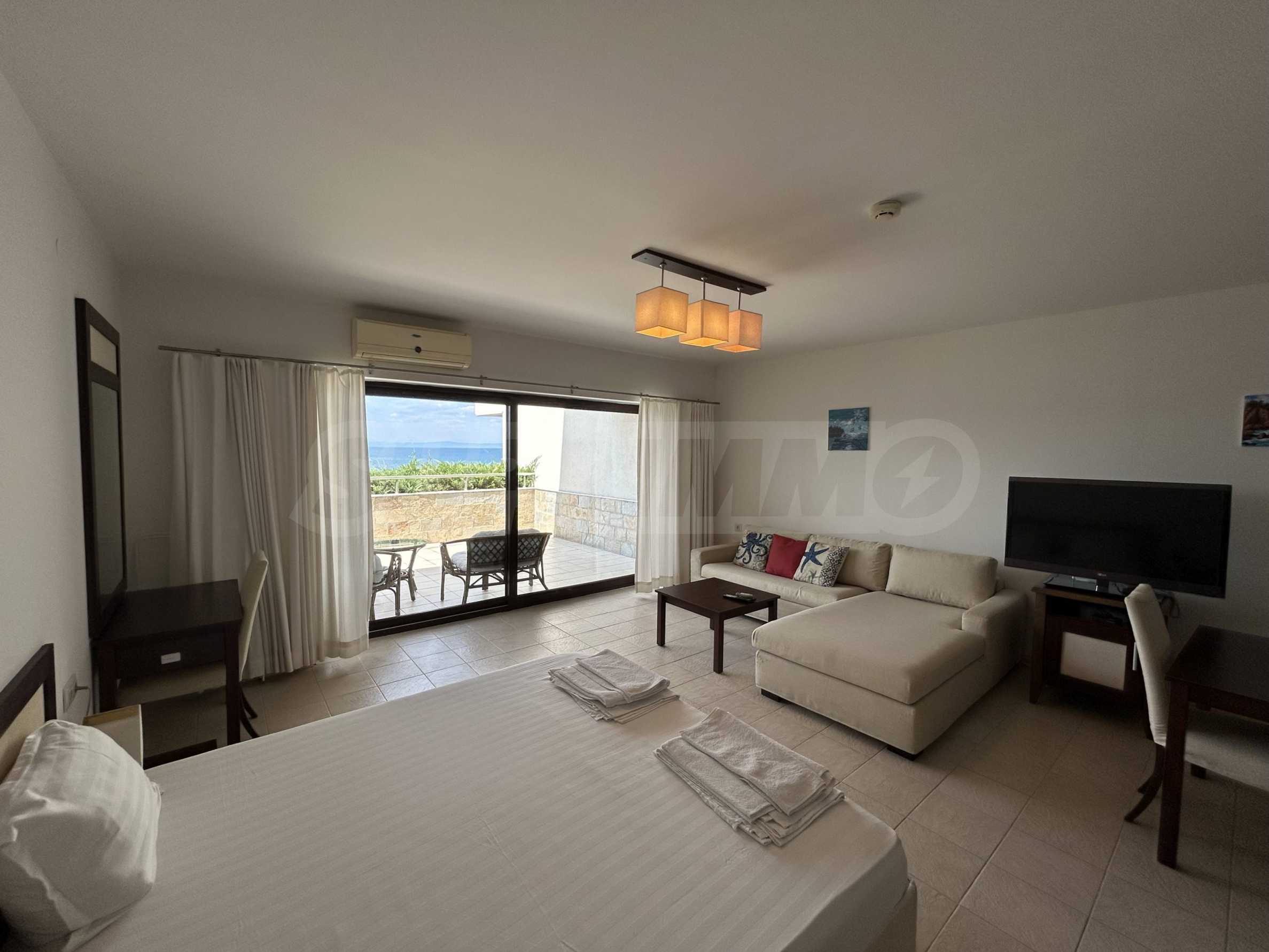 Oferujemy na sprzedaż przestronne, jednopokojowe mieszkanie z widokiem na morze, zlokalizowane w pierwszym rzędzie zabudowy w Sozopolu.