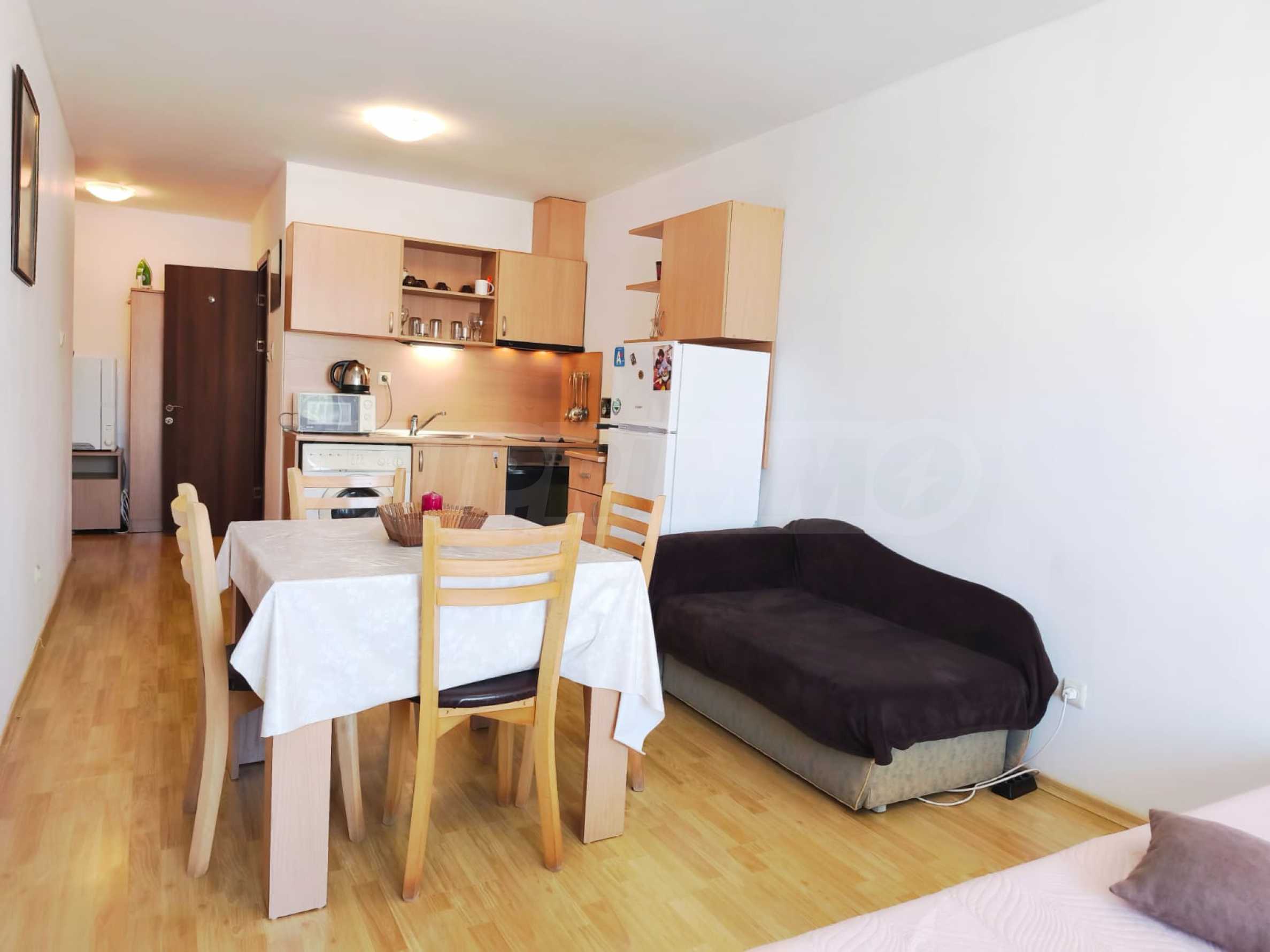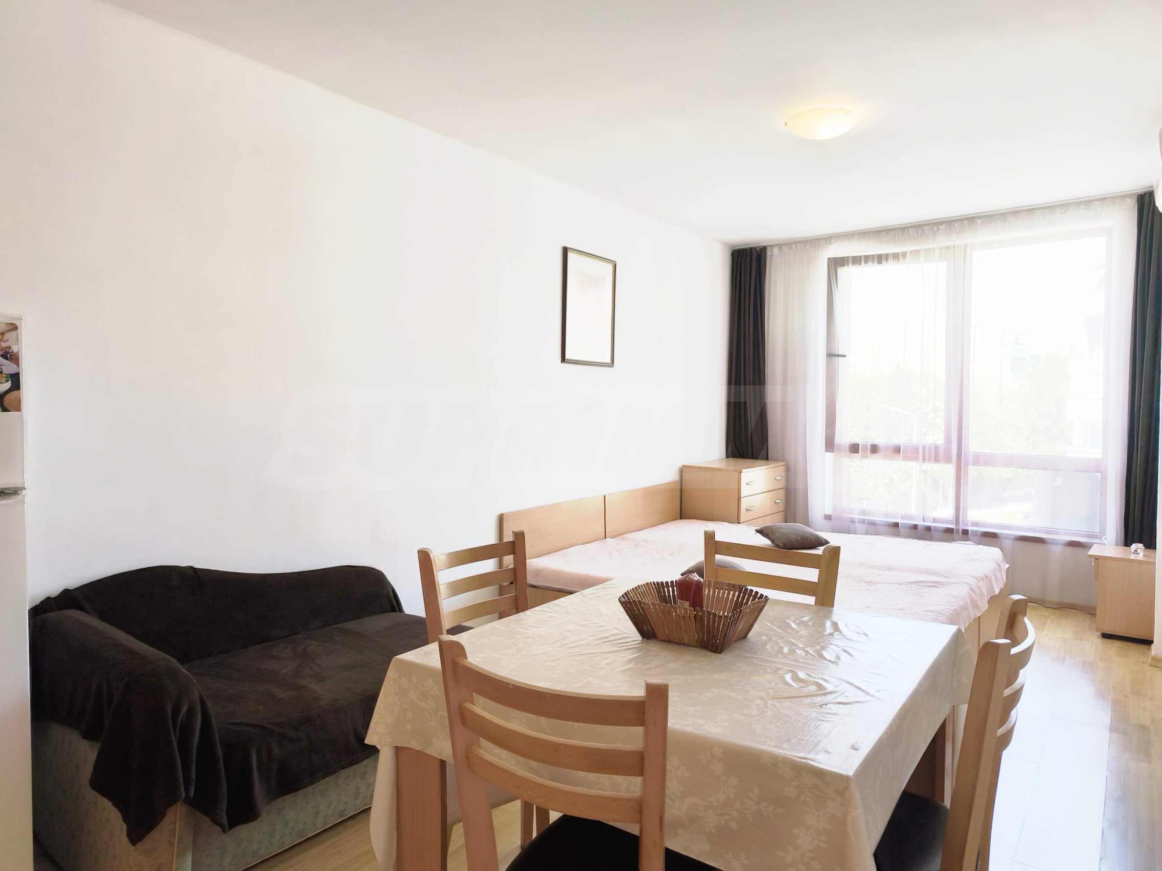 Oferujemy na sprzedaż umeblowane studio w atrakcyjnym kompleksie z udogodnieniami, położonym naprzeciwko South Park i kilka minut od plaży w mieście Nesebyr.
