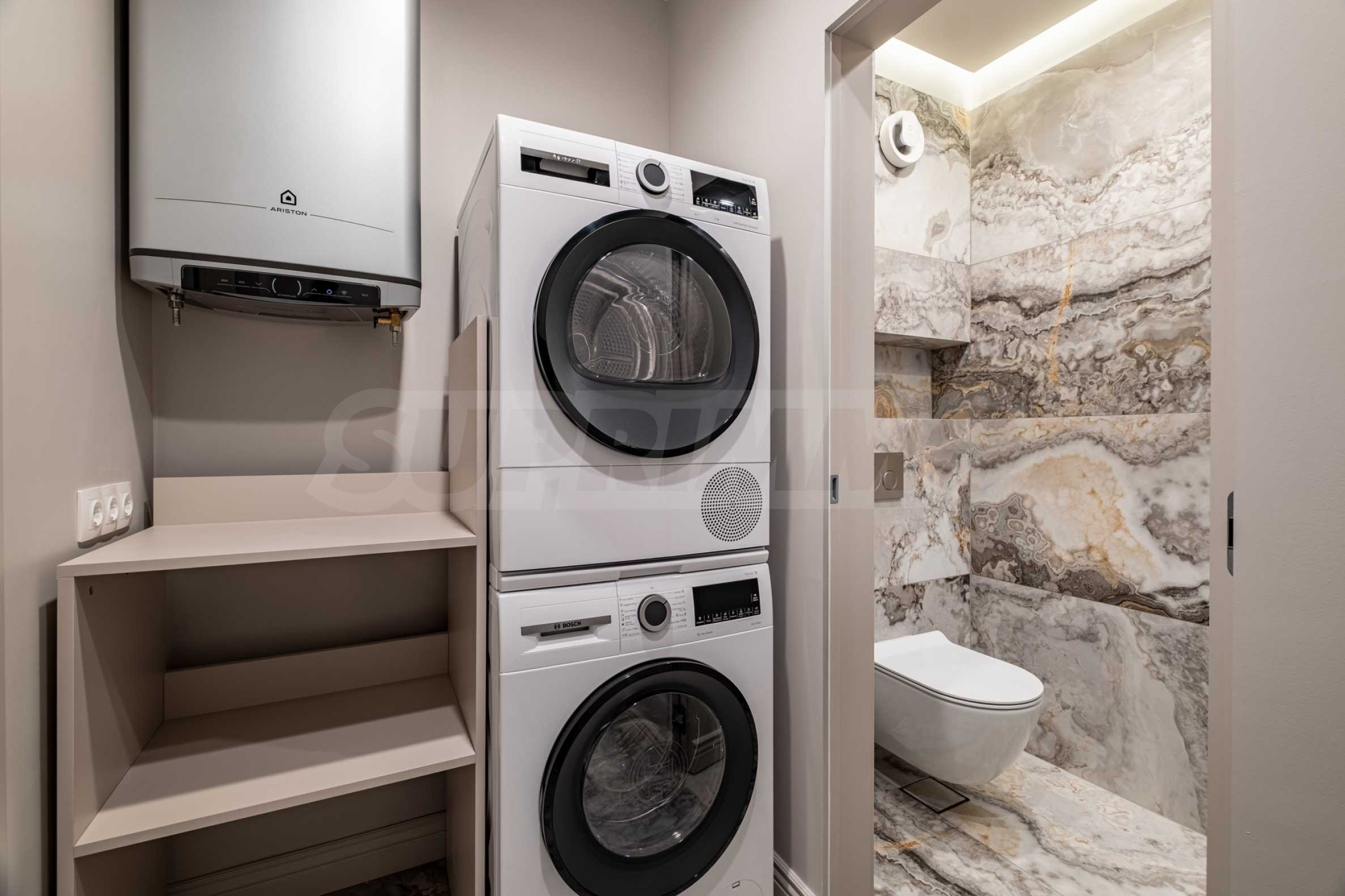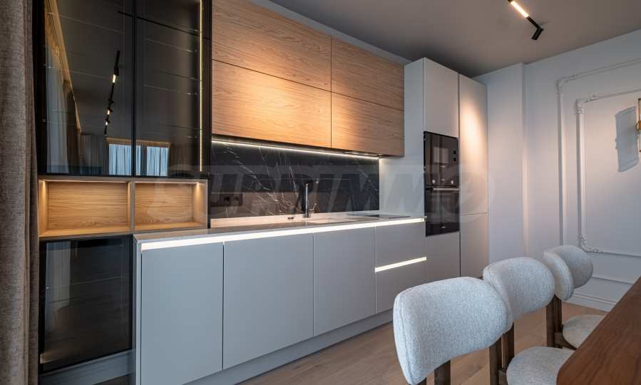 Mieszkanie jest w pełni umeblowane i wyposażone w wysokiej jakości, funkcjonalne meble, które są wliczone w cenę. Wszystkie prace wykończeniowe zostały wykonane z wysokiej jakości materiałów renomowanych firm.