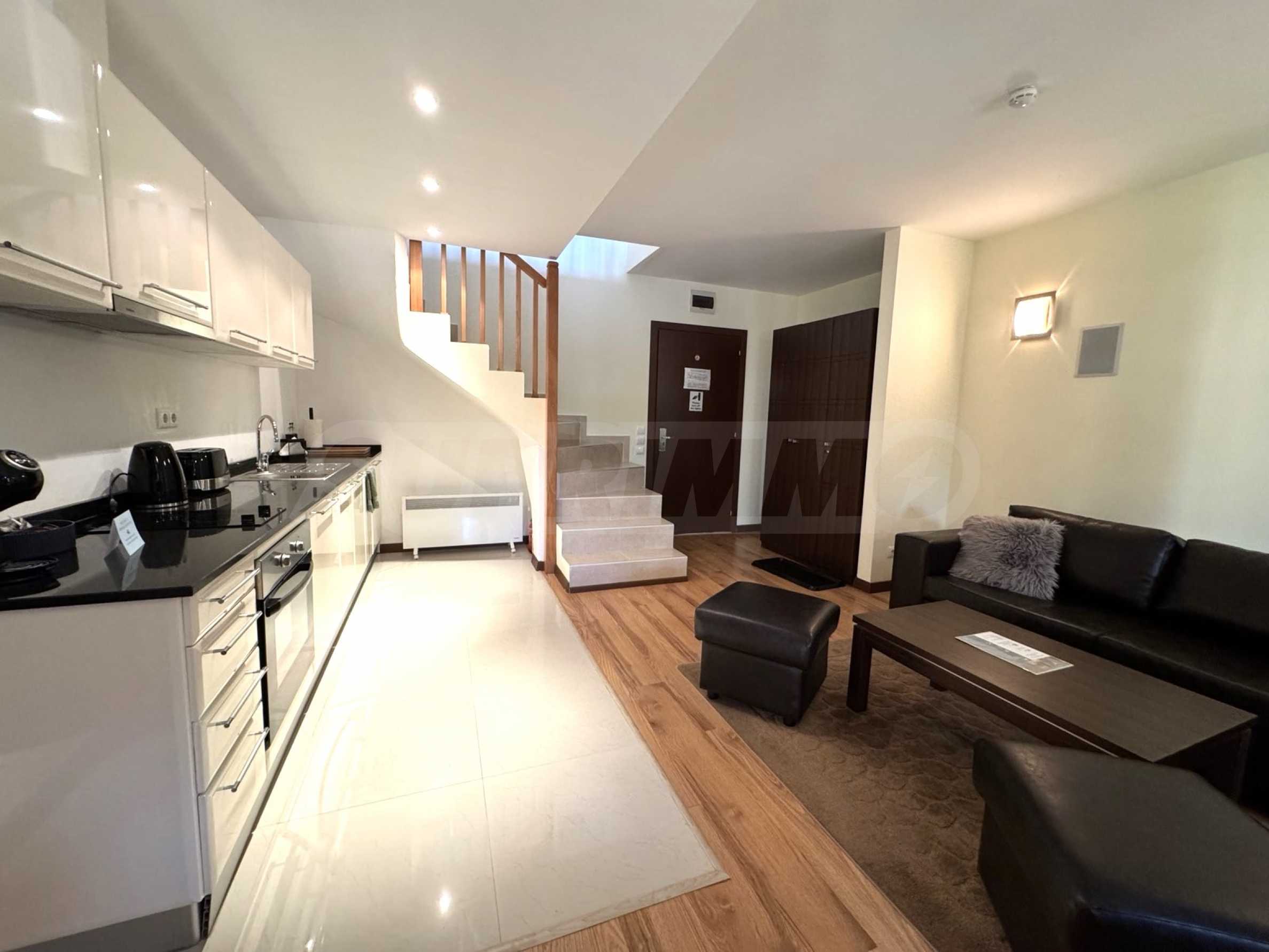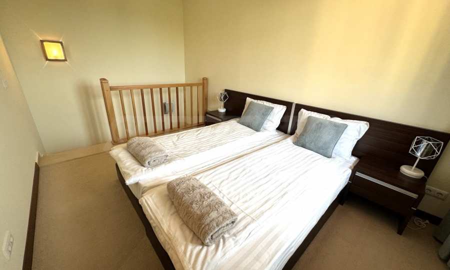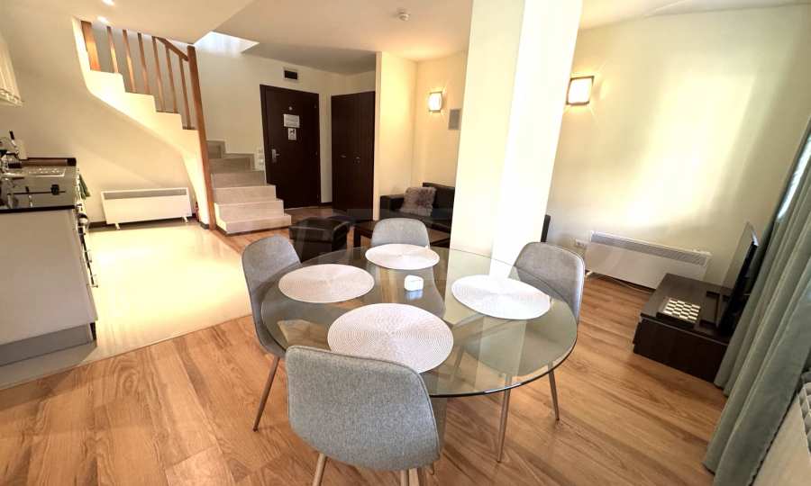 Prezentujemy w pełni umeblowany apartament typu maisonette, położony w ogrodzonym kompleksie z udogodnieniami, tuż obok pola golfowego „Pirin Golf and Country Club”, w malowniczej dolinie Razłog, pomiędzy górami Riła, Pirin i Rodopy.