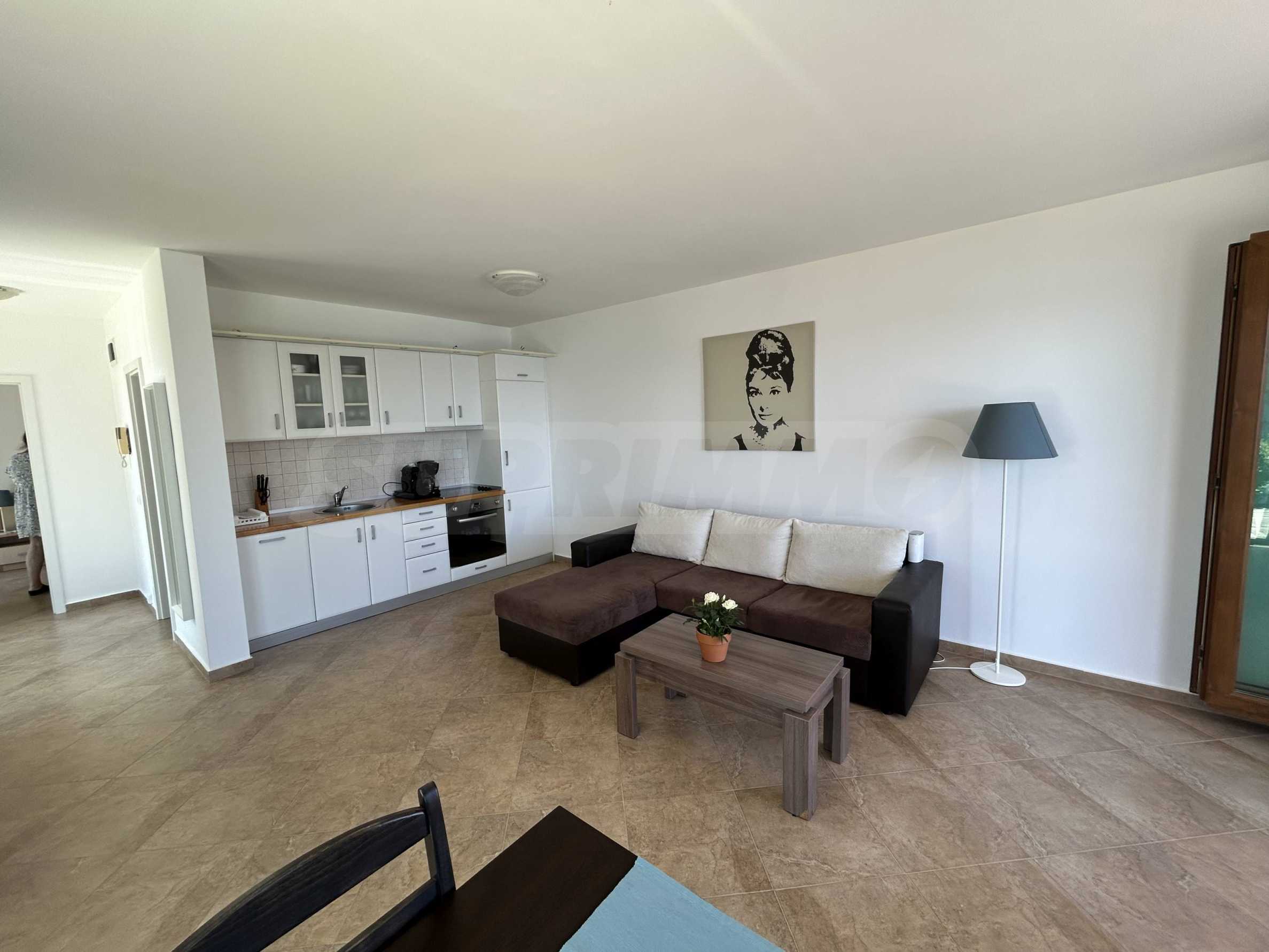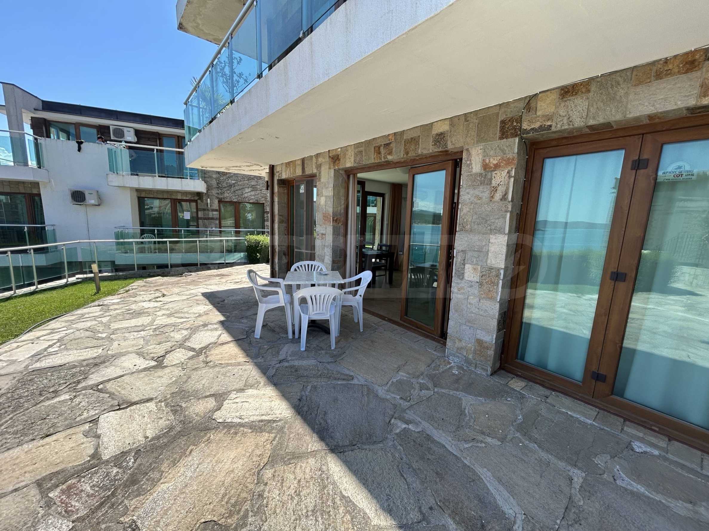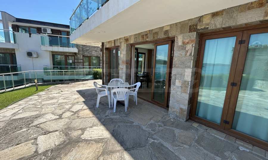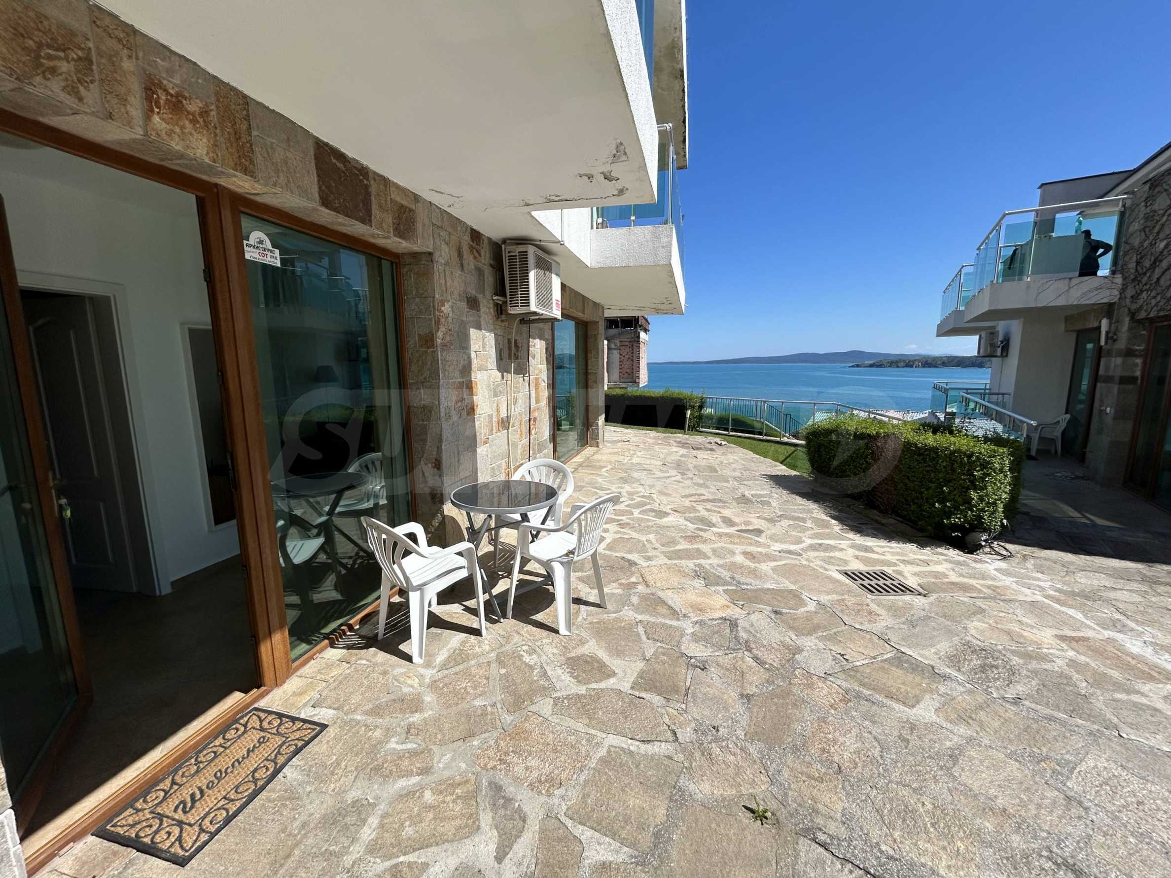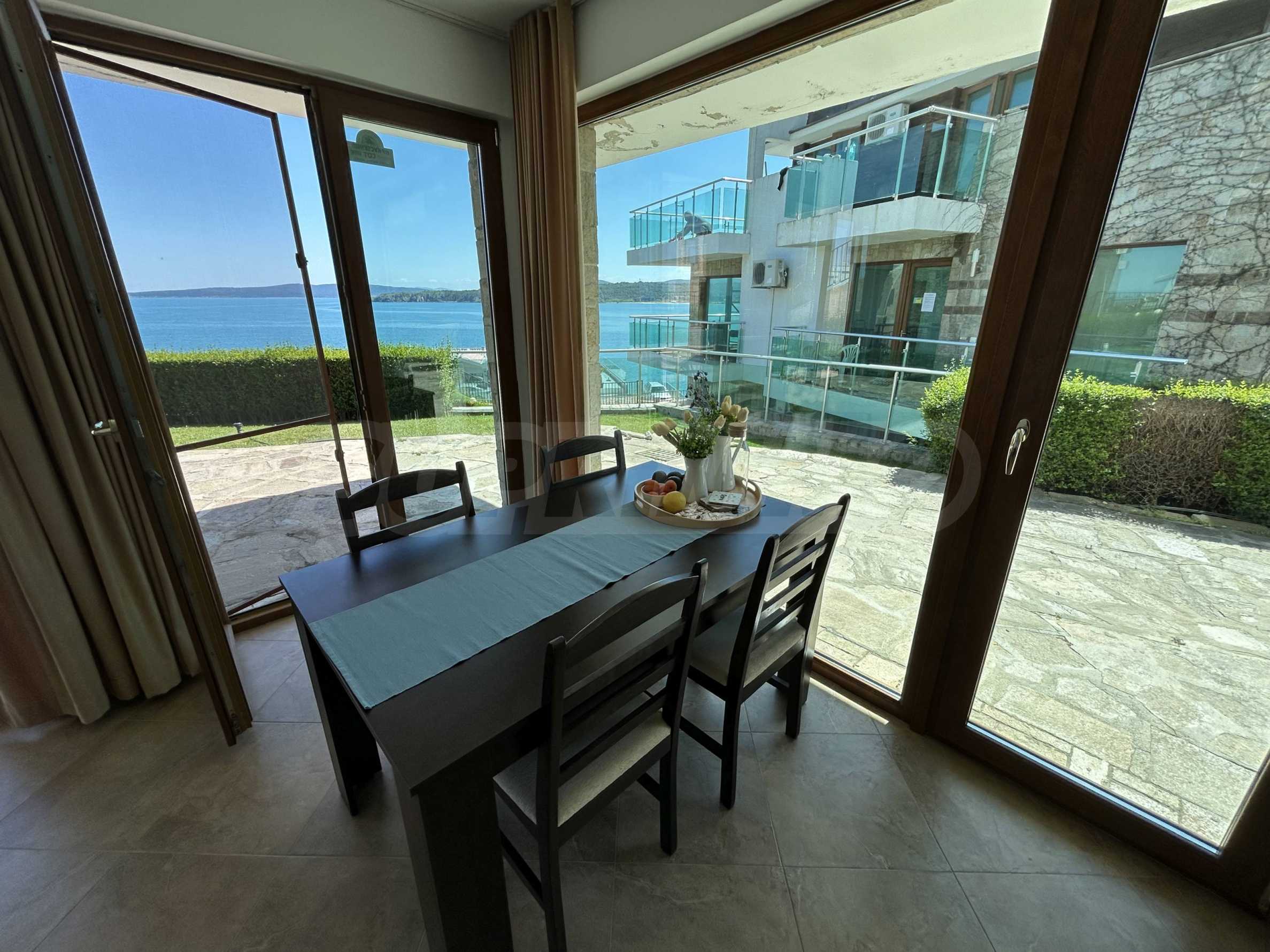 Oferujemy na sprzedaż jasne i przestronne mieszkanie z jedną sypialnią i pięknym widokiem na morze, położone w strzeżonym kompleksie na pierwszej linii brzegowej w Sozopolu.