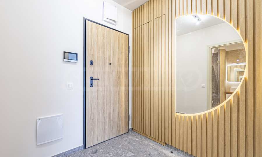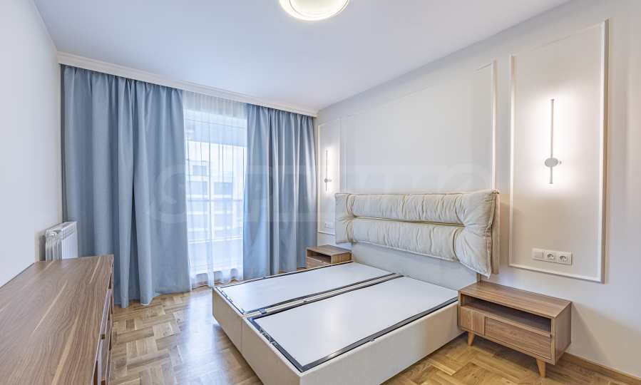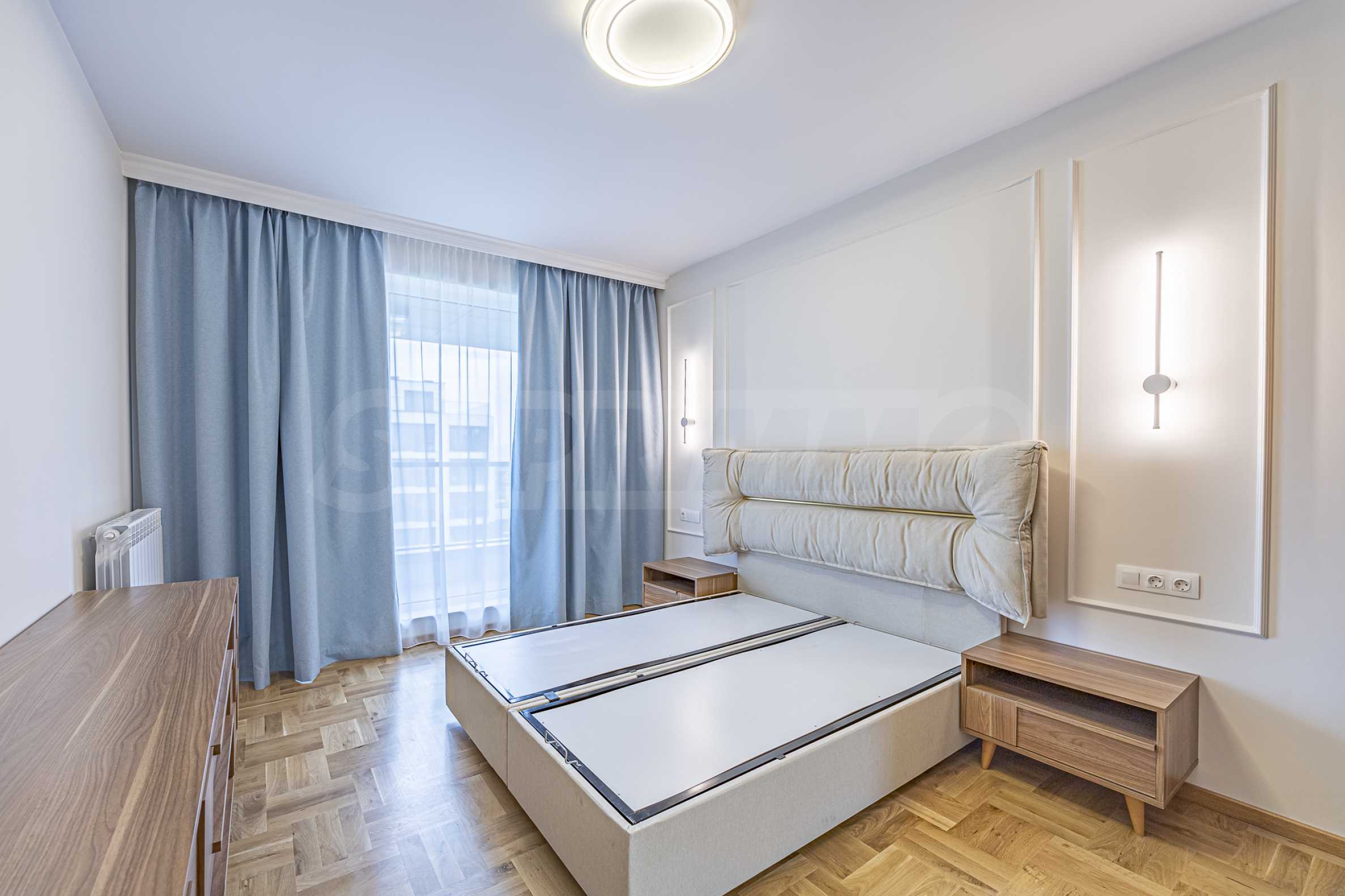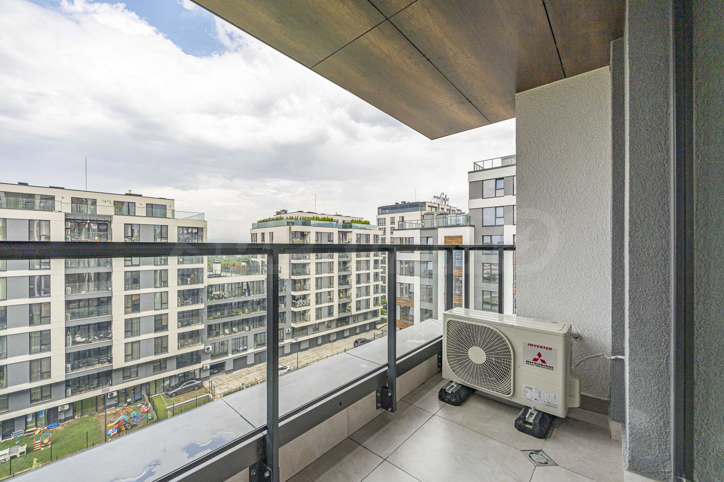 Mieszkanie jest w pełni umeblowane, z nowymi meblami i sprzętem AGD, nigdy nie zamieszkane. Znajduje się na 6. piętrze i oferuje imponujące widoki na Starą Planinę i Park Łowiecki. Posiada balkon typu loggia.