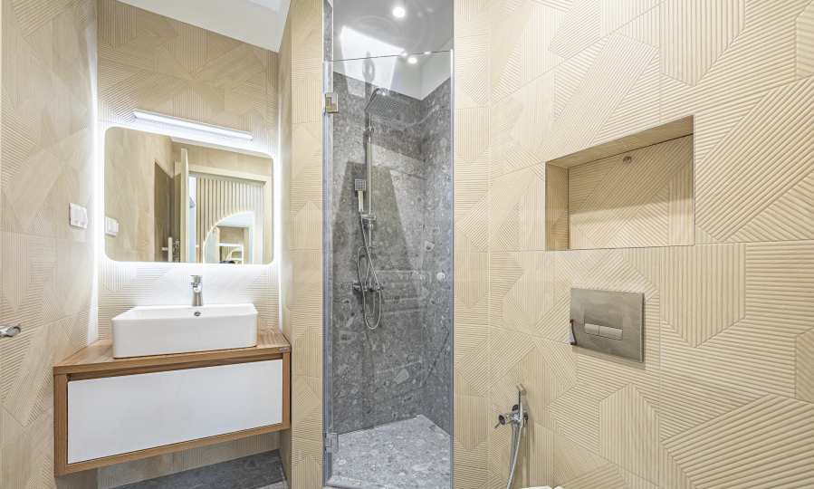 • Podłogi: naturalny parkiet dębowy i włoskie płytki granitowe;