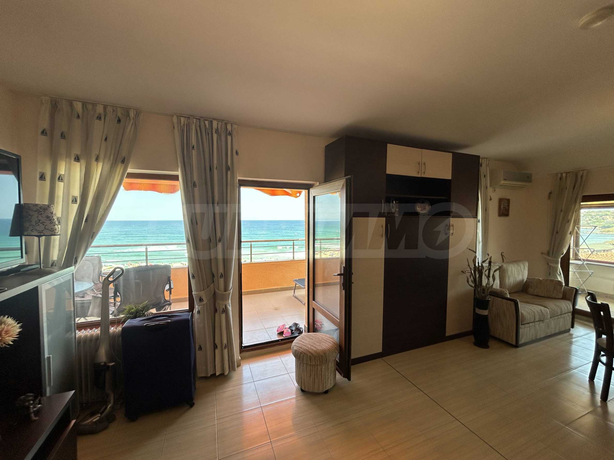 Oferujemy na sprzedaż dwupokojowe mieszkanie z pięknym widokiem na morze, położone tuż przy plaży Harmanite w Sozopolu. W zasięgu spaceru od plaży, sklepów i restauracji.
