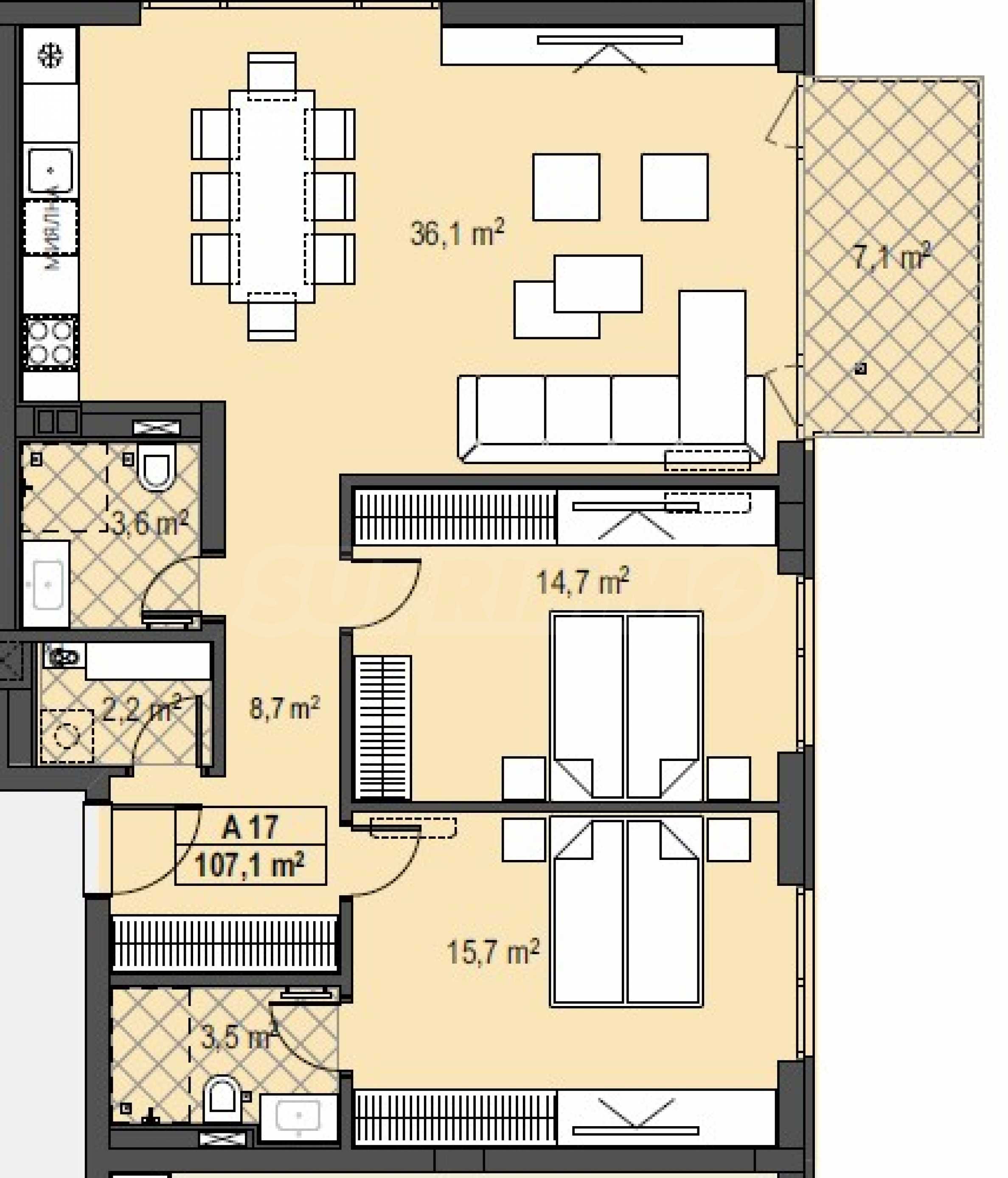 Budynek położony jest w jednym z najbardziej dogodnych miejsc do zamieszkania w Sofii, u podnóża Góry Witosza, a jednocześnie zaledwie 10 minut od centrum stolicy.