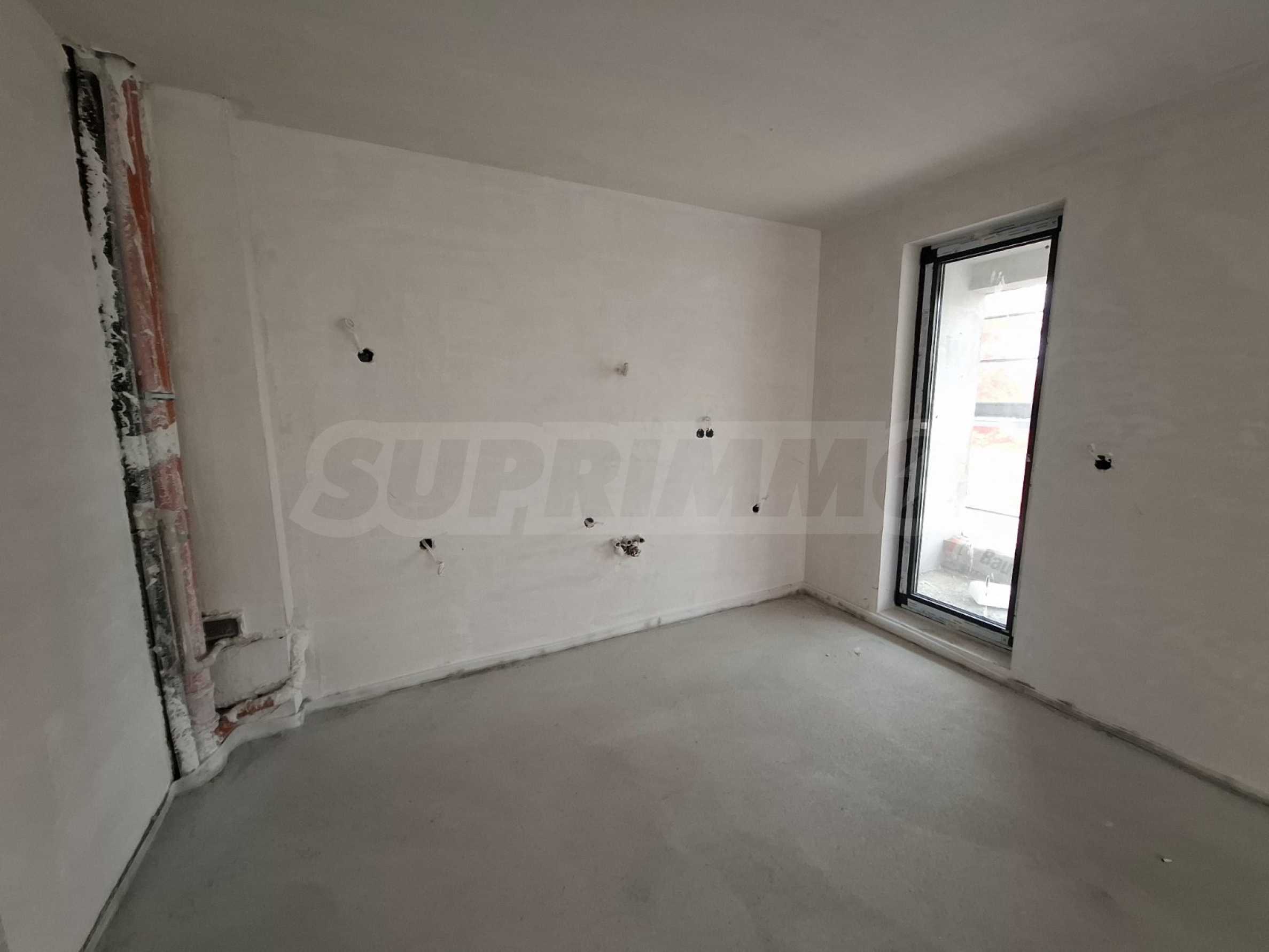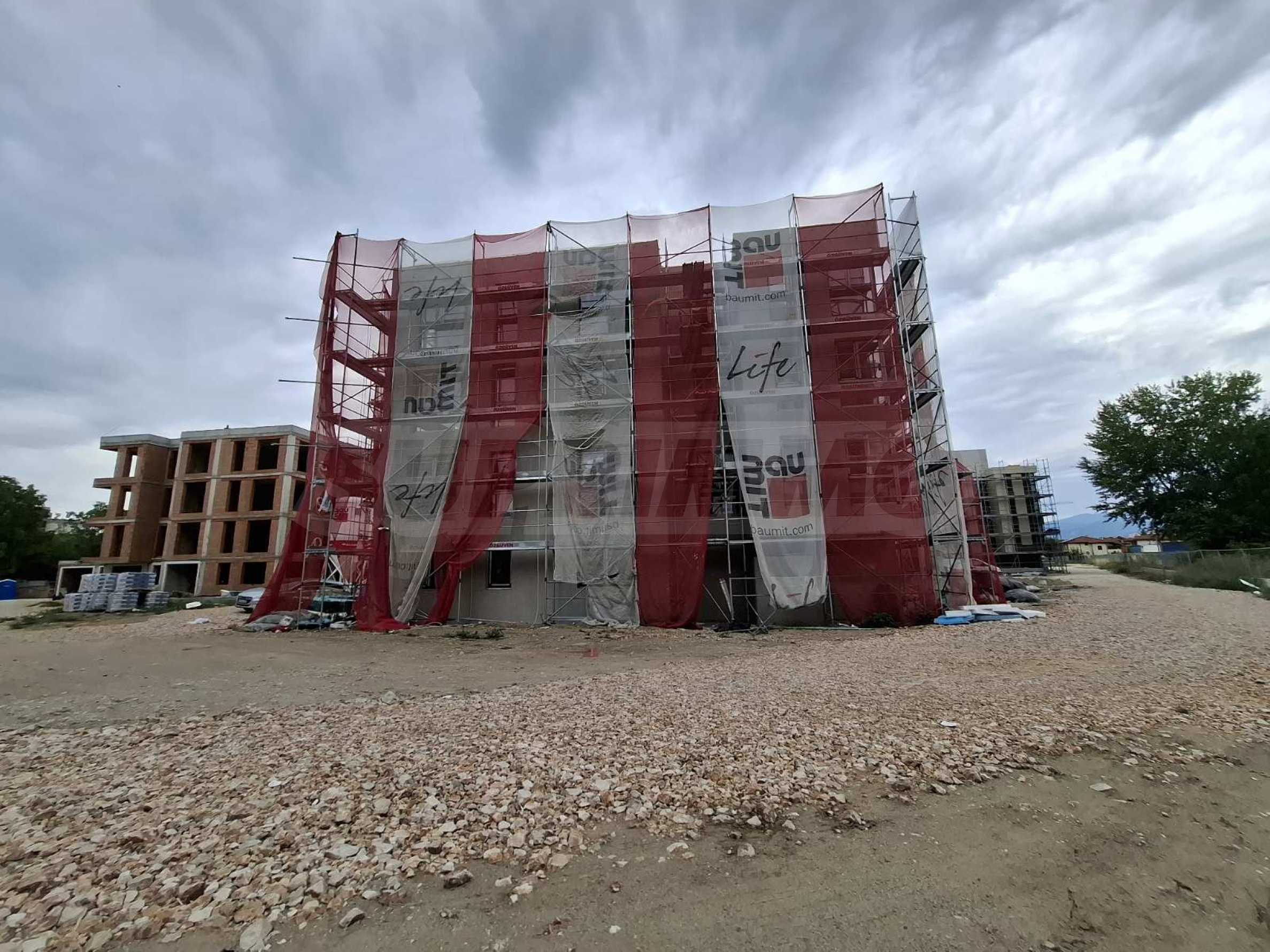 Nieruchomość o powierzchni całkowitej 79,42 m² znajduje się na 2. piętrze i ma ekspozycję północno-zachodnią. Układ obejmuje hol wejściowy z możliwością przerobienia na pralnię, łazienkę, salon z aneksem kuchennym i wyjściem na taras oraz jedną sypialnię. Nieruchomość jest sprzedawana w stanie surowym, zgodnie z bułgarskimi standardami budowlanymi (na szpachlówce i wylewce).