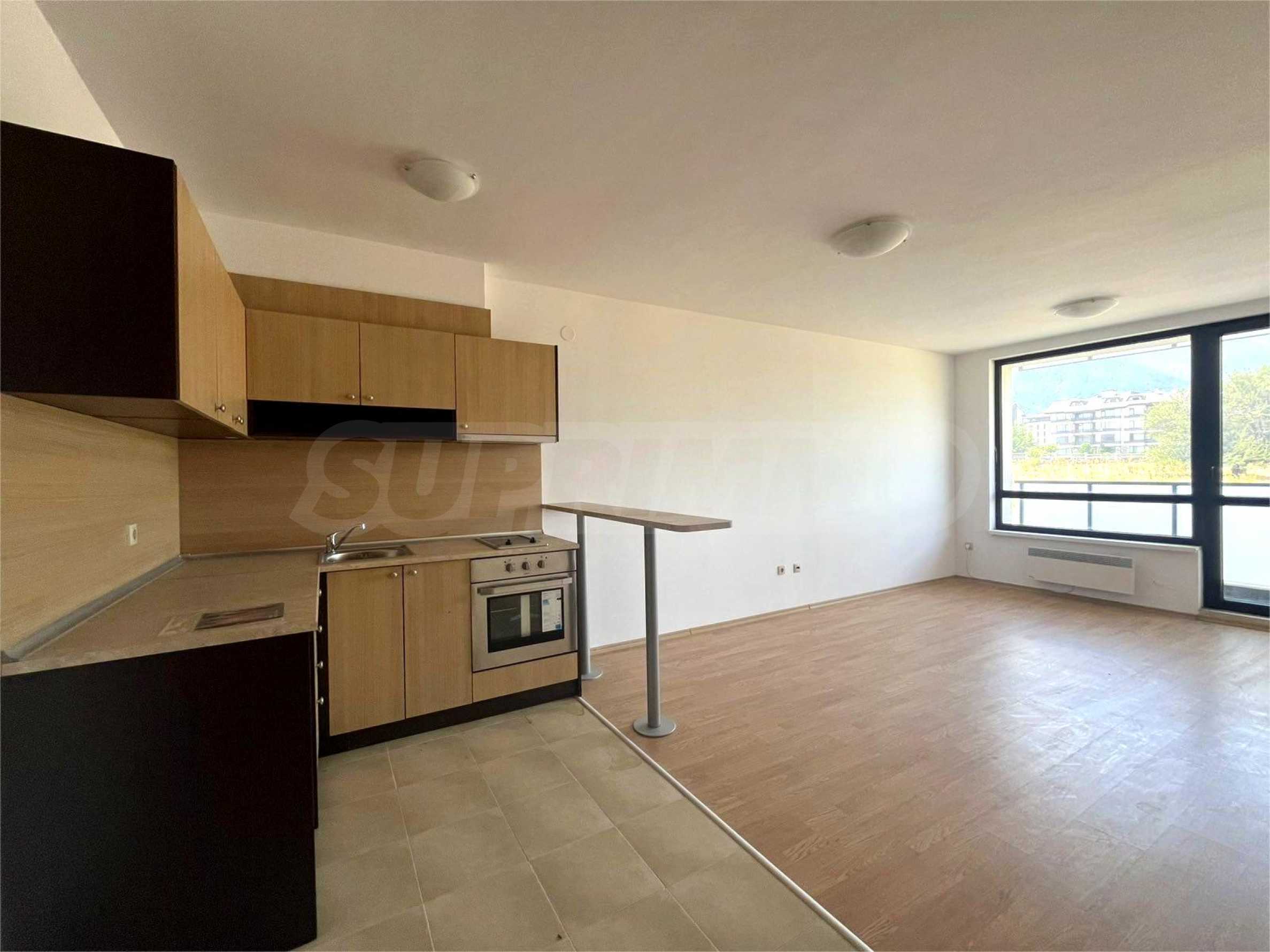 Prezentujemy nieumeblowane mieszkanie z jedną sypialnią, zlokalizowane w ogrodzonym kompleksie „Aspen Heights”, zaledwie kilka minut od Pirin Golf & Country Club i 10 km od ośrodka narciarskiego Bansko.