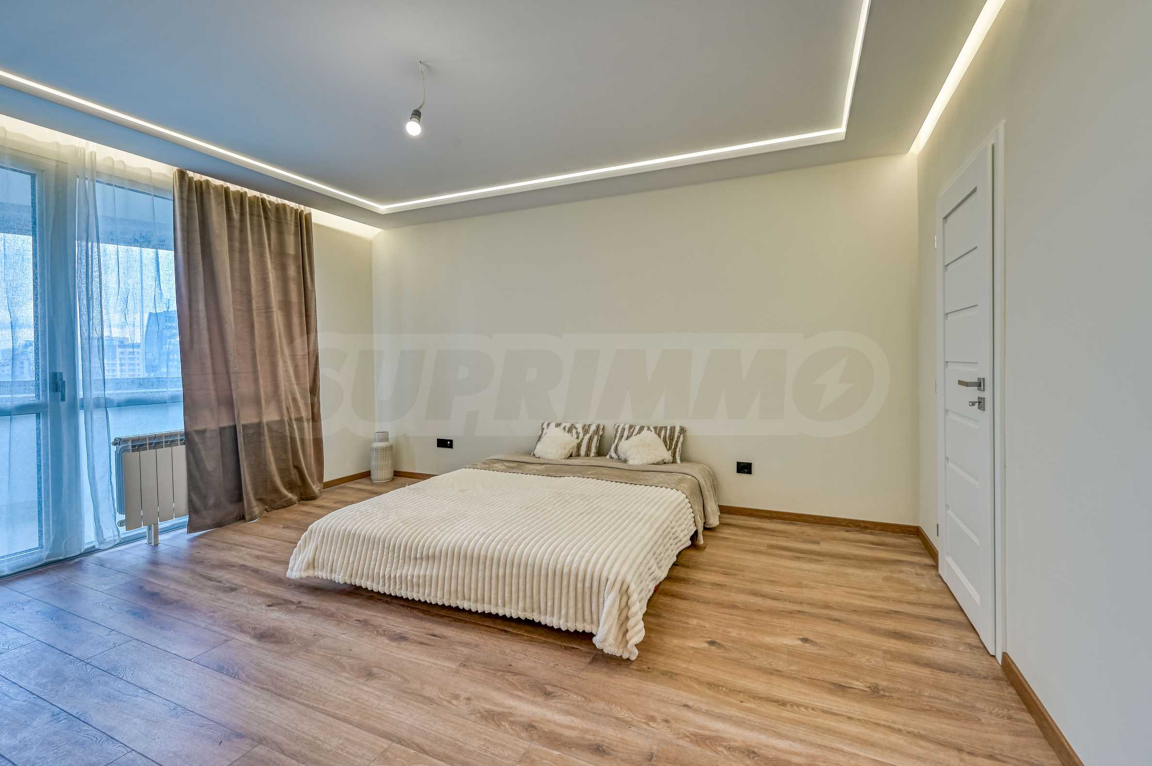 Prezentujemy do wynajęcia nowe, eleganckie mieszkanie z dwiema sypialniami w prestiżowym budynku o nowoczesnej architekturze i reprezentacyjnym lobby, zlokalizowanym przy Bulgaria Blvd.