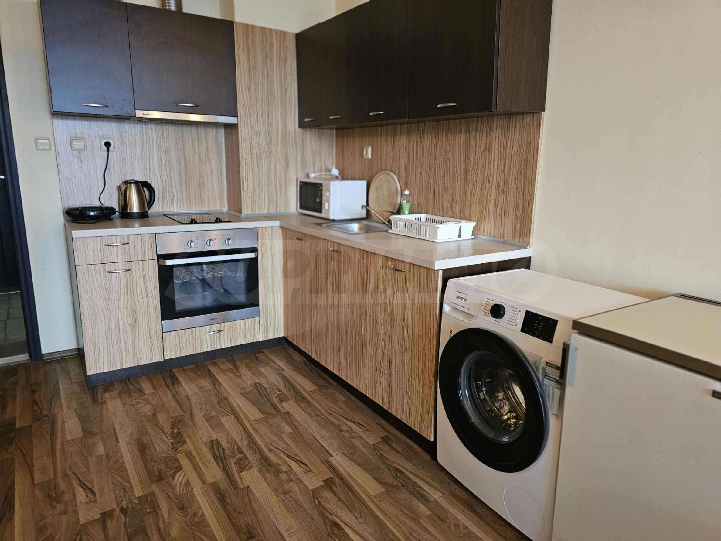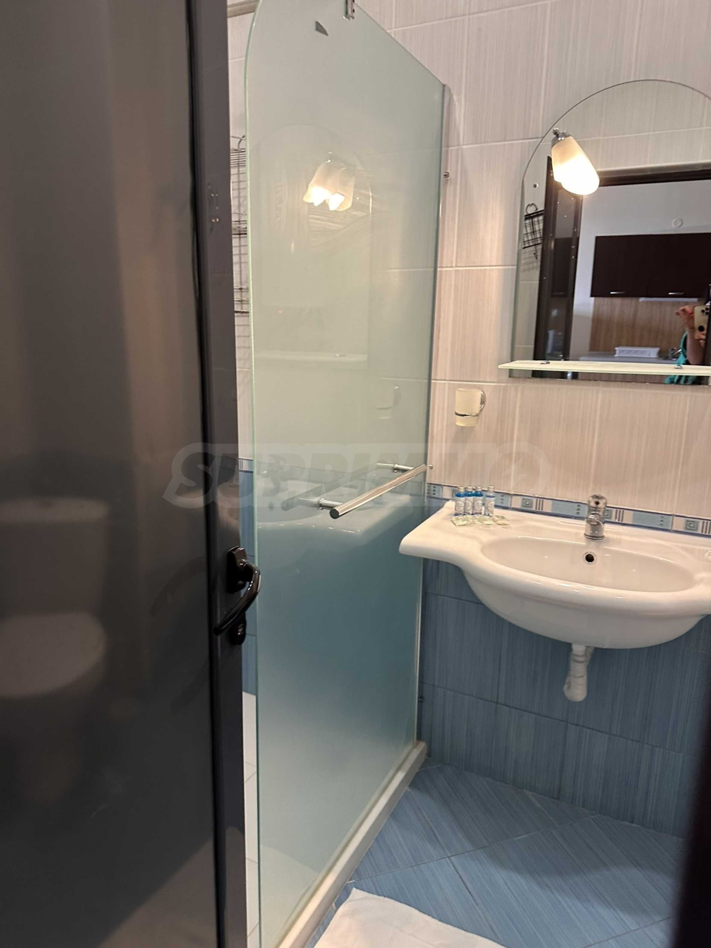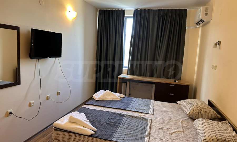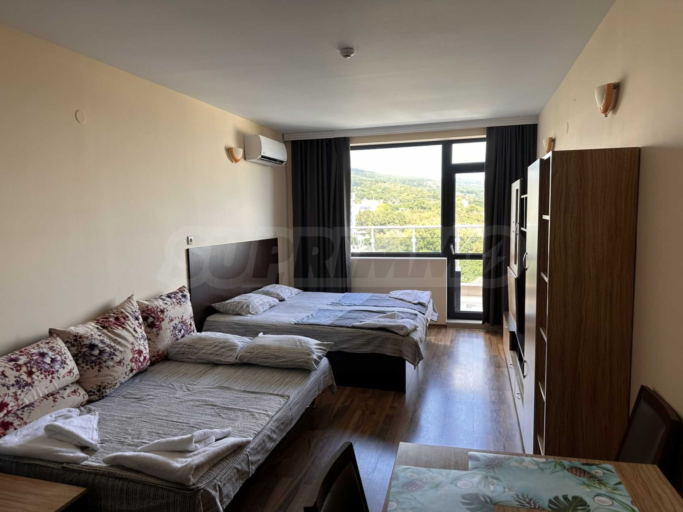 Prezentujemy umeblowany, panoramiczny apartament z jedną sypialnią i widokiem na morze, na sprzedaż w popularnym, strzeżonym kompleksie z basenem w samym sercu kurortu Złote Piaski.