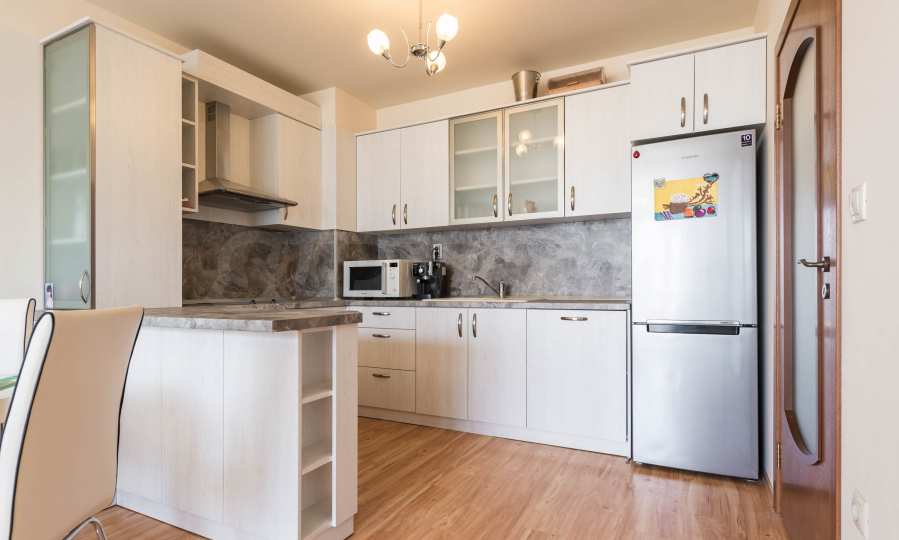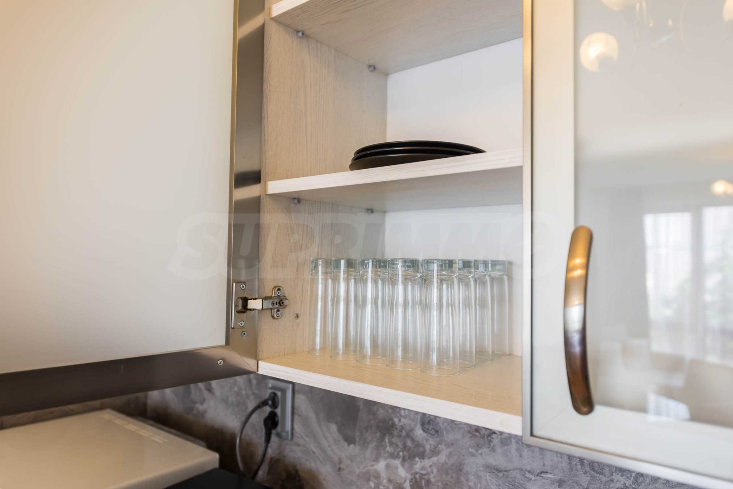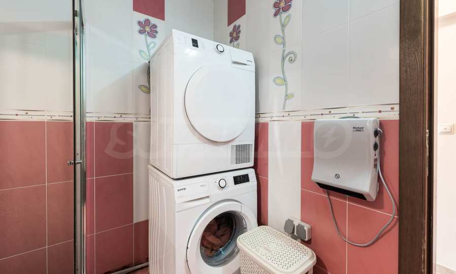 Apartament jest oferowany w pełni umeblowany i wyposażony: wygodne nowe meble, kuchenka, lodówka, pralka, suszarka, klimatyzacja w obu pomieszczeniach.