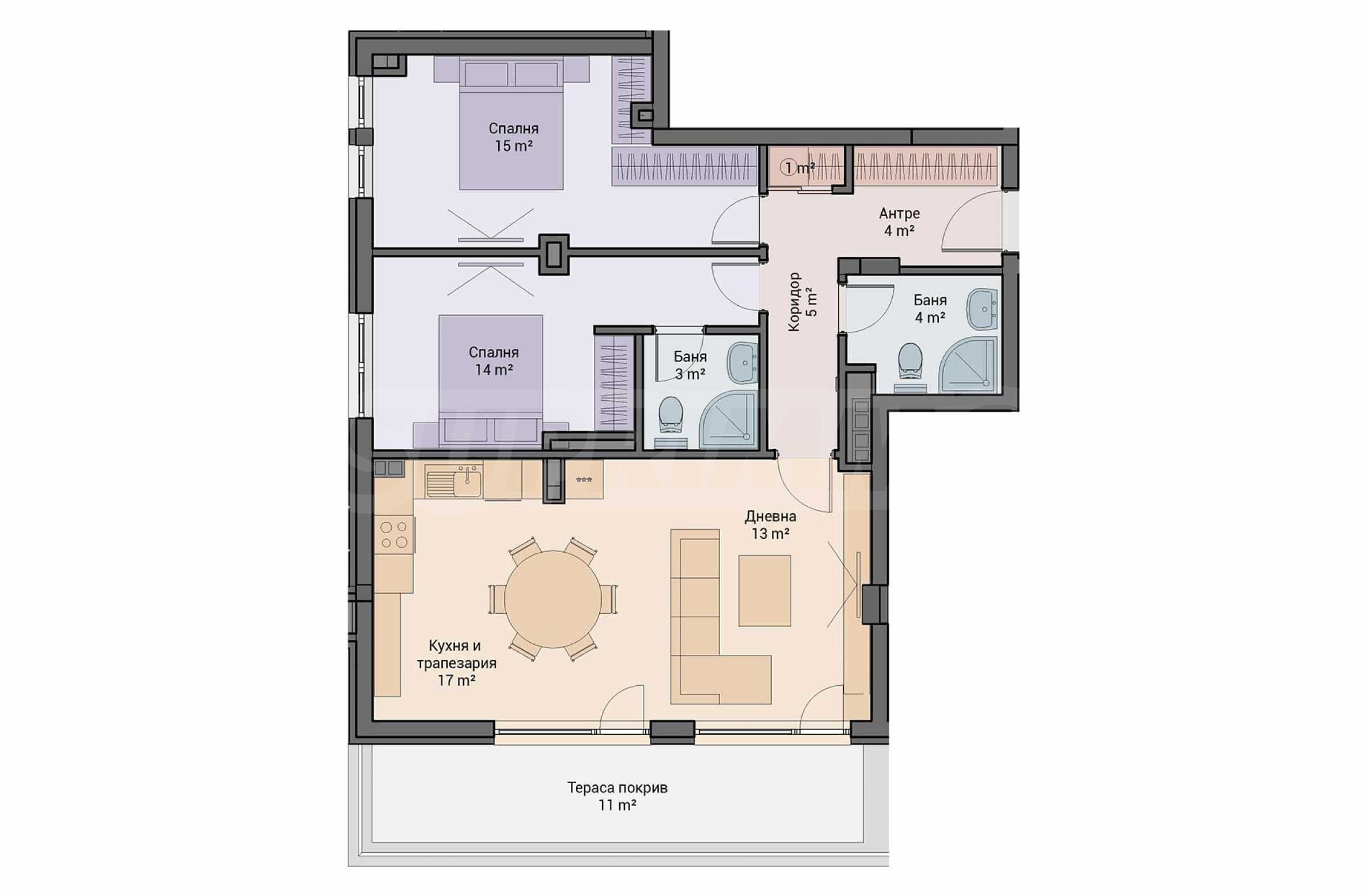 Prezentujemy na sprzedaż przestronne, dwupokojowe mieszkanie, zlokalizowane na 6. piętrze z 6 w nowym, butikowym budynku w najnowocześniejszej i najbardziej atrakcyjnej części dzielnicy Lyulin. Mieszkanie ma imponującą powierzchnię 126,80 m², co zapewnia jasne i komfortowe przestrzenie, idealne dla nowoczesnej, miejskiej rodziny. W mieszkaniu znajdują się dwie łazienki z toaletami, zapewniające komfort i praktyczność w codziennym życiu.