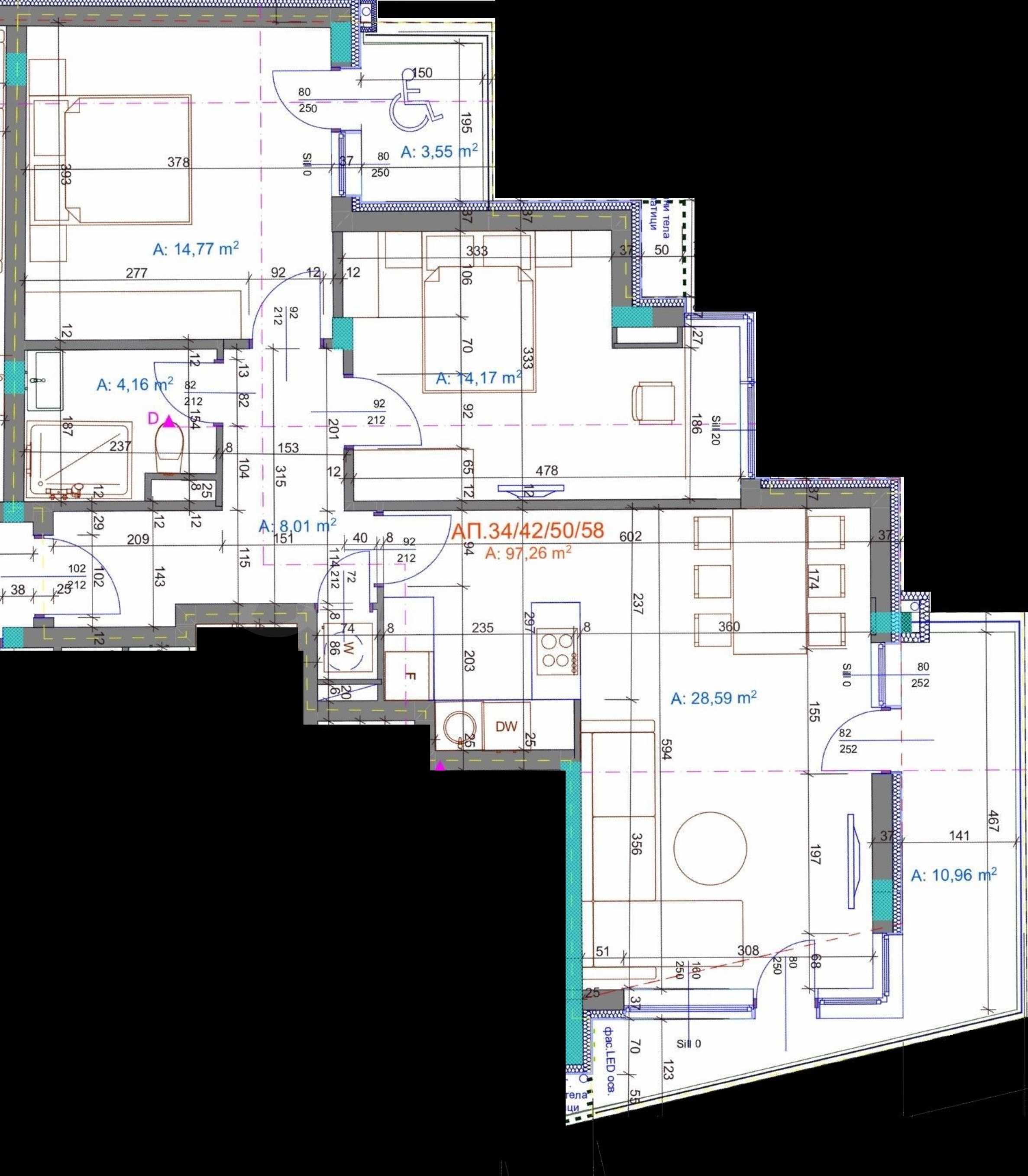 Oferujemy na sprzedaż mieszkanie jednopokojowe w nowym, wielofunkcyjnym budynku z lokalami mieszkalnymi i usługowymi, w dzielnicy „Bratya Miladinovi” w Burgas.