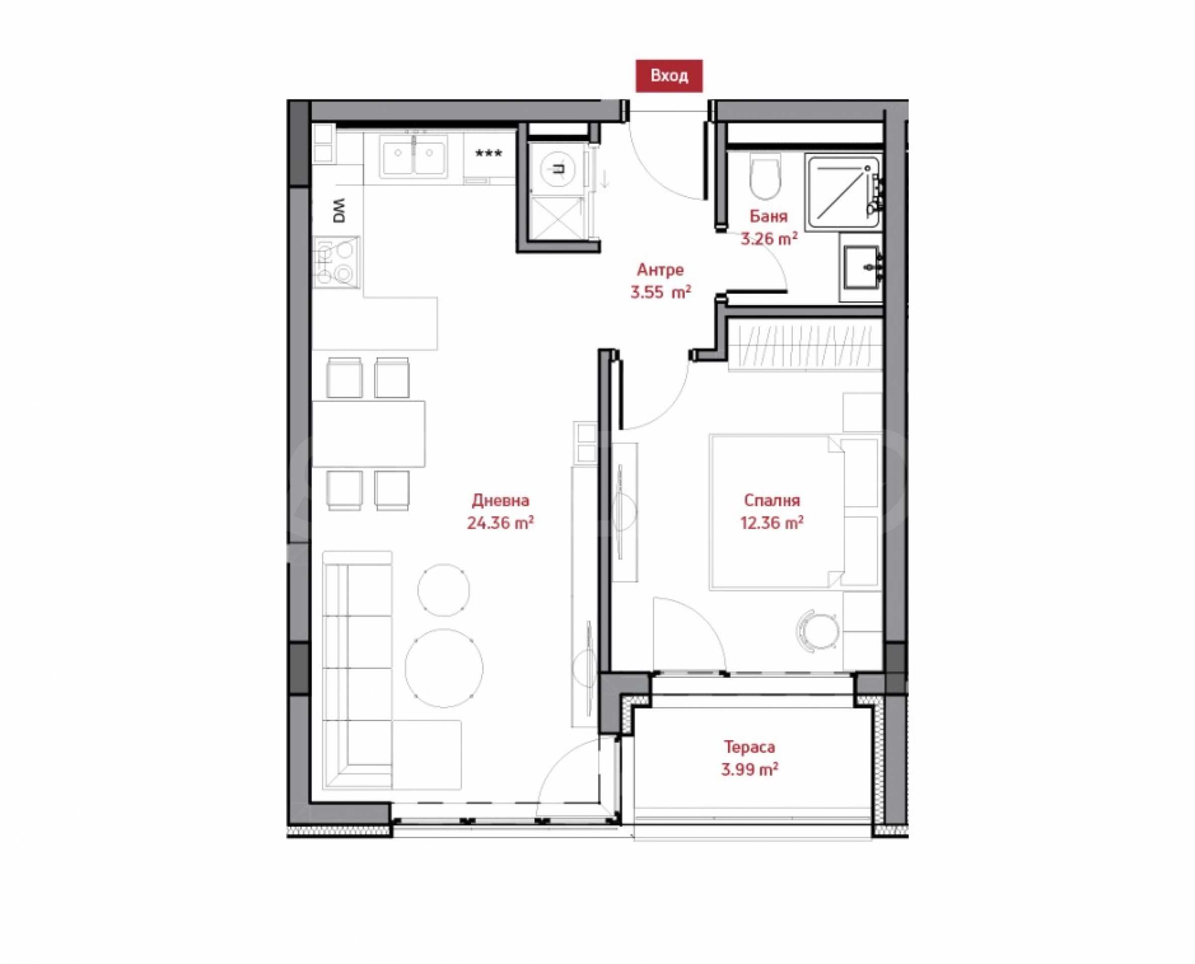 • taras – 3,88 m2;