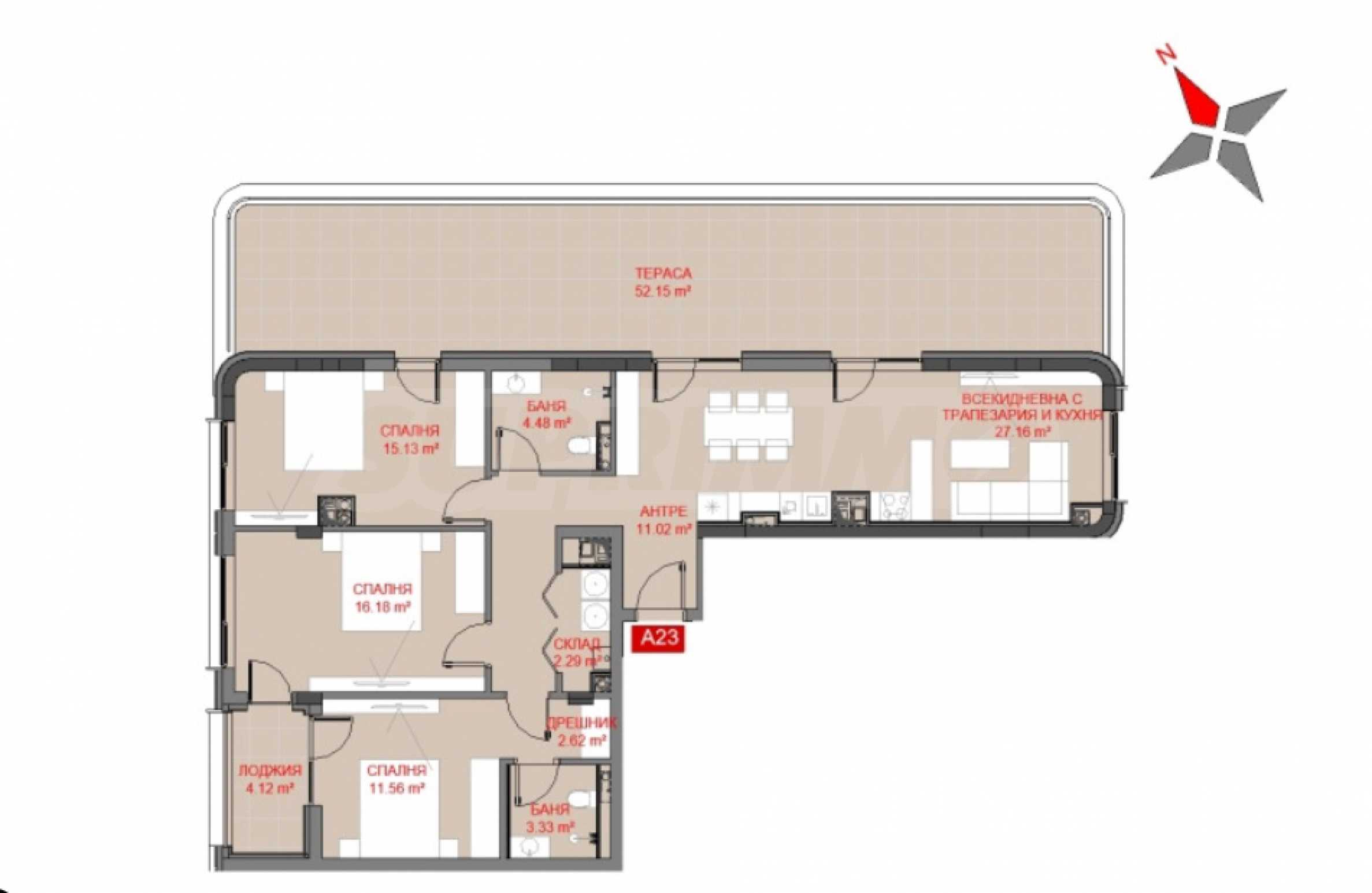 • loggia – 4,12 m2;
